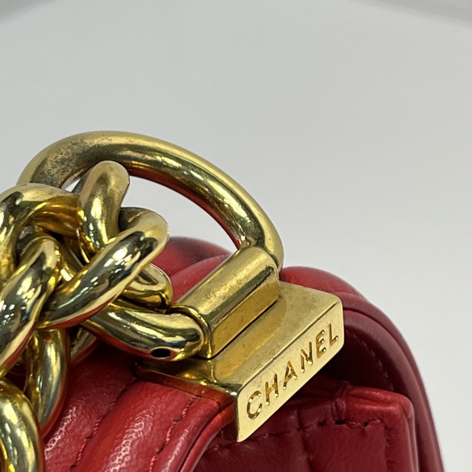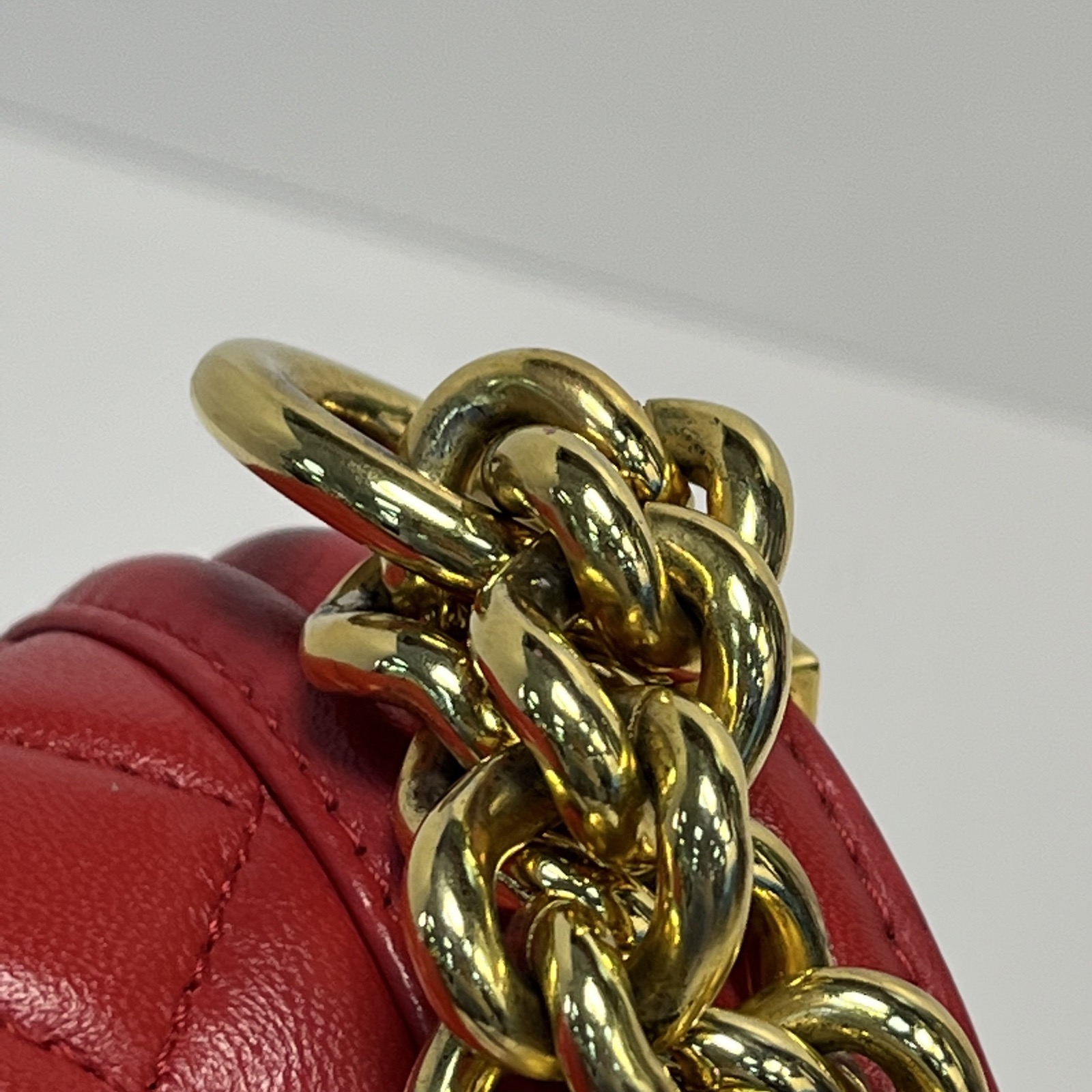 Crafted from premium leather with classic diamond quilting and gold-tone CC hardware, this Le Boy medium 25cm bag features a detachable chain strap, a timeless luxury icon.