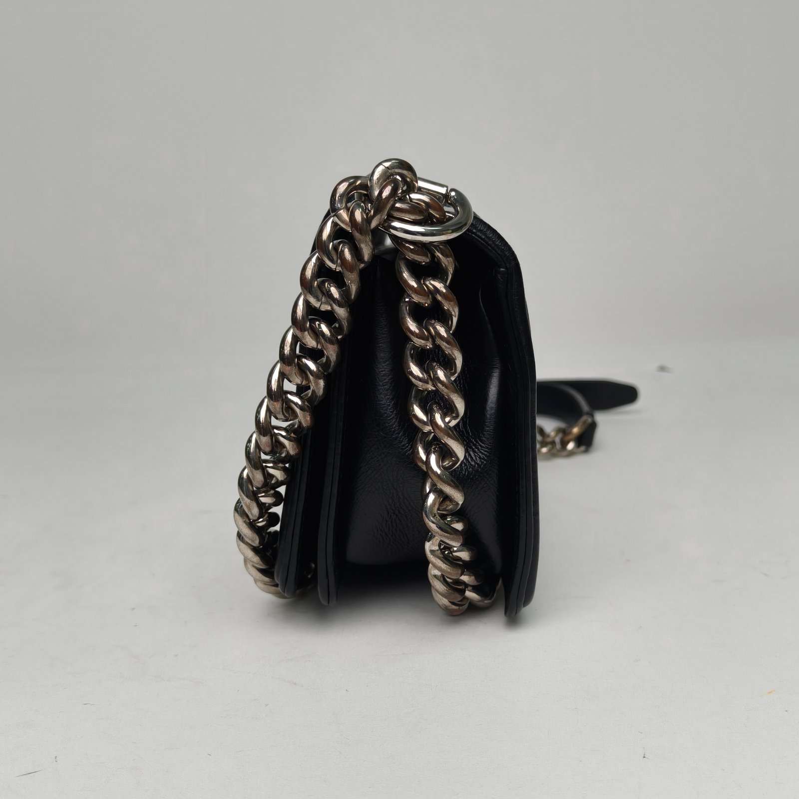 This Chanel Boy Small bag is a masterclass in edgy sophistication, featuring the House’s iconic diamond quilting framed by its signature straight edges and bold architectural silhouette. Crafted from durable calfskin, designed to withstand daily wear while maintaining a luxurious texture. The standout feature is its chunky ruthenium-finish chain strap and the unique ‘lego-brick’ CC push-lock, which pay homage to the brand’s heritage with a modern, industrial twist. Its compact yet boxy frame offers surprising practicality, easily accommodating daily essentials. This versatile piece effortlessly transitions from a casual daytime crossbody to a striking evening shoulder bag. As a permanent fixture in Chanel’s mainstay collections, the Boy Small remains a highly coveted accessory for those seeking a rebellious yet timeless addition to their luxury wardrobe.