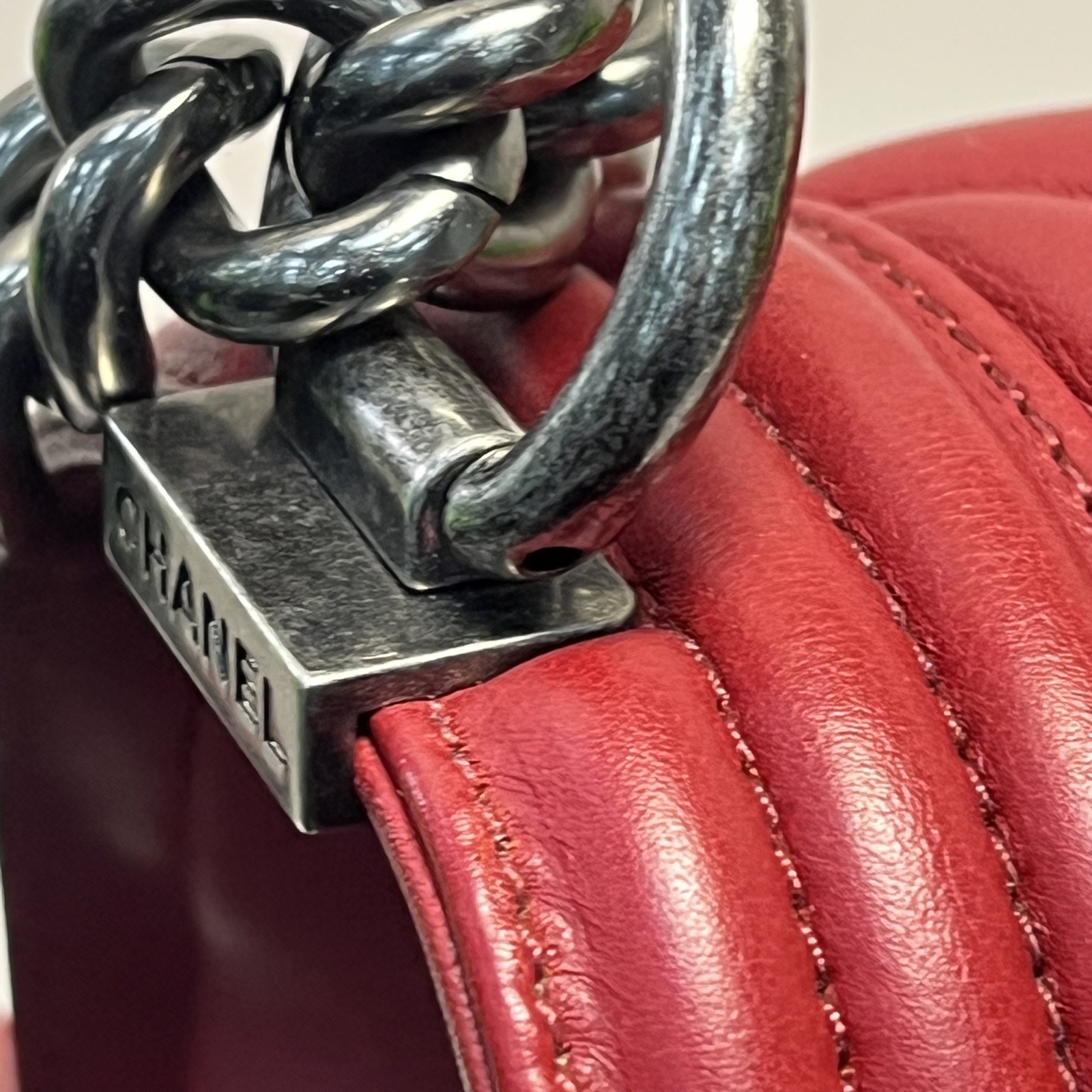Chanel Leboy Medium 28cm Bag in Red Chevron Leather
