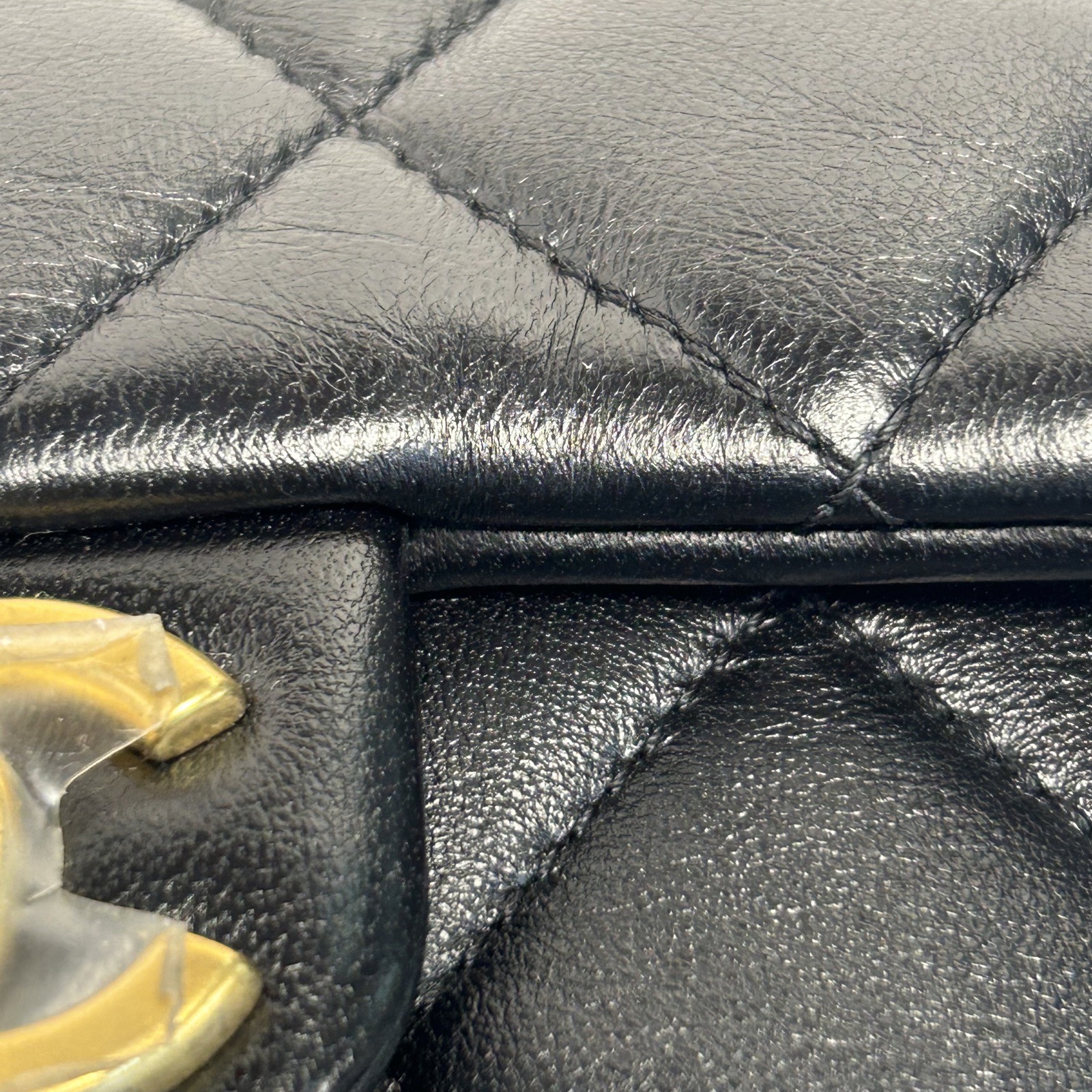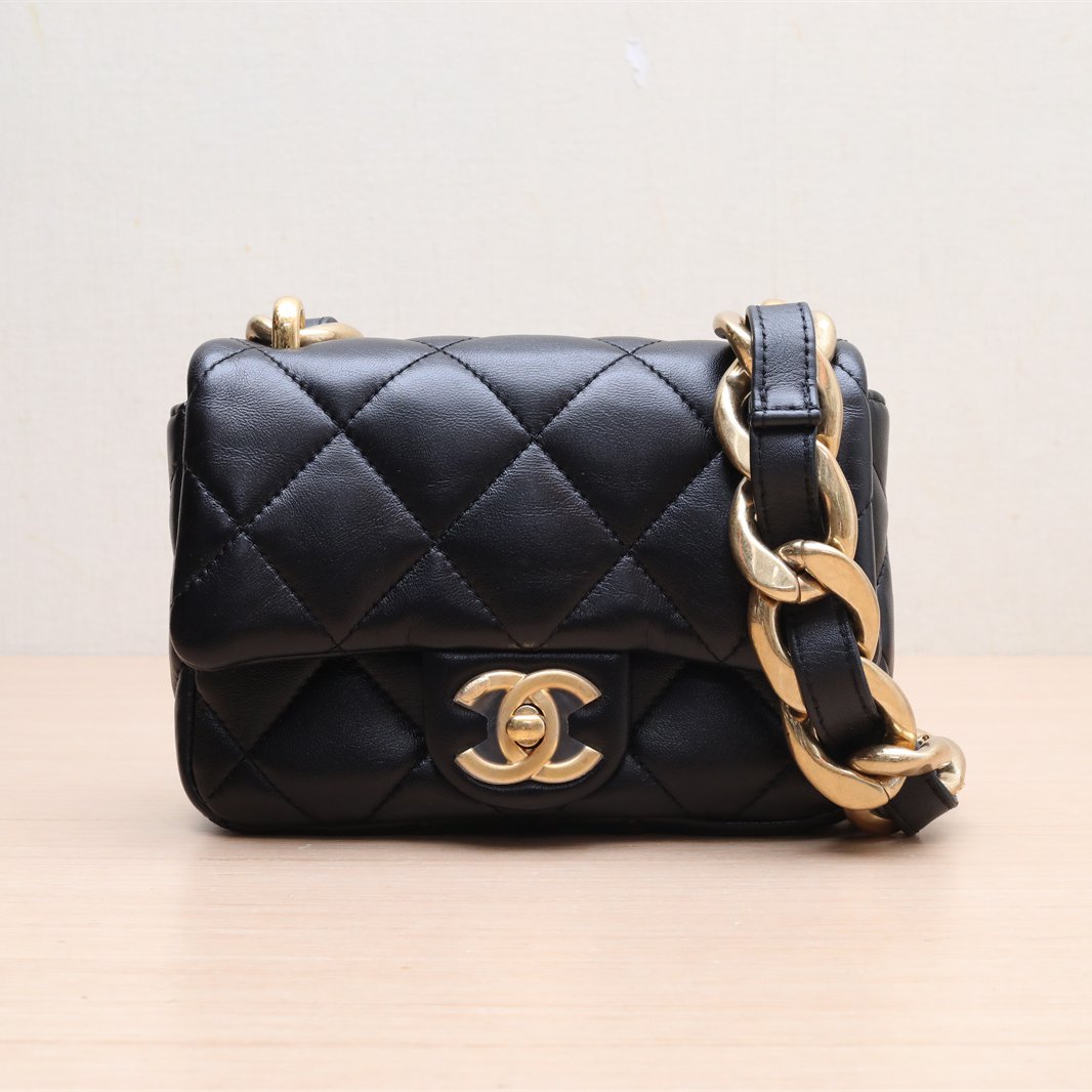 Crafted from smooth leather with iconic CC hardware, this compact flap bag features a chunky chain strap and turn-lock closure.