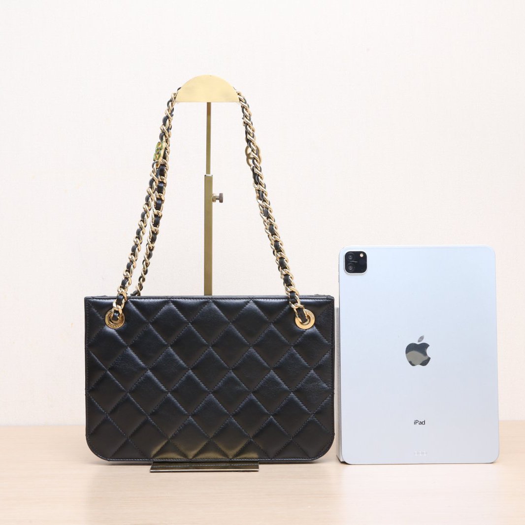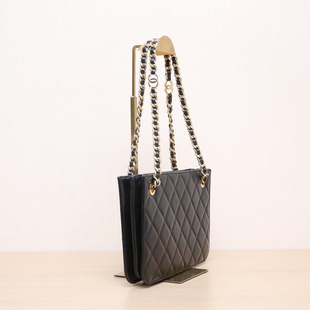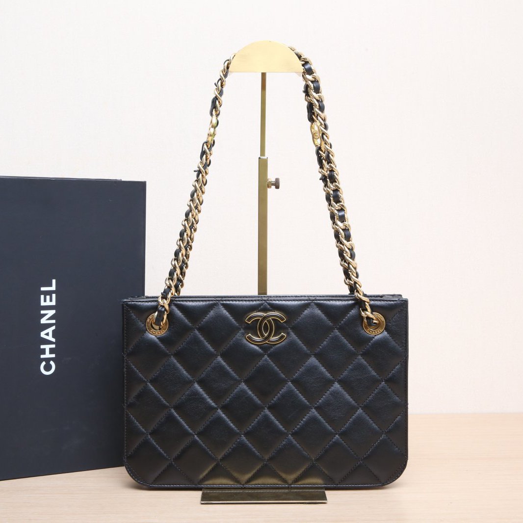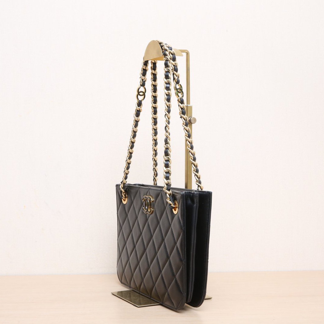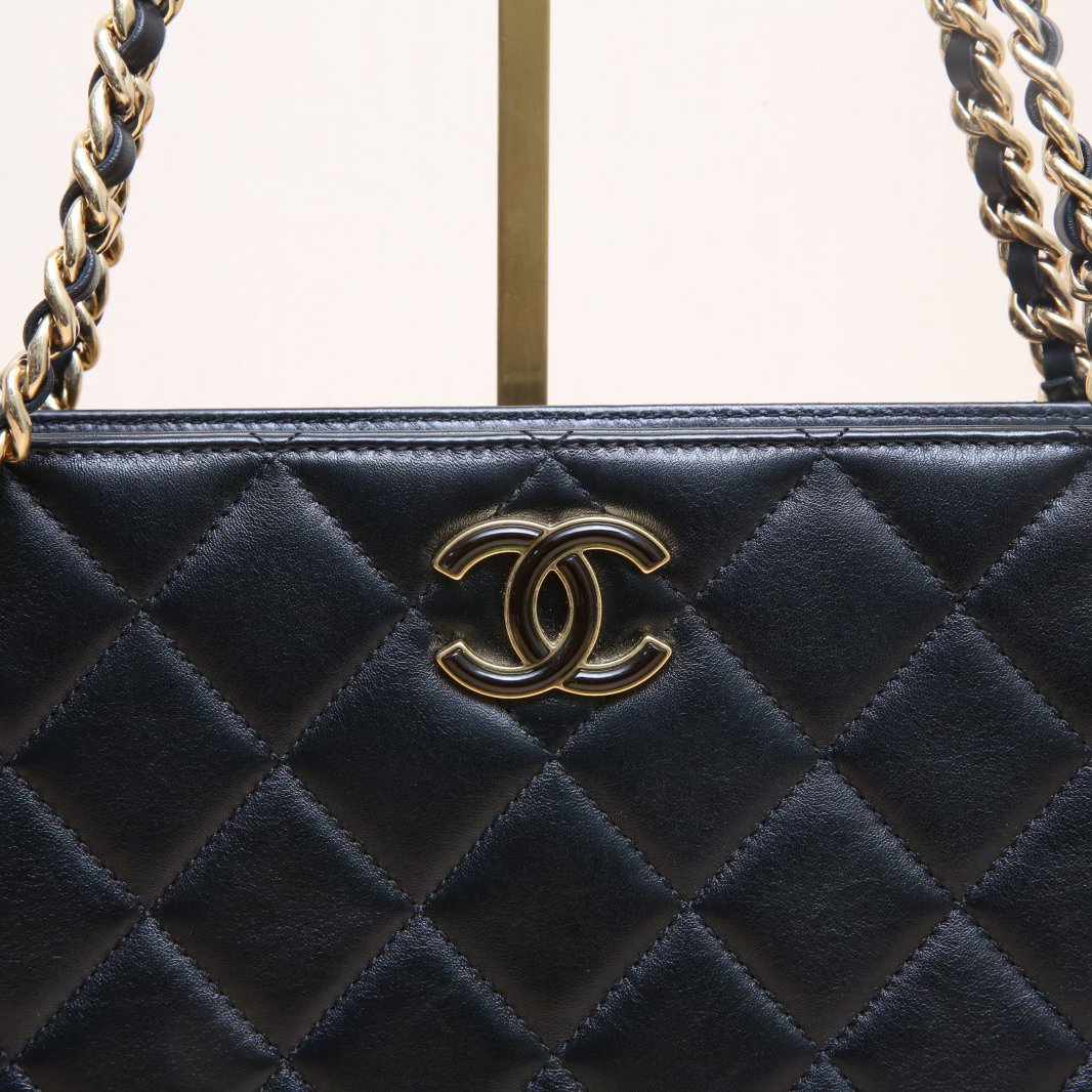 Crafted from smooth leather with iconic CC hardware, this structured bag features a chain strap and sleek silhouette.