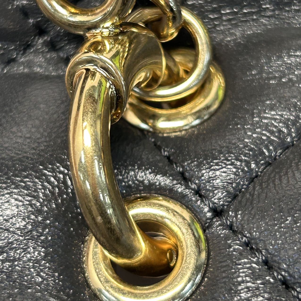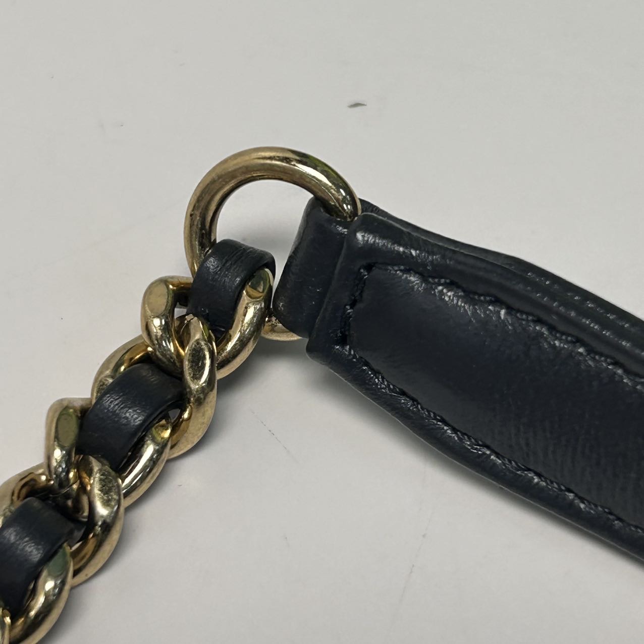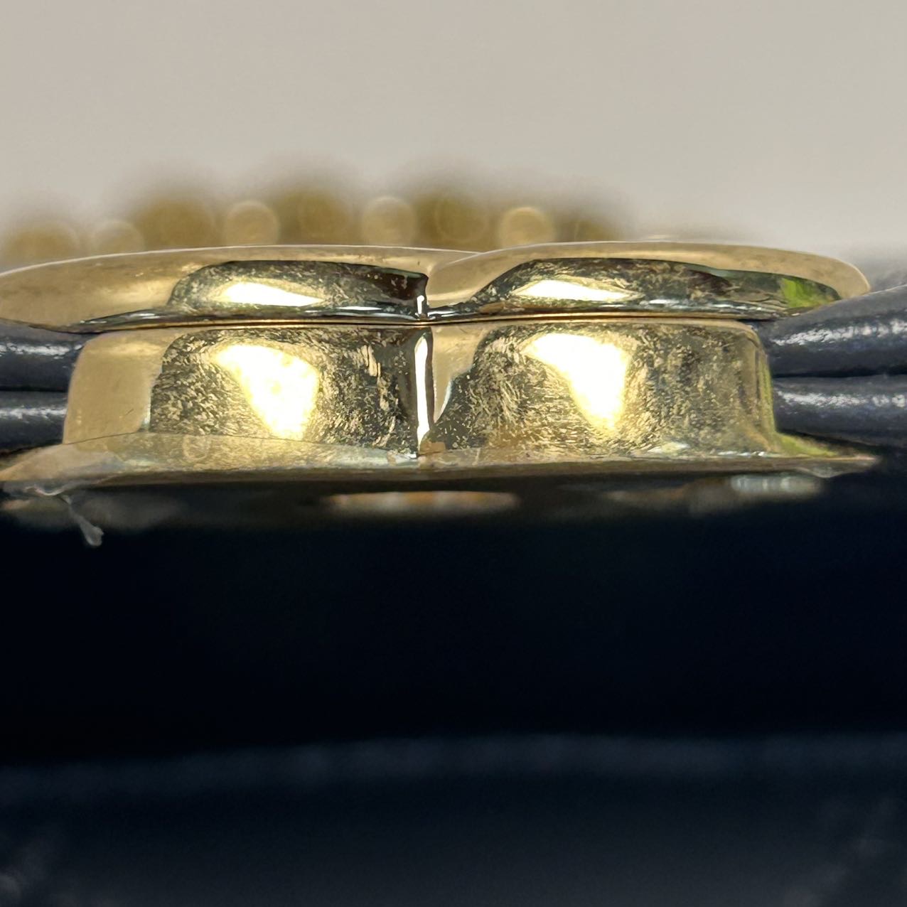 This sophisticated Chanel Small Trendy CC Flap Bag represents a seamless blend of classic heritage and contemporary utility. Expertly crafted from supple black lambskin with signature diamond quilting, the bag features a luxurious sheen that highlights its structured silhouette. The design is elevated by a sturdy, vintage-inspired gold-tone chain top handle and a coordinated leather-intertwined chain strap for versatile carrying options. A distinctive gold-tone metal plate engraved with ‘CHANEL’ sits atop the bag, adding a bold architectural element. The iconic interlocking CC turn-lock closure opens to a practical interior, making it ideal for transitioning from professional settings to evening elegance. Its timeless black and gold palette ensures effortless pairing with any wardrobe, from tailored suits to chic cocktail dresses, making it a highly coveted investment piece.