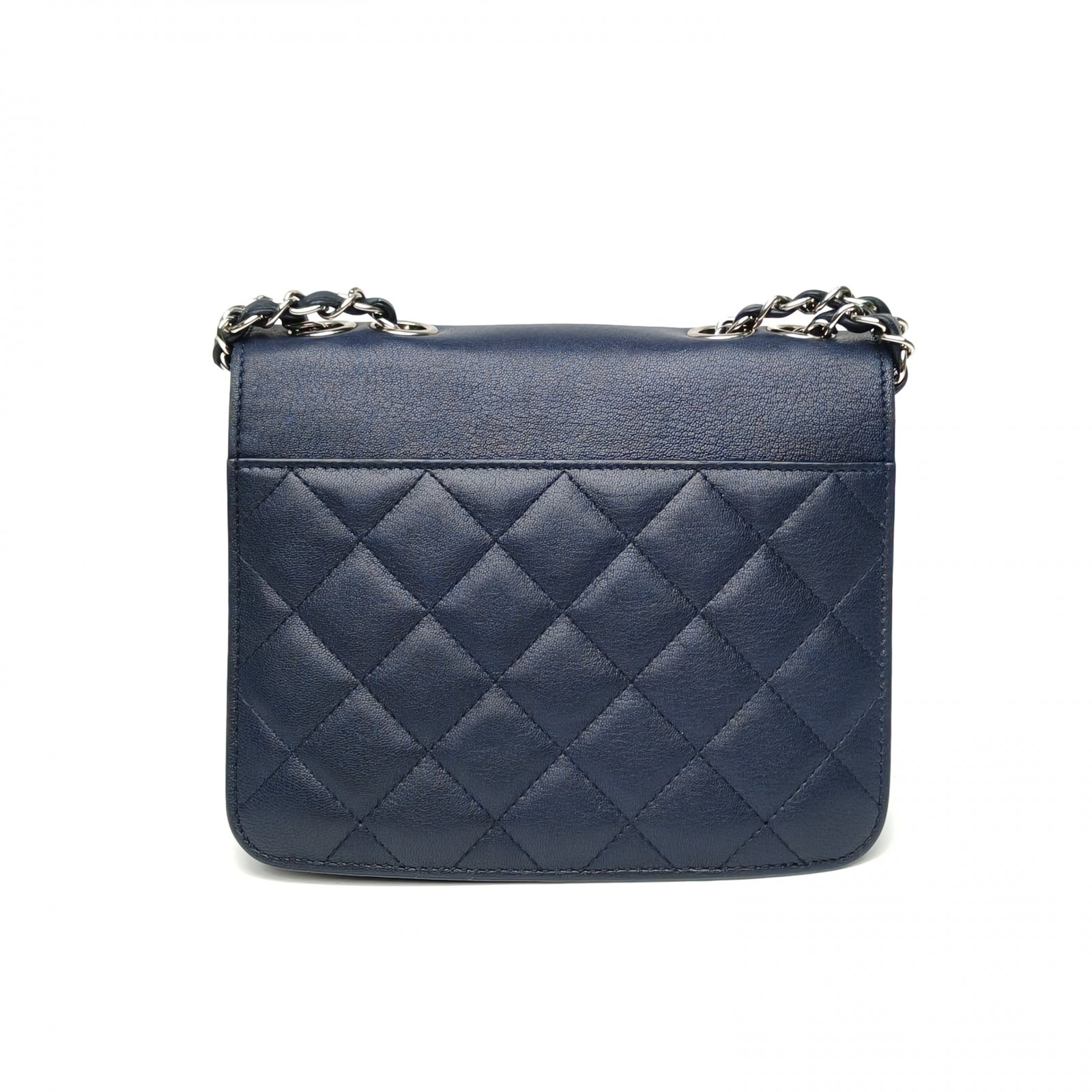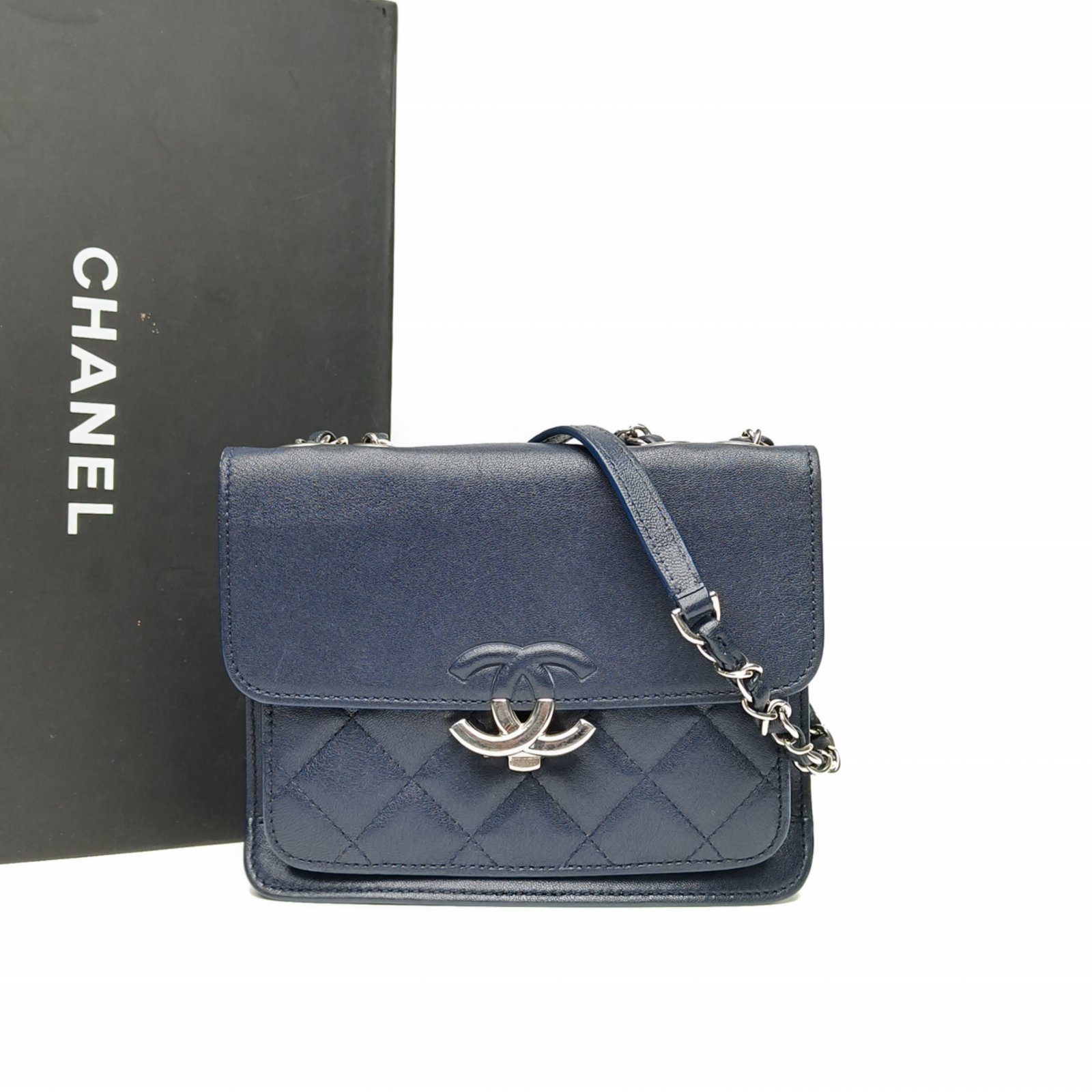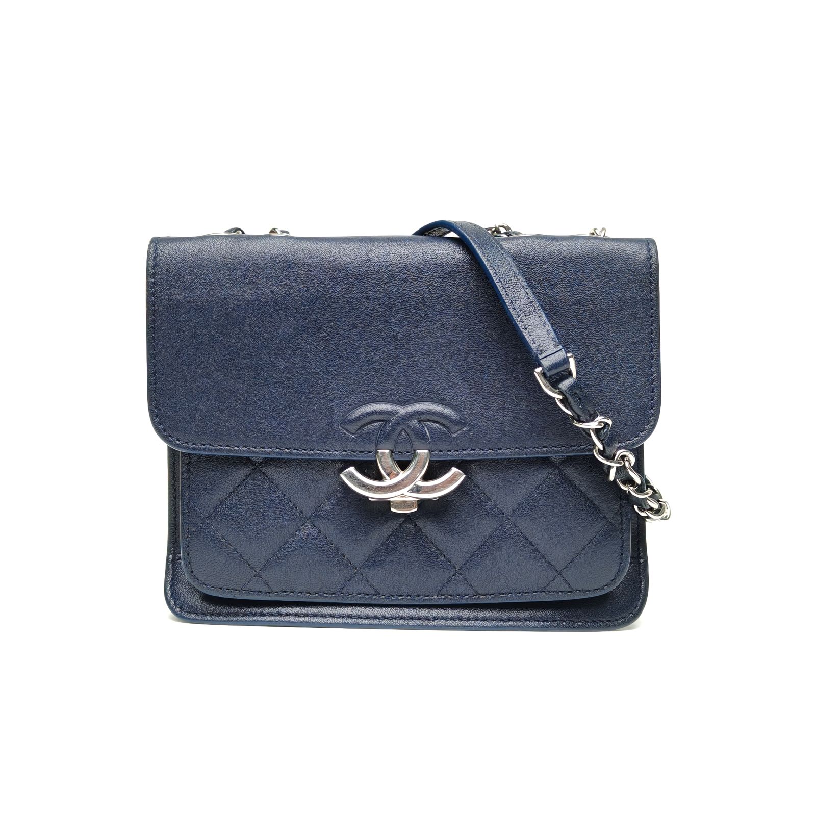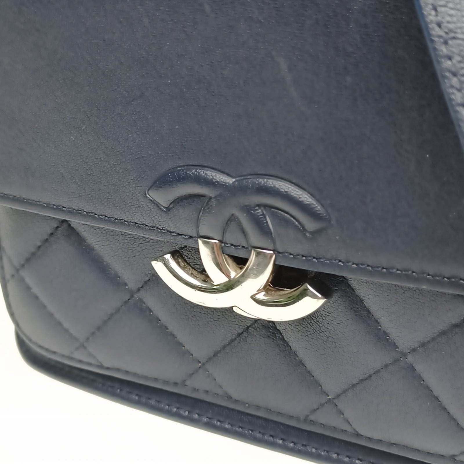 Chanel Vintage Messenger Bag 20 Navy Blue Leather