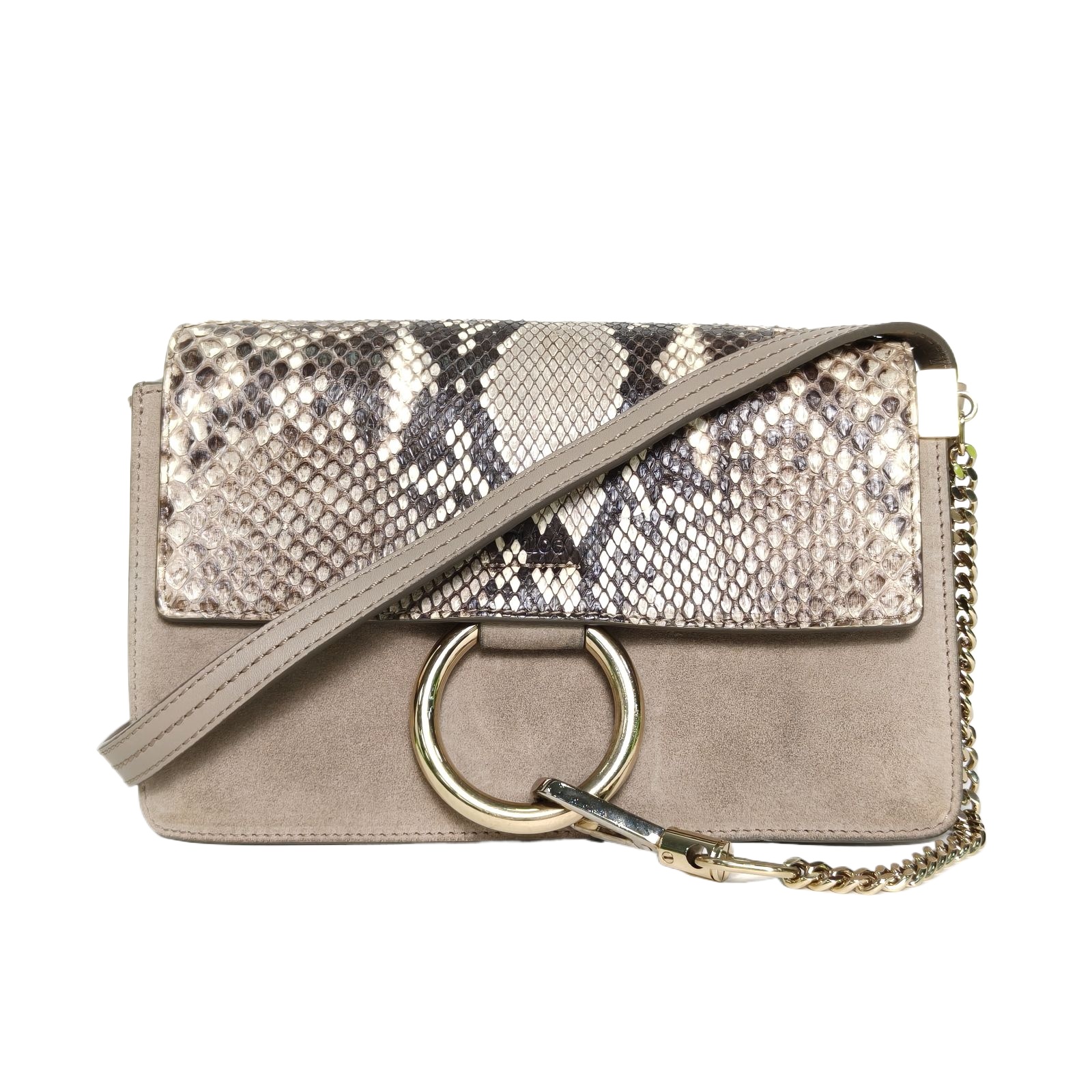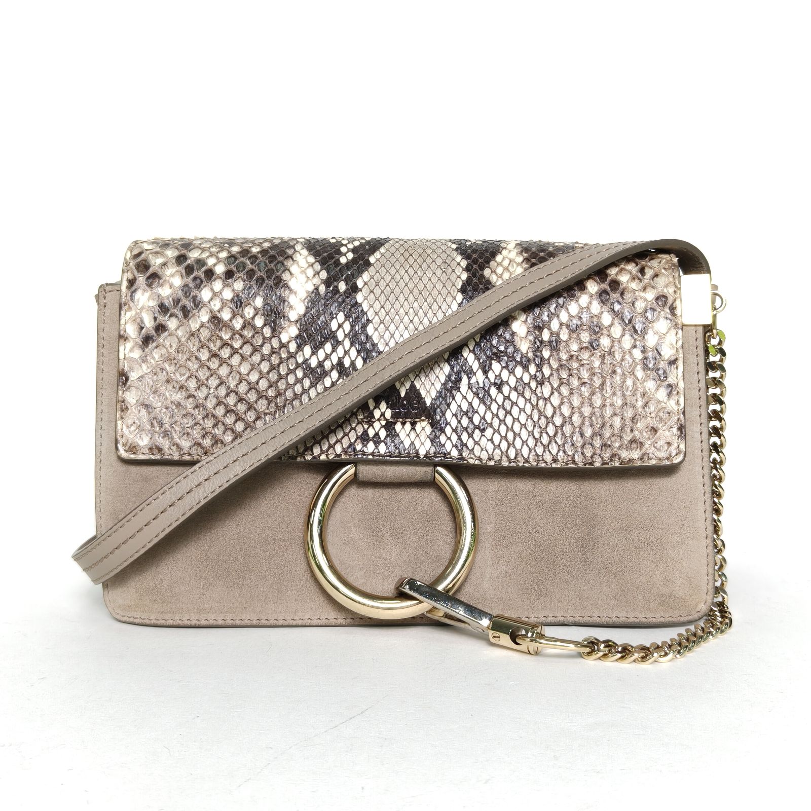 Chloe Faye Day Mini 22.5cm in Grey Suede/Snake Leather