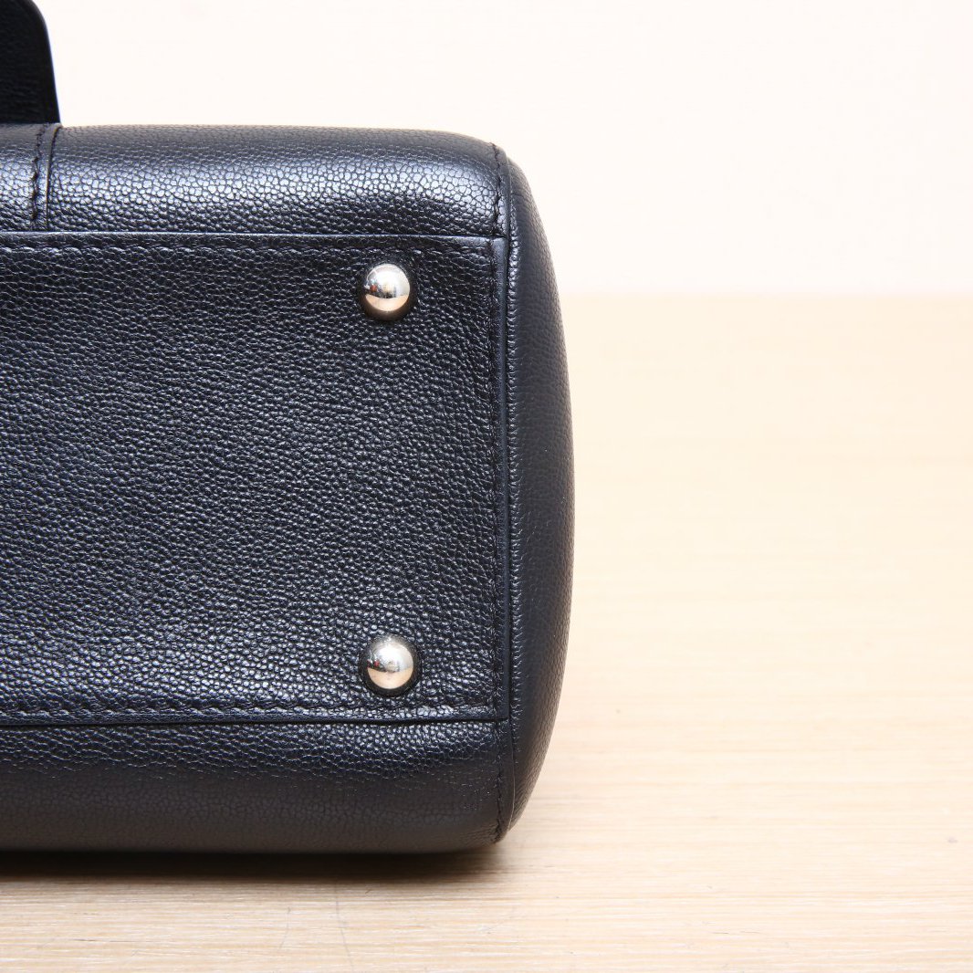 Crafted from smooth leather with signature hardware, this structured bag features top handles and a detachable strap.