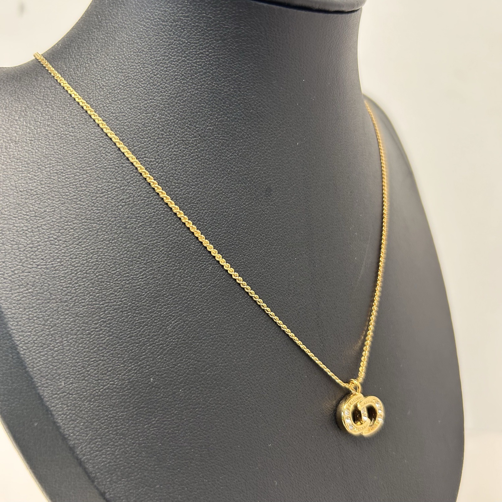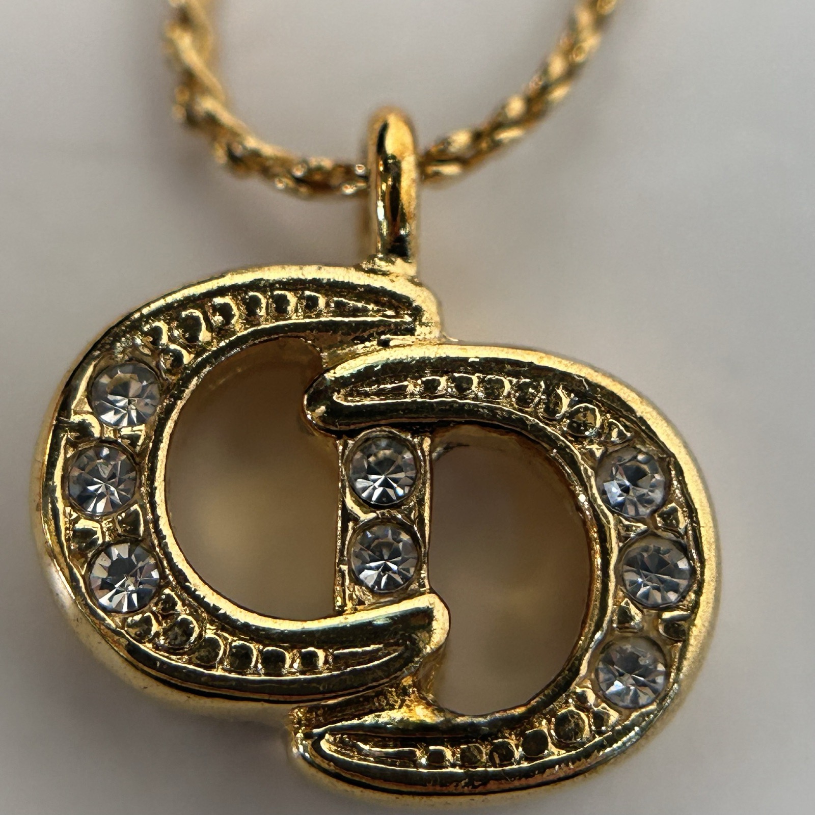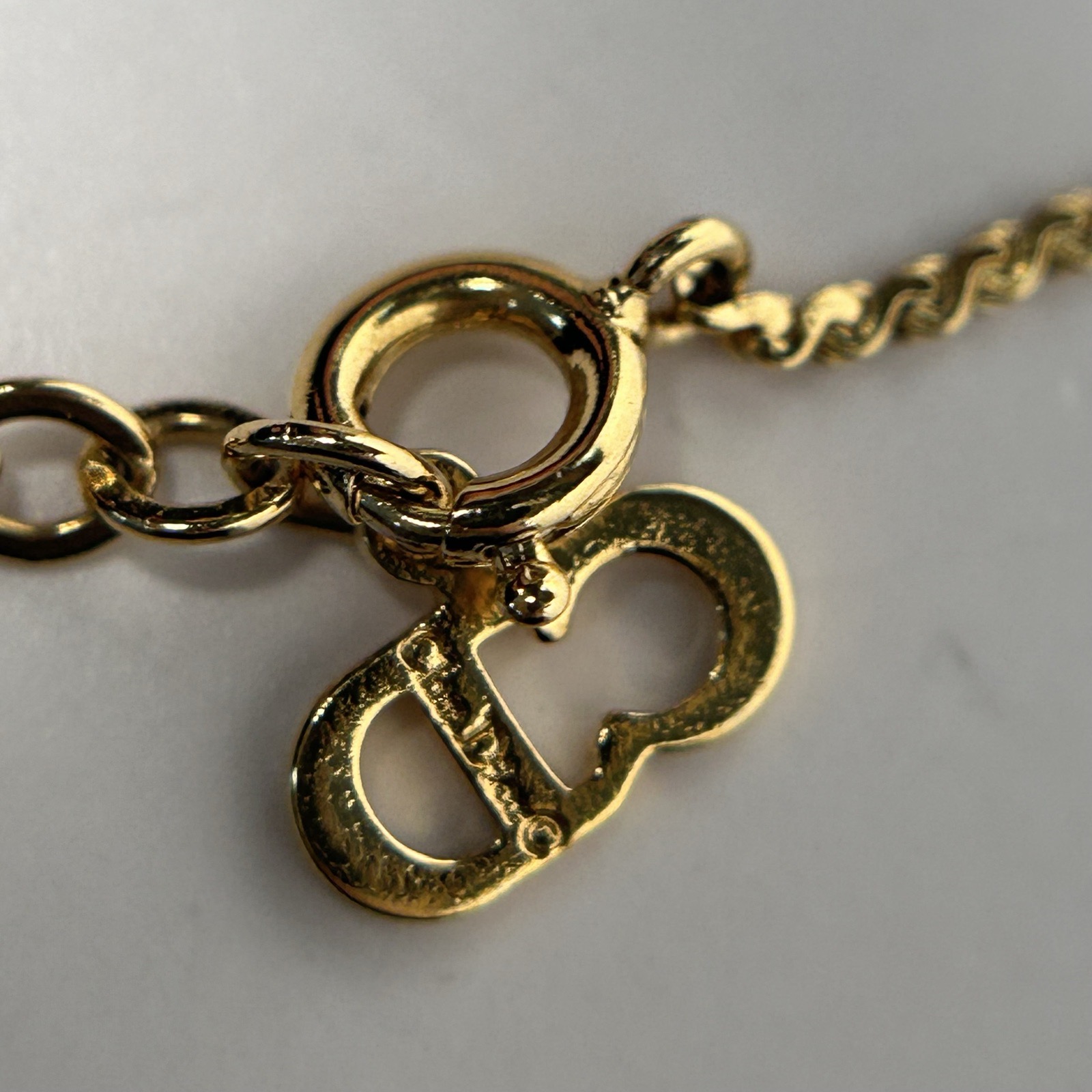 This stunning Christian Dior Clair D Lune necklace captures the essence of modern femininity with its elegant design. Featuring the signature ‘CD’ initials at the center, the pendant is meticulously encrusted with shimmering white crystals that catch the light beautifully. The gold-finish metal adds a warm, luxurious glow, making it a timeless addition to any jewelry collection. Its adjustable chain length of 37.5cm to 43cm offers versatility, allowing it to be worn as a delicate choker or a slightly longer layering piece. Perfect for adding a touch of Parisian chic to both casual and formal outfits, this necklace is a quintessential statement of the house’s heritage and craftsmanship.