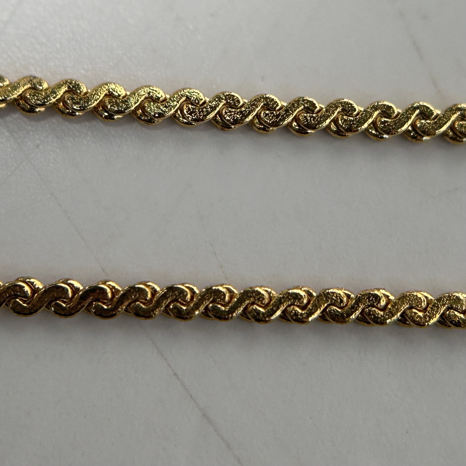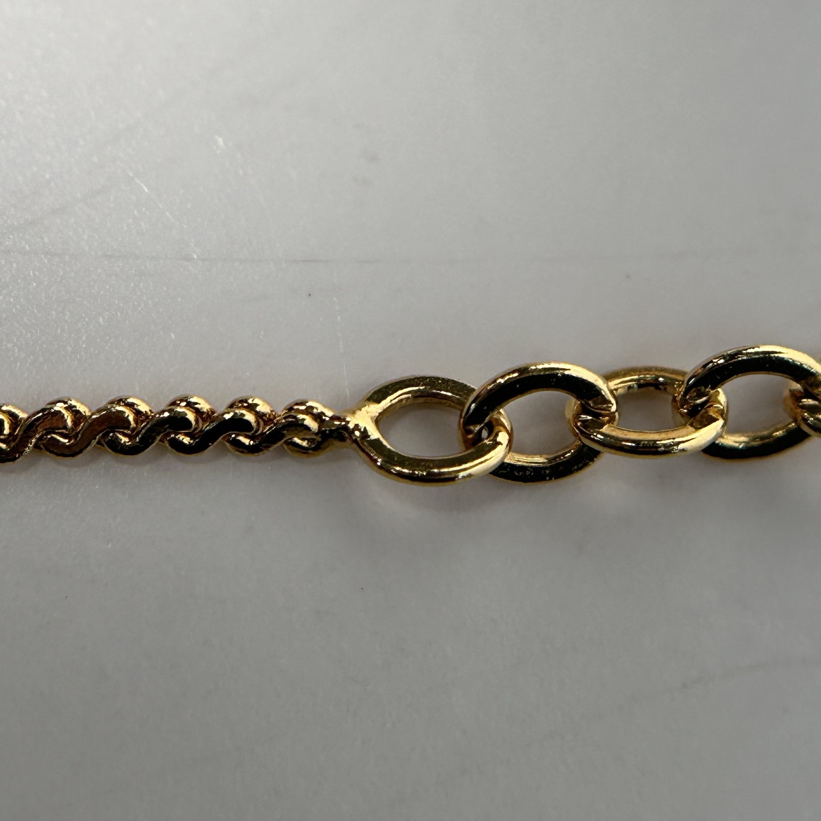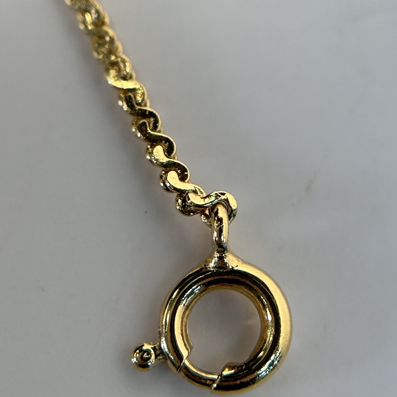 This stunning Christian Dior Clair D Lune necklace captures the essence of modern femininity with its elegant design. Featuring the signature ‘CD’ initials at the center, the pendant is meticulously encrusted with shimmering white crystals that catch the light beautifully. The gold-finish metal adds a warm, luxurious glow, making it a timeless addition to any jewelry collection. Its adjustable chain length of 37.5cm to 43cm offers versatility, allowing it to be worn as a delicate choker or a slightly longer layering piece. Perfect for adding a touch of Parisian chic to both casual and formal outfits, this necklace is a quintessential statement of the house’s heritage and craftsmanship.