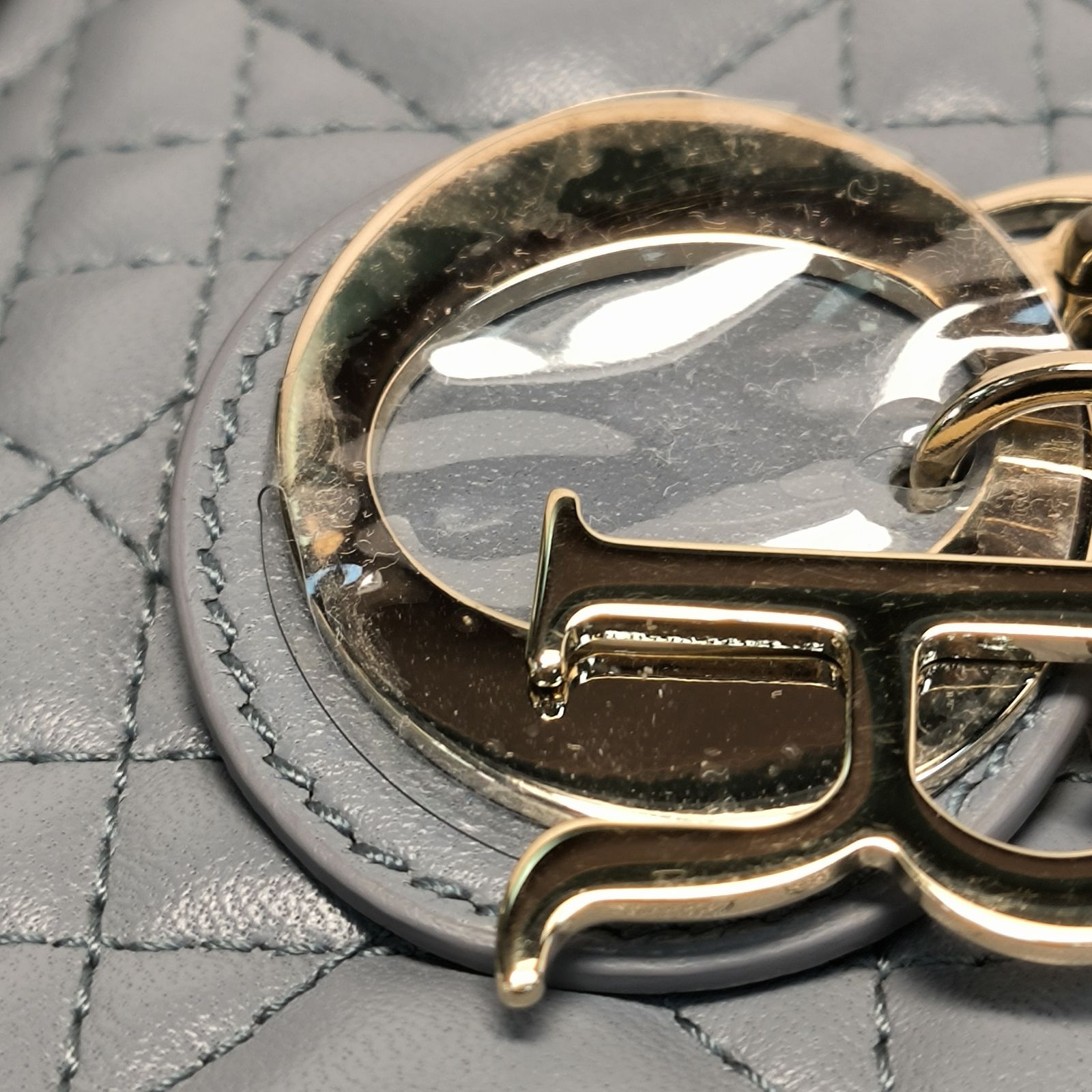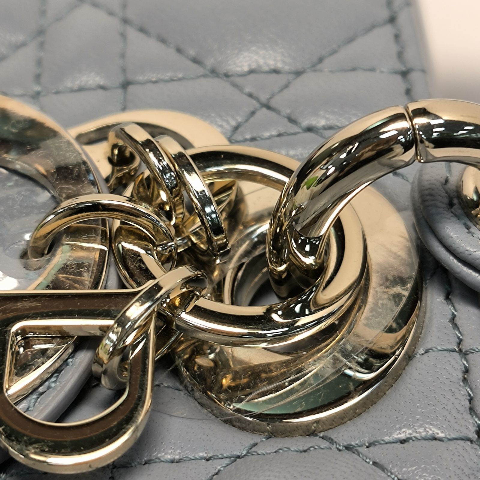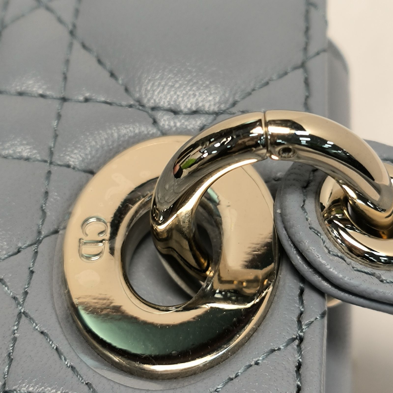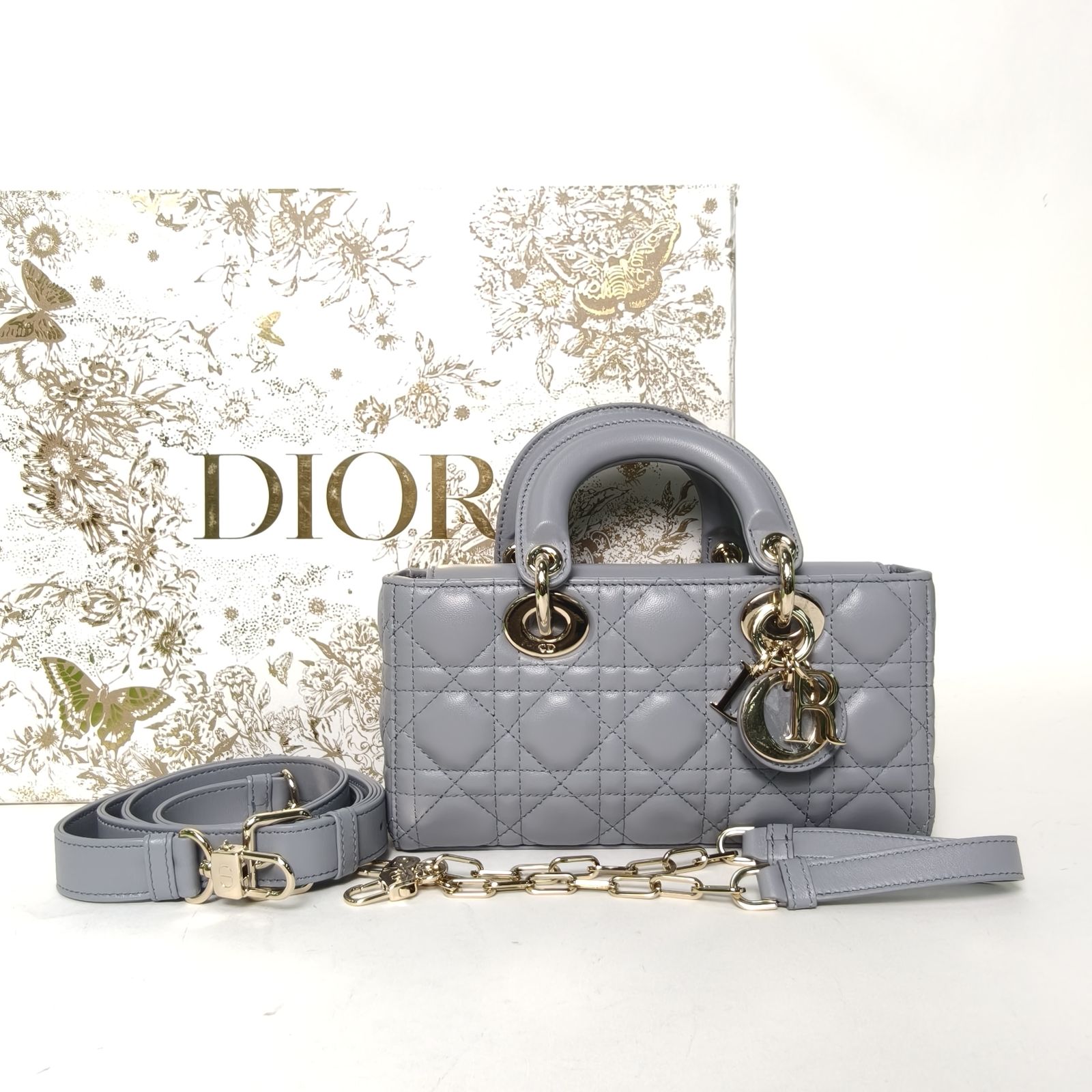 DIOR Lady Dior 4-Grid in Gray Leather