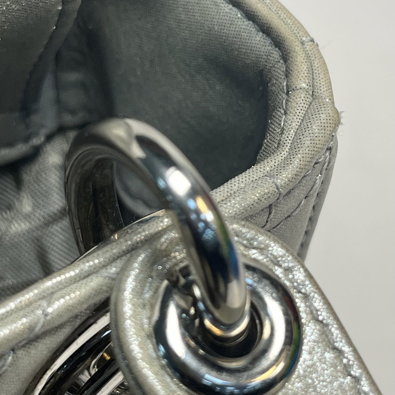 Dior Lady Dior Mini 3 Grey Technical Leather Silver Hardware