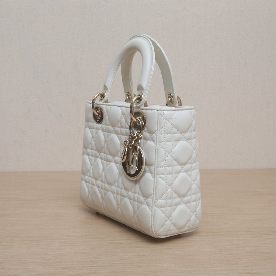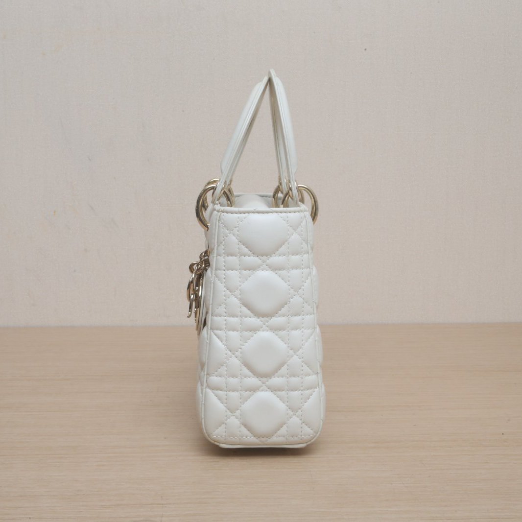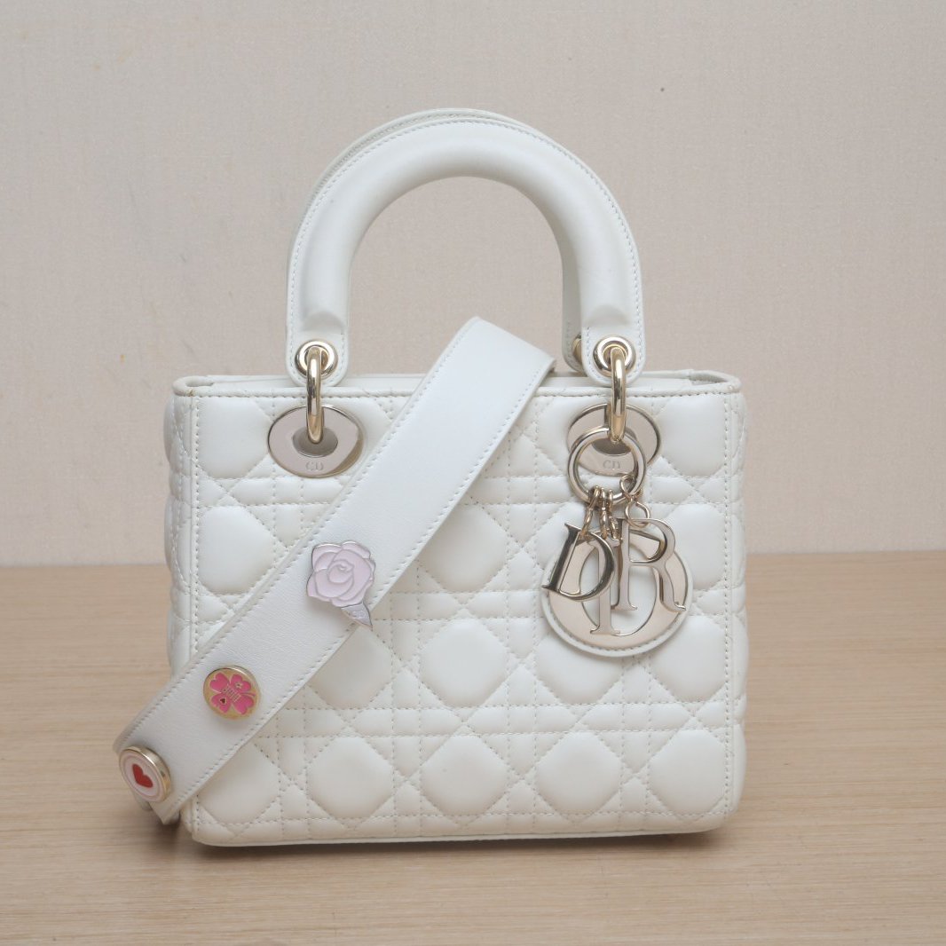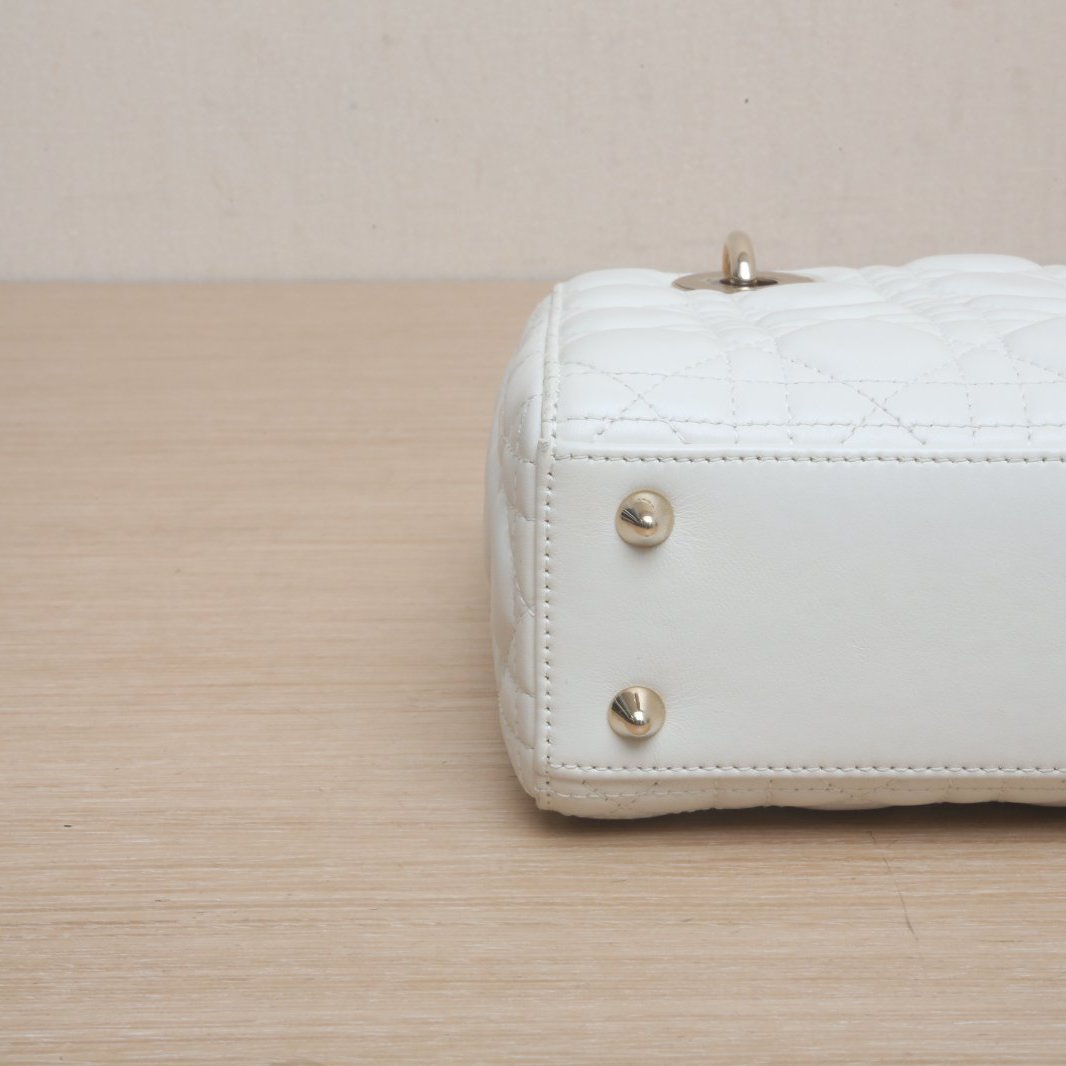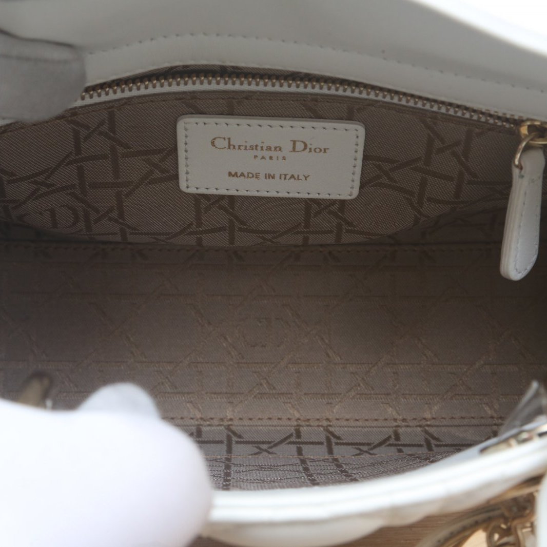 Crafted from quilted leather with signature Dior hardware, this iconic bag features top handles and a detachable strap.