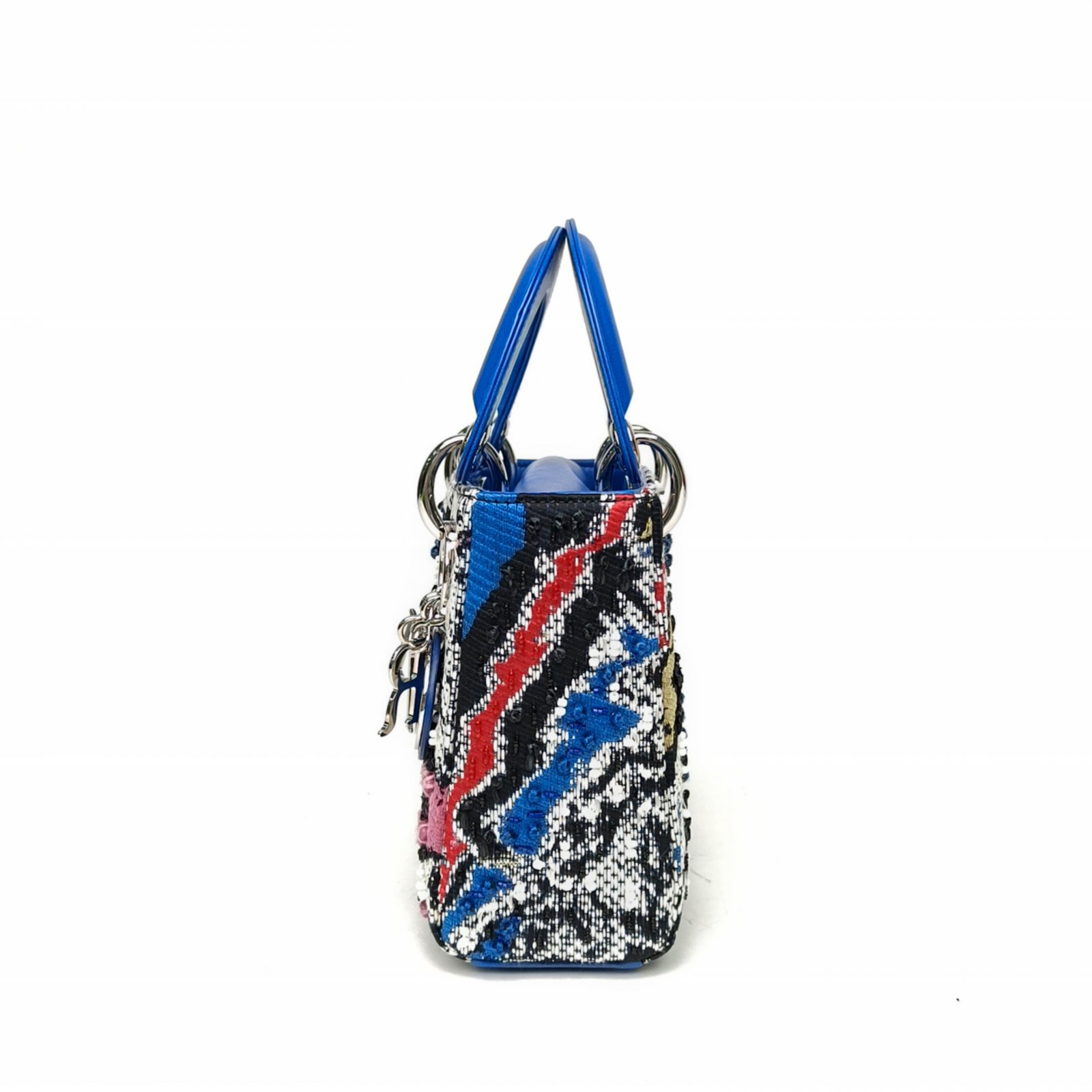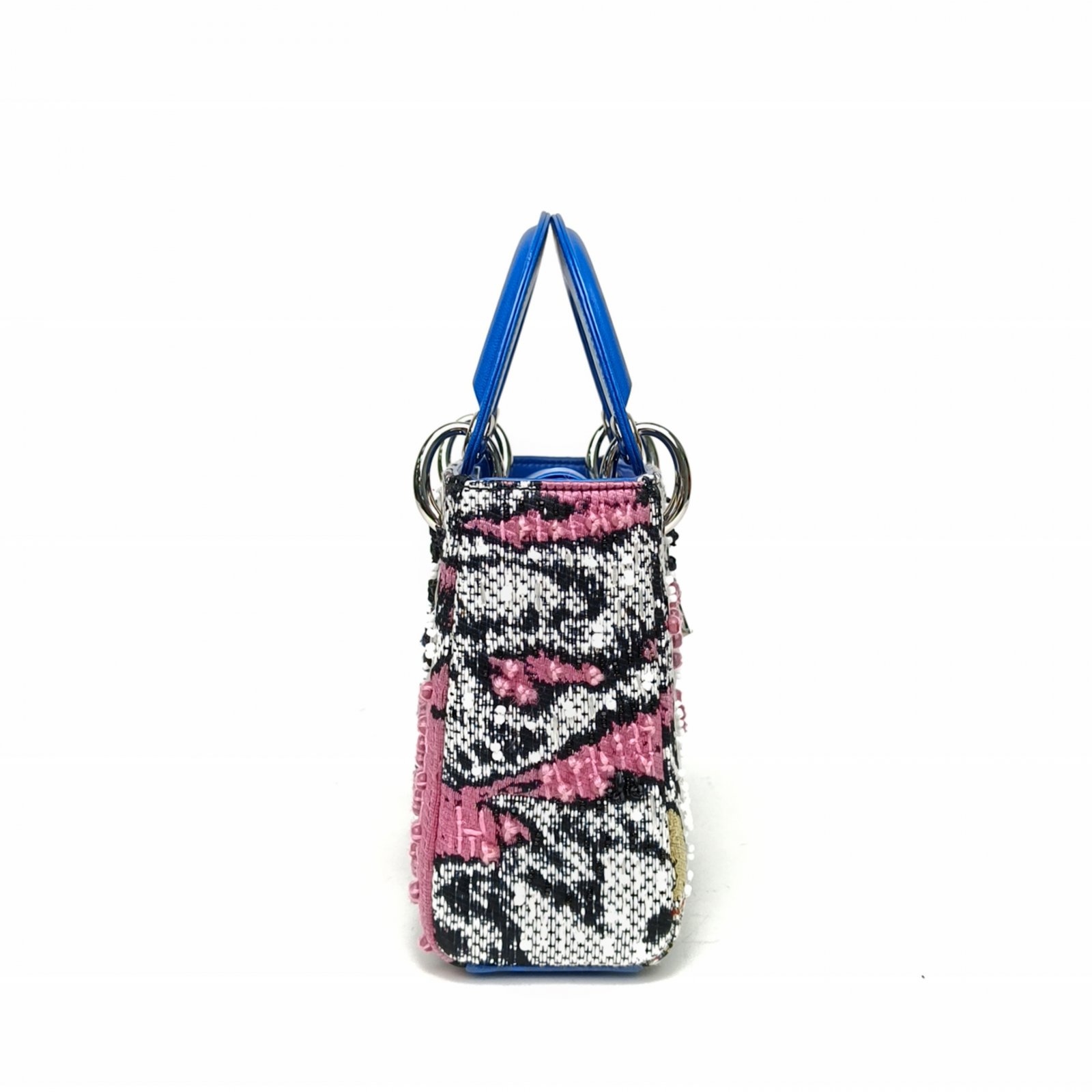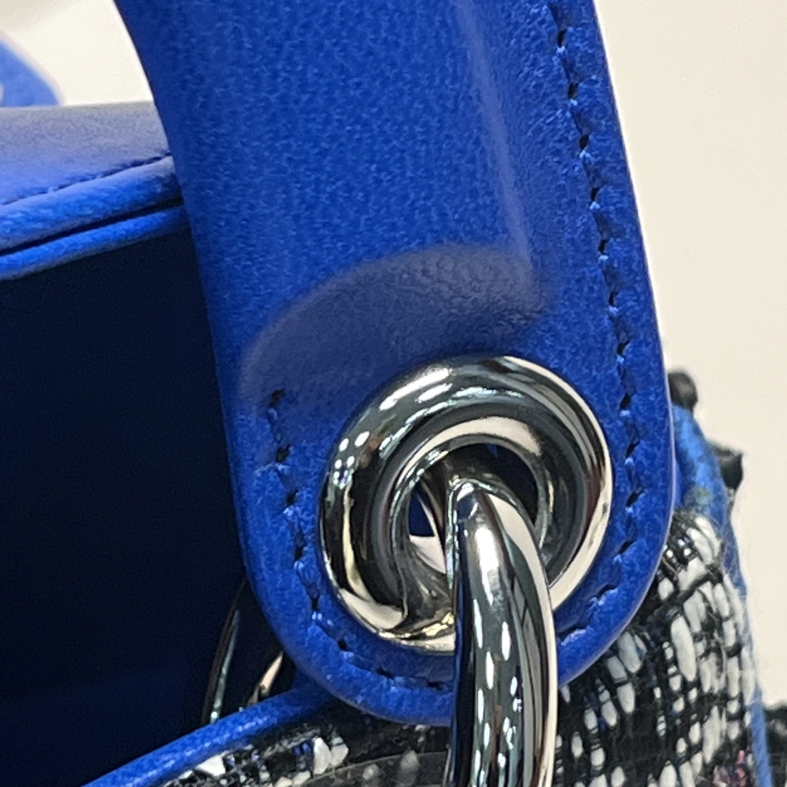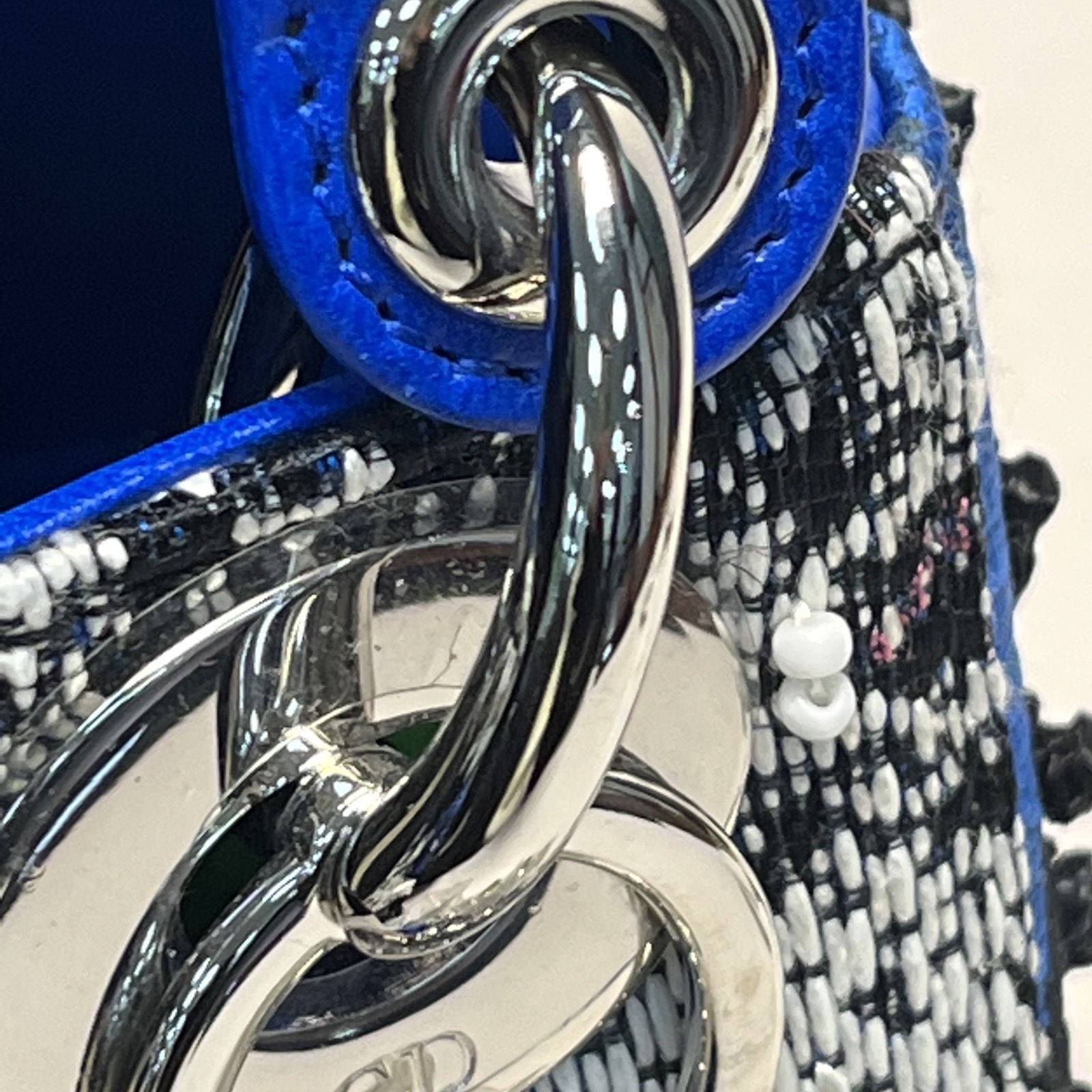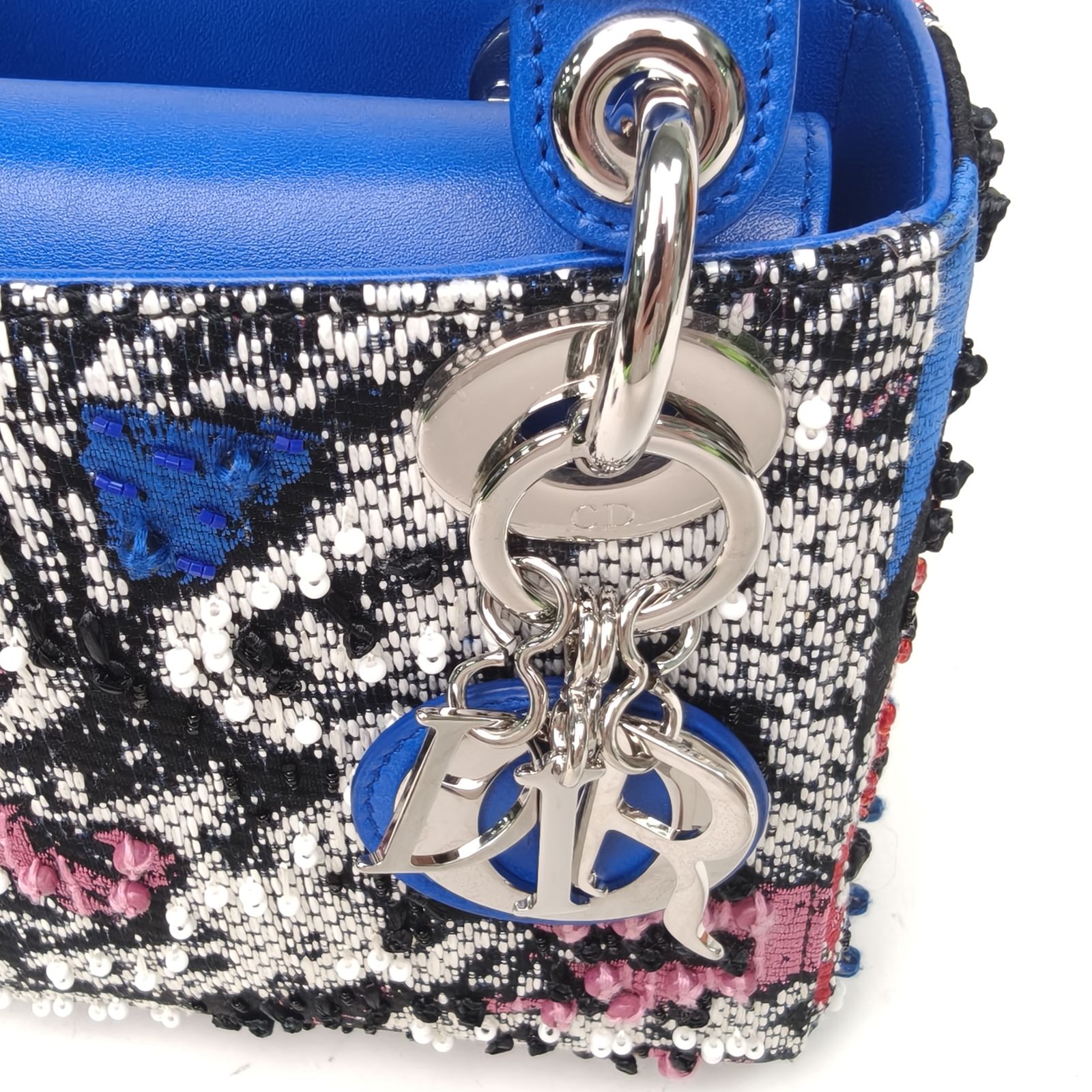 Dior Lady Dior Mini Graffiti Leather Knit Silver Hardware