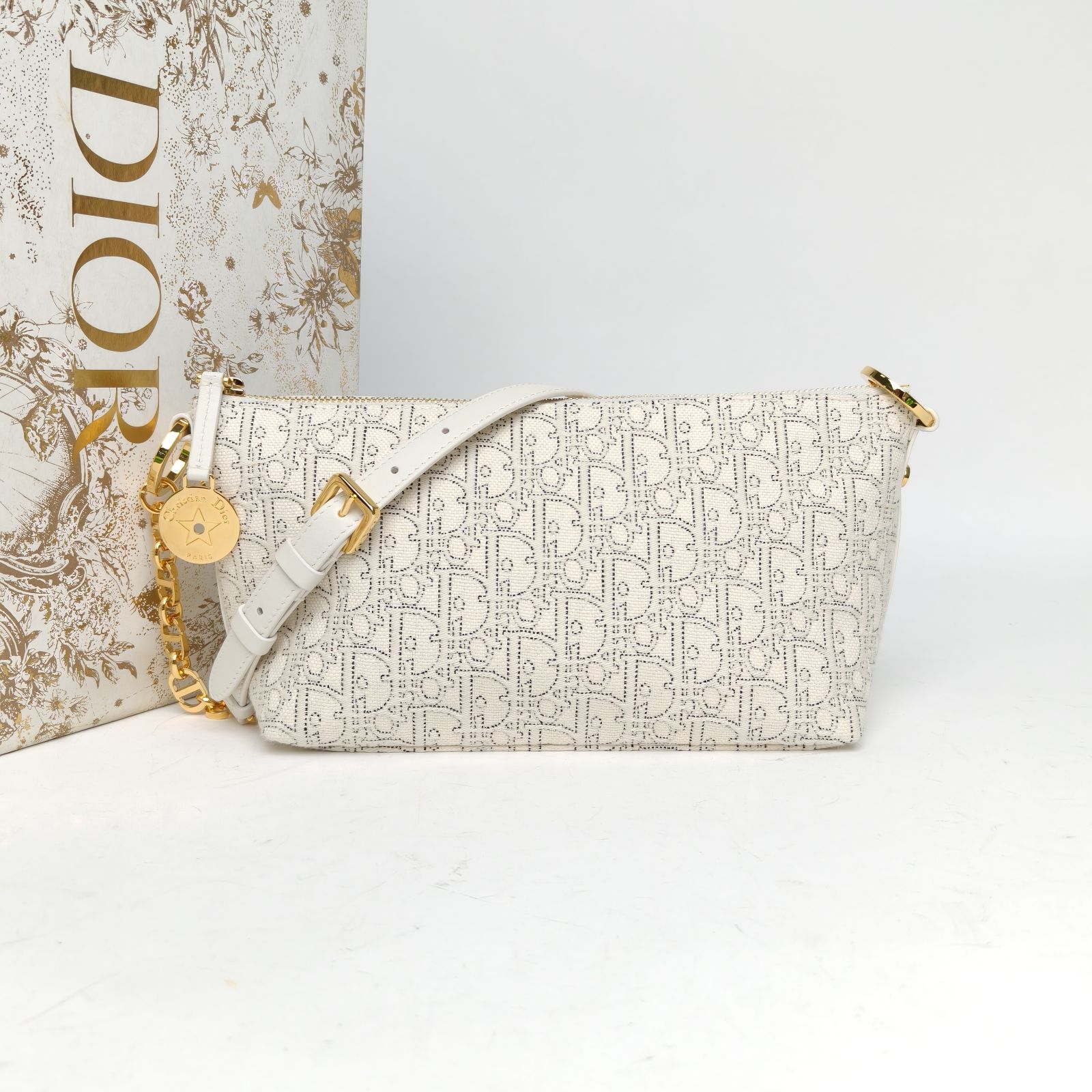 This Dior Star Hobo bag showcases the brand’s iconic Oblique canvas in a clean white palette, blending modern elegance with timeless French sophistication. The sleek silhouette balances casual comfort and refined luxury, suitable for daily outings and versatile styling. Meticulously crafted with premium materials, it carries subtle sophistication that elevates any outfit with quiet confidence and contemporary grace, embodying the brand’s refined aesthetic and enduring appeal.
