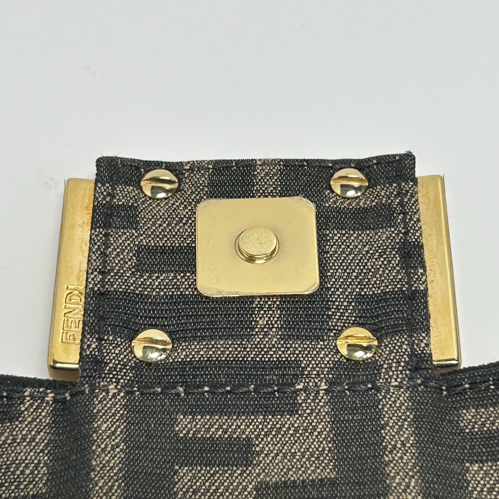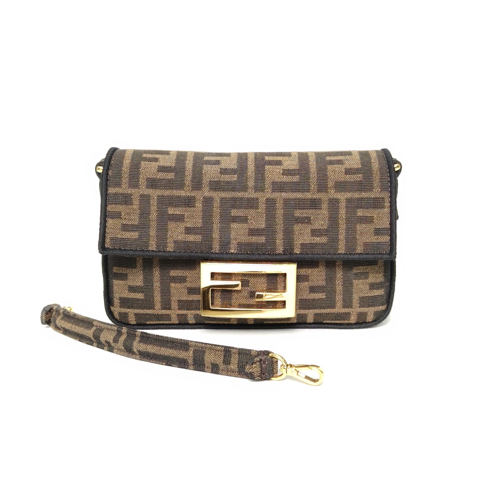 Crafted from canvas with iconic FF monogram and FENDI hardware, this Baguette bag features a detachable strap, a timeless luxury piece.