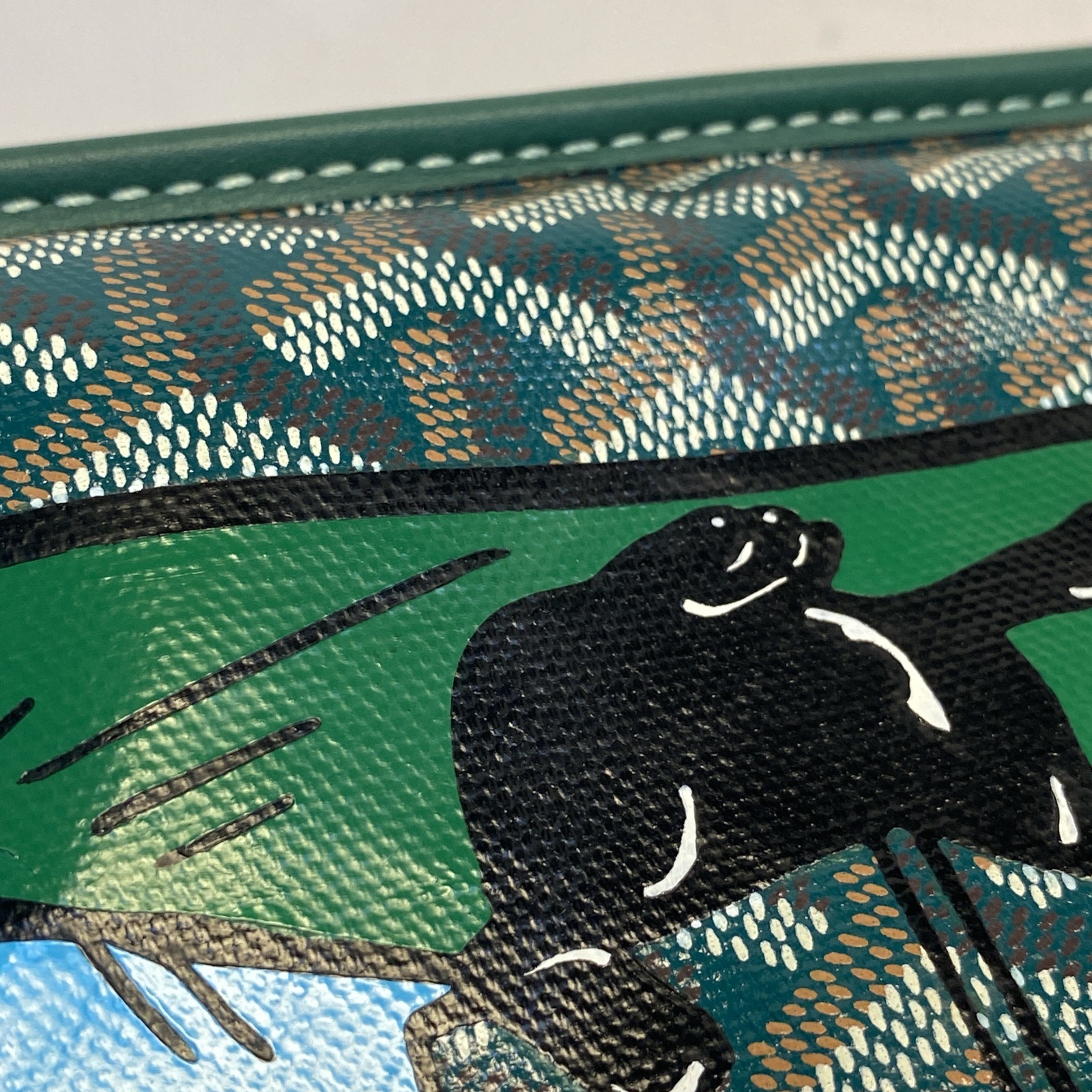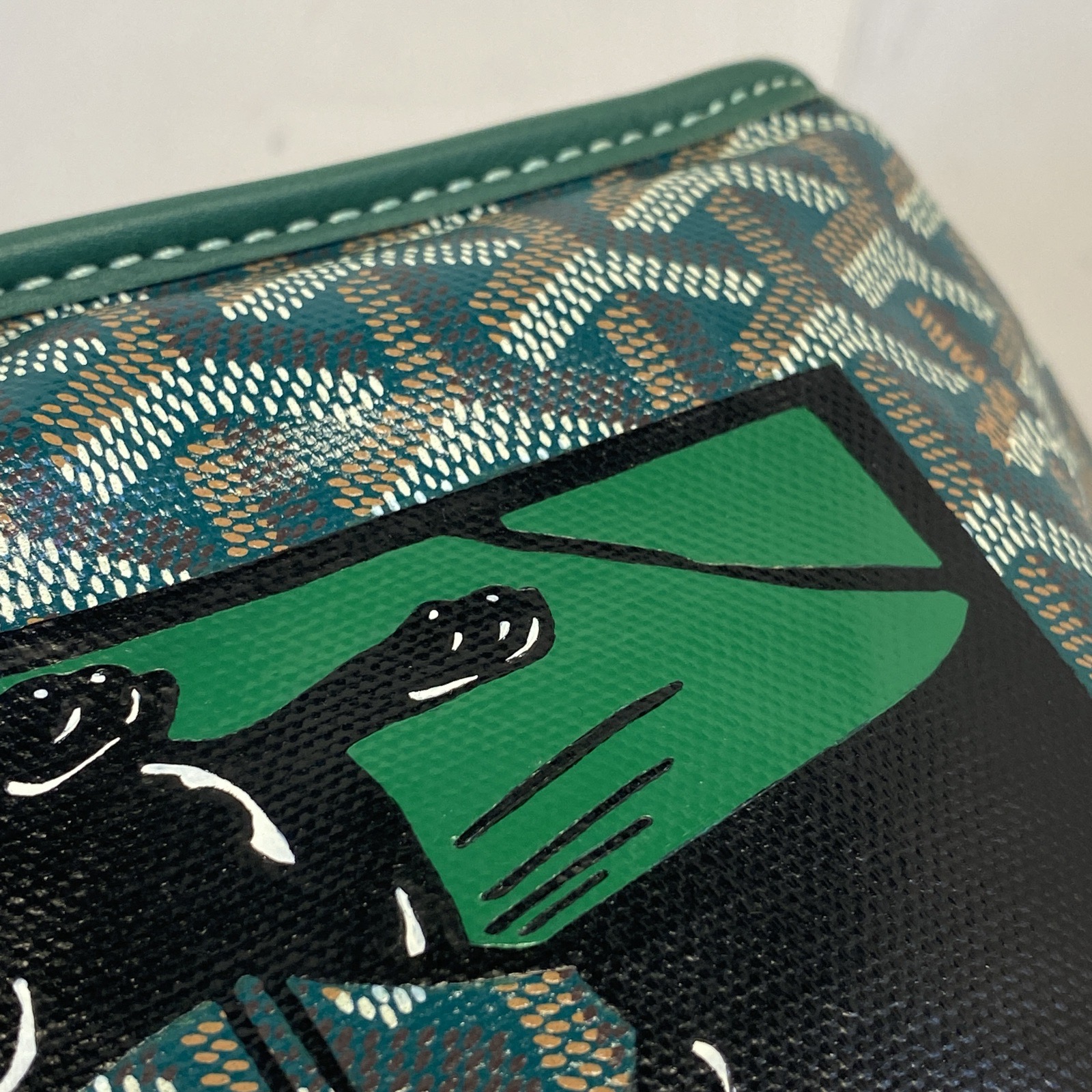 Crafted from iconic green Goyardine canvas, this Anjou mini tote features top handles and a detachable strap, a limited edition luxury piece with dog print.