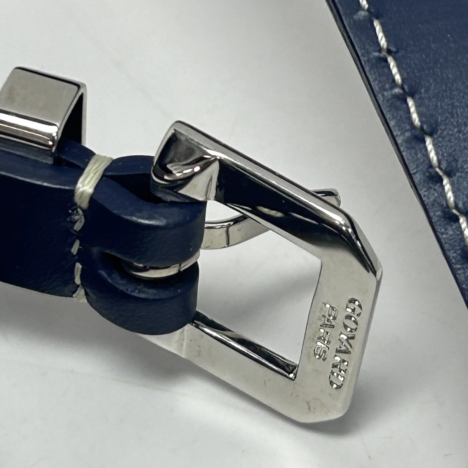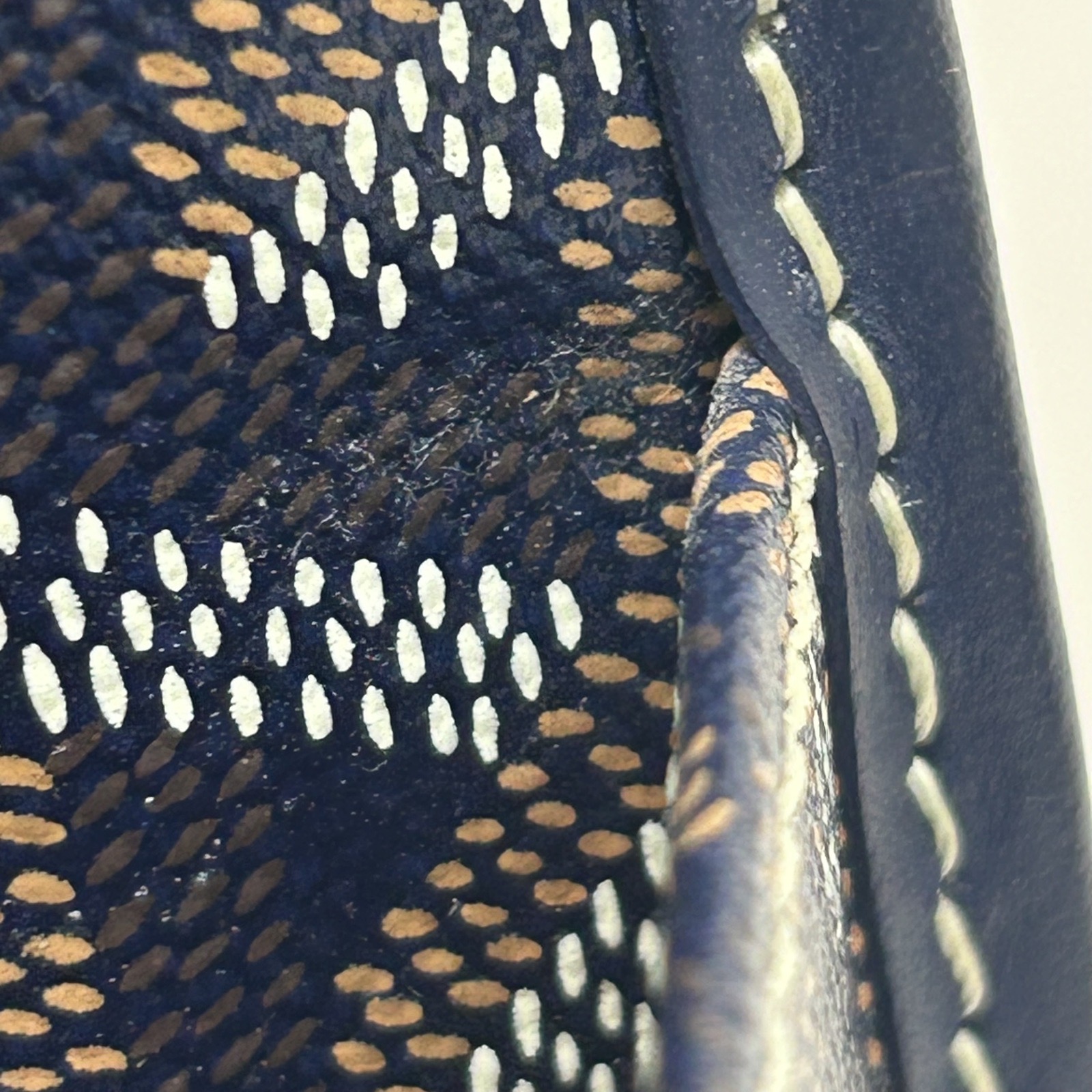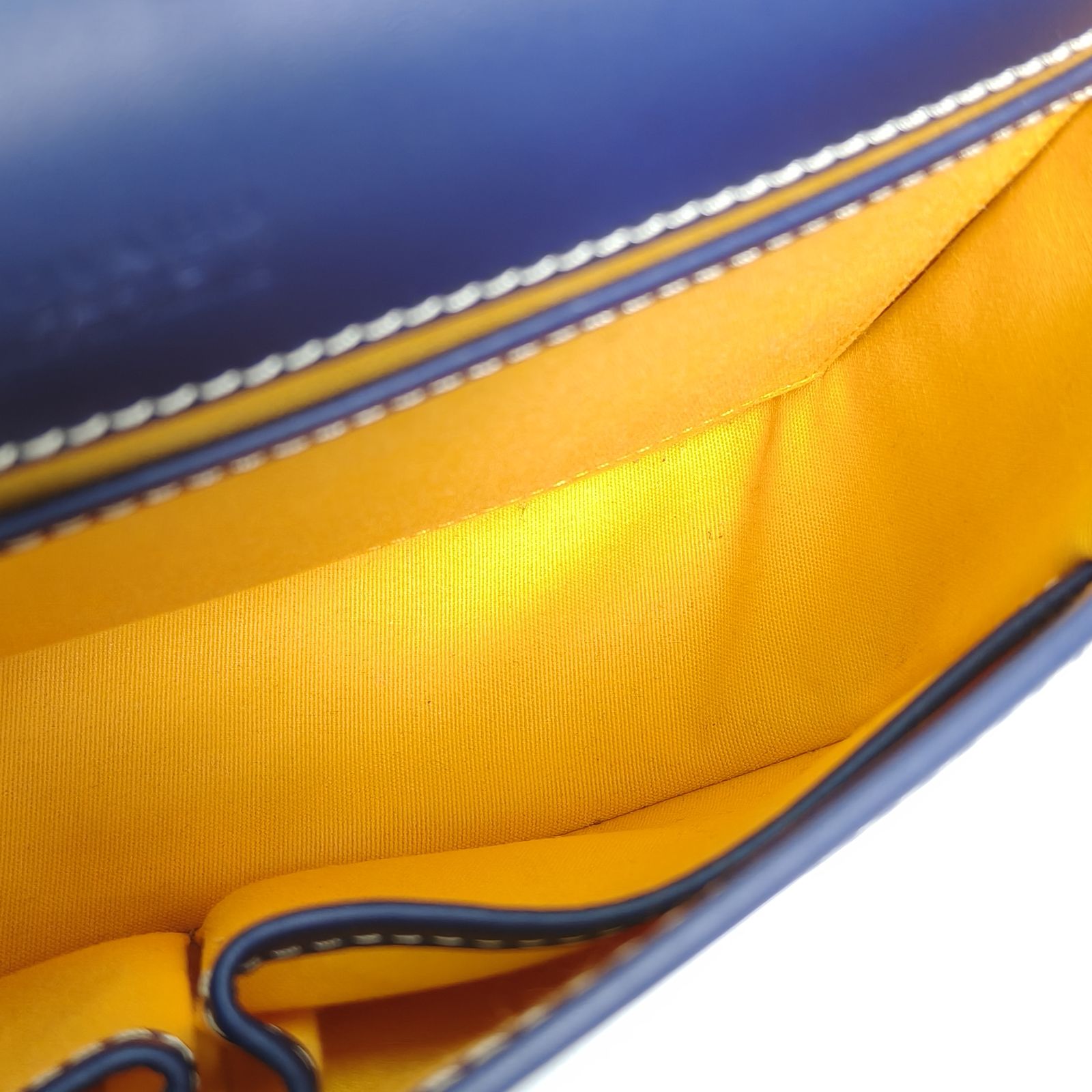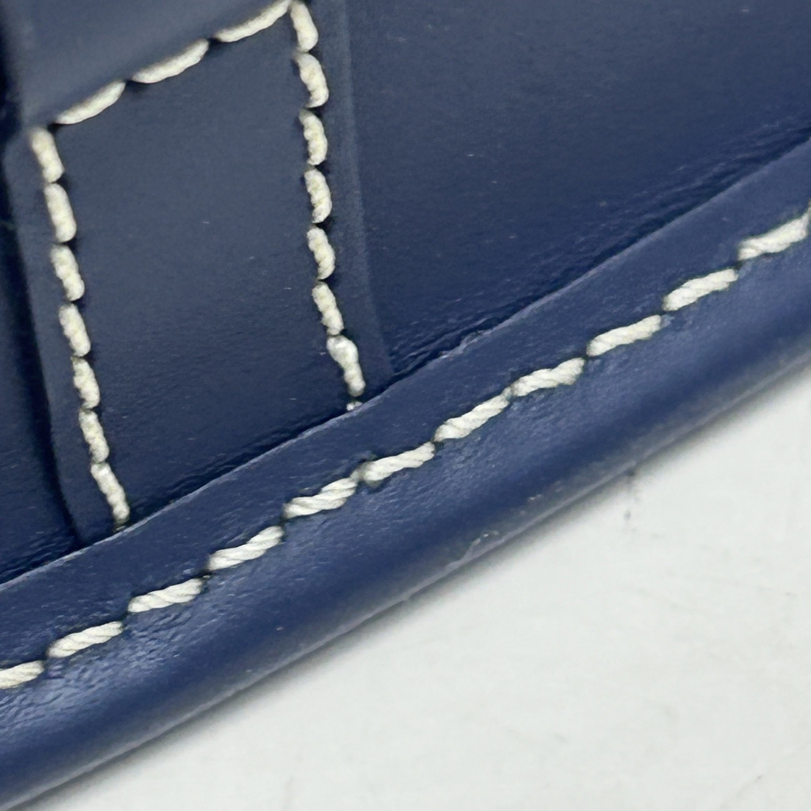 Crafted from blue Goyardine PVC with leather trim, this Belvedere II PM messenger bag features a detachable strap and gold-tone hardware, embodying Goyard’s timeless craftsmanship.