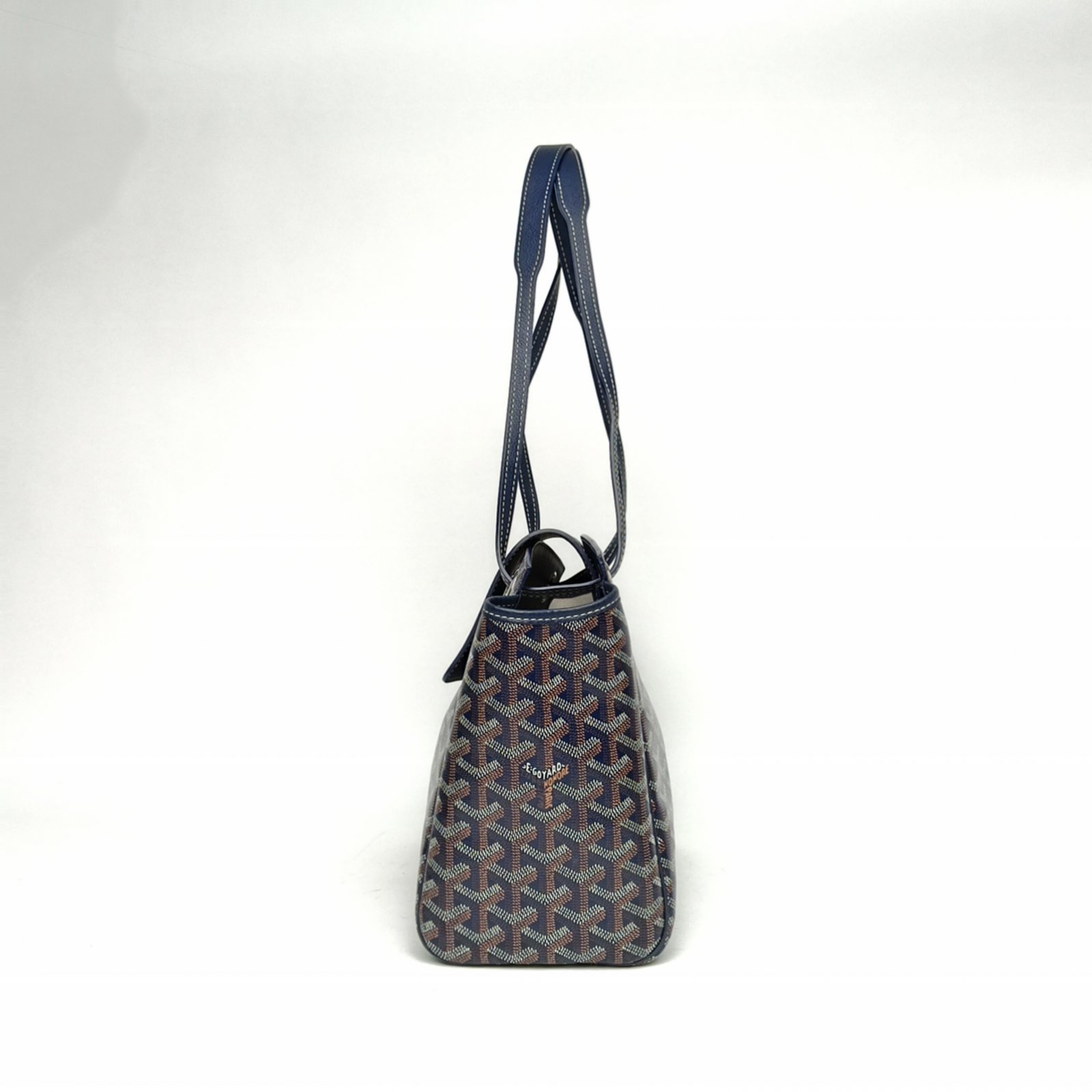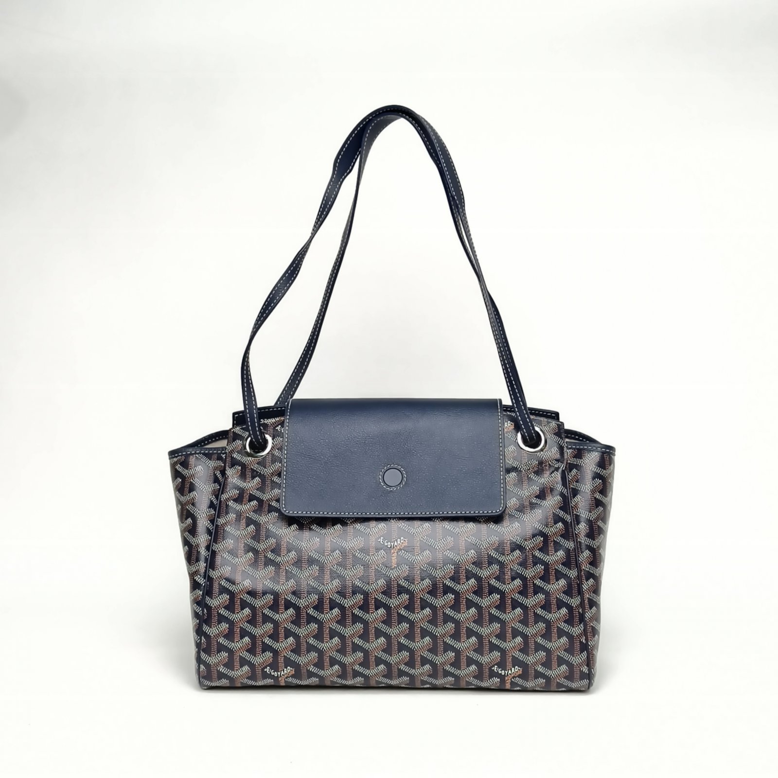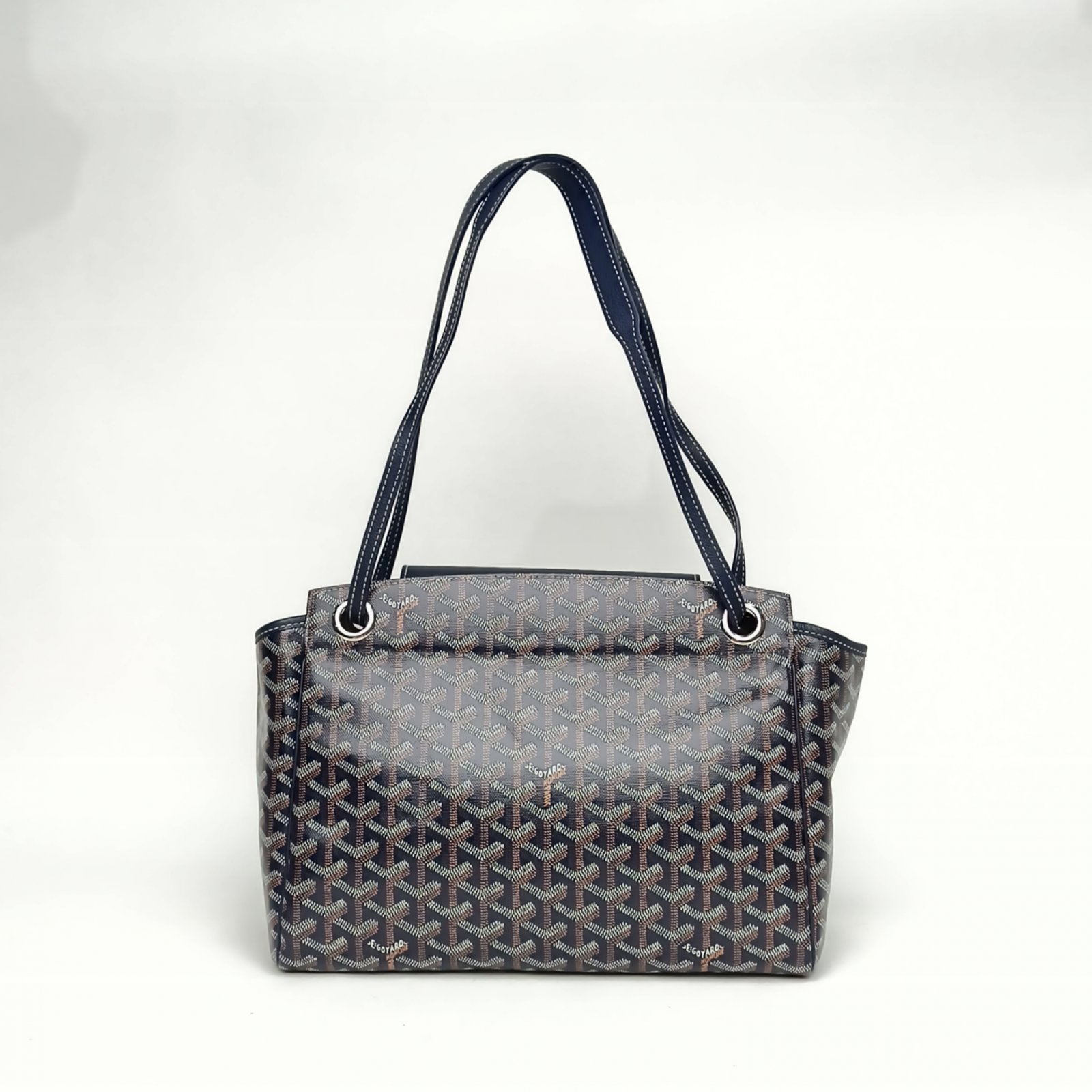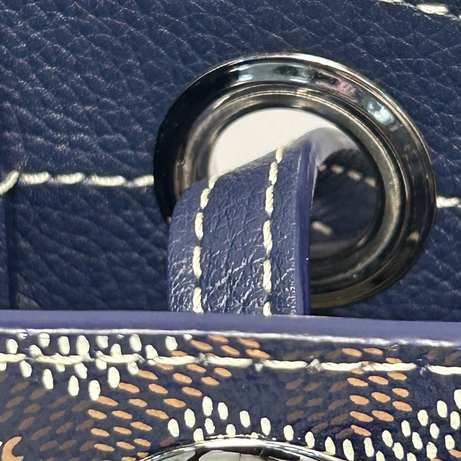 Made from blue PVC with iconic Goyard monogram, this Rouette tote features a flap closure and dual handles, offering a classic, lightweight silhouette for everyday carry.