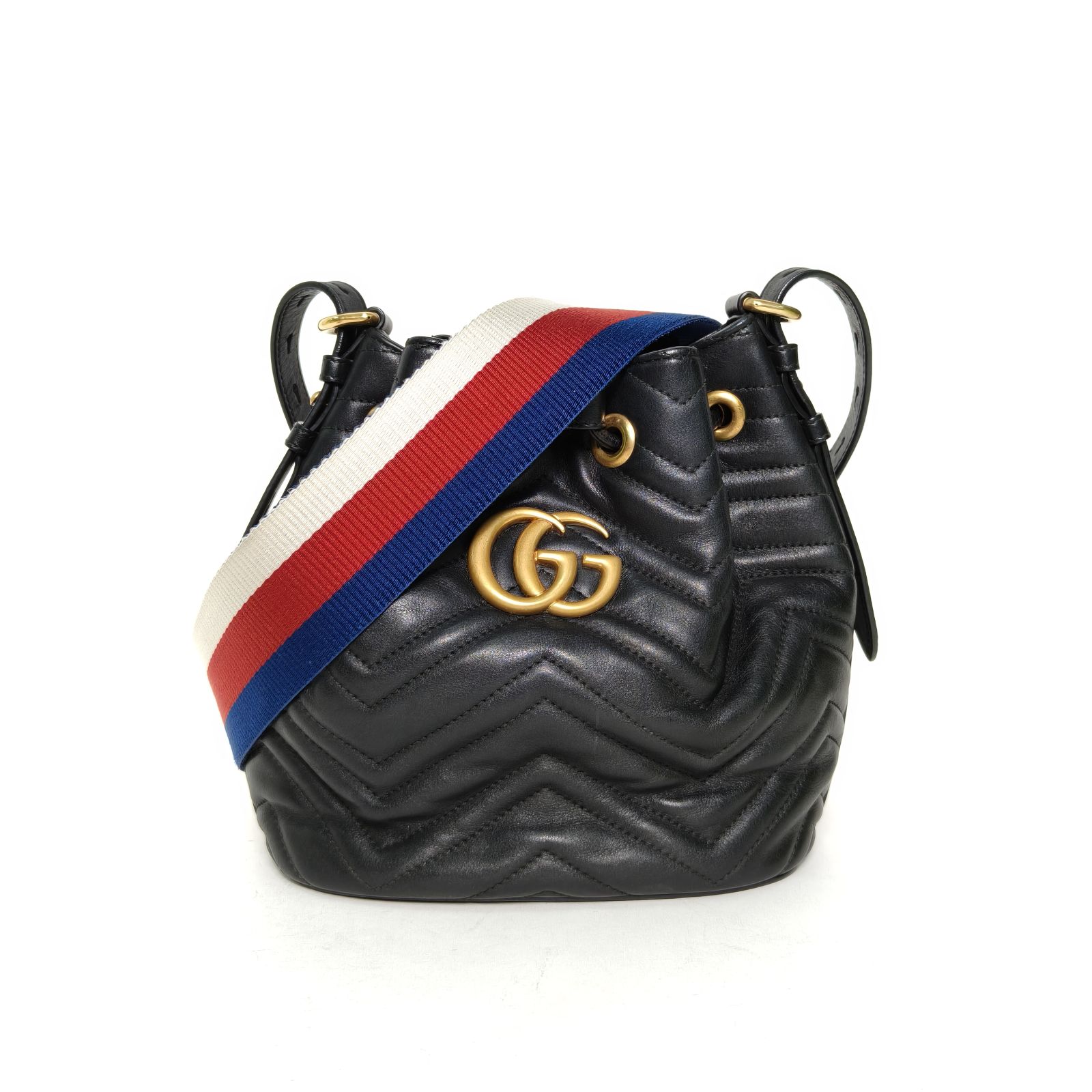 Crafted from premium leather with iconic GG Marmont quilting and gold-tone hardware, this bucket bag 21 features a detachable strap, a stylish daily luxury piece.