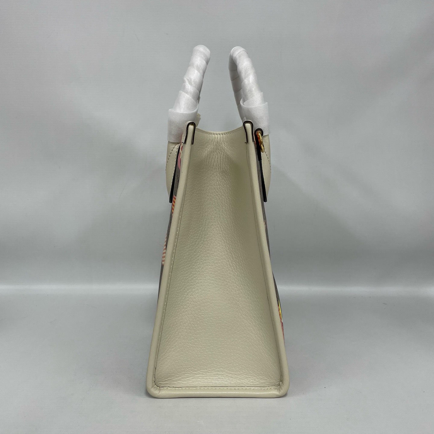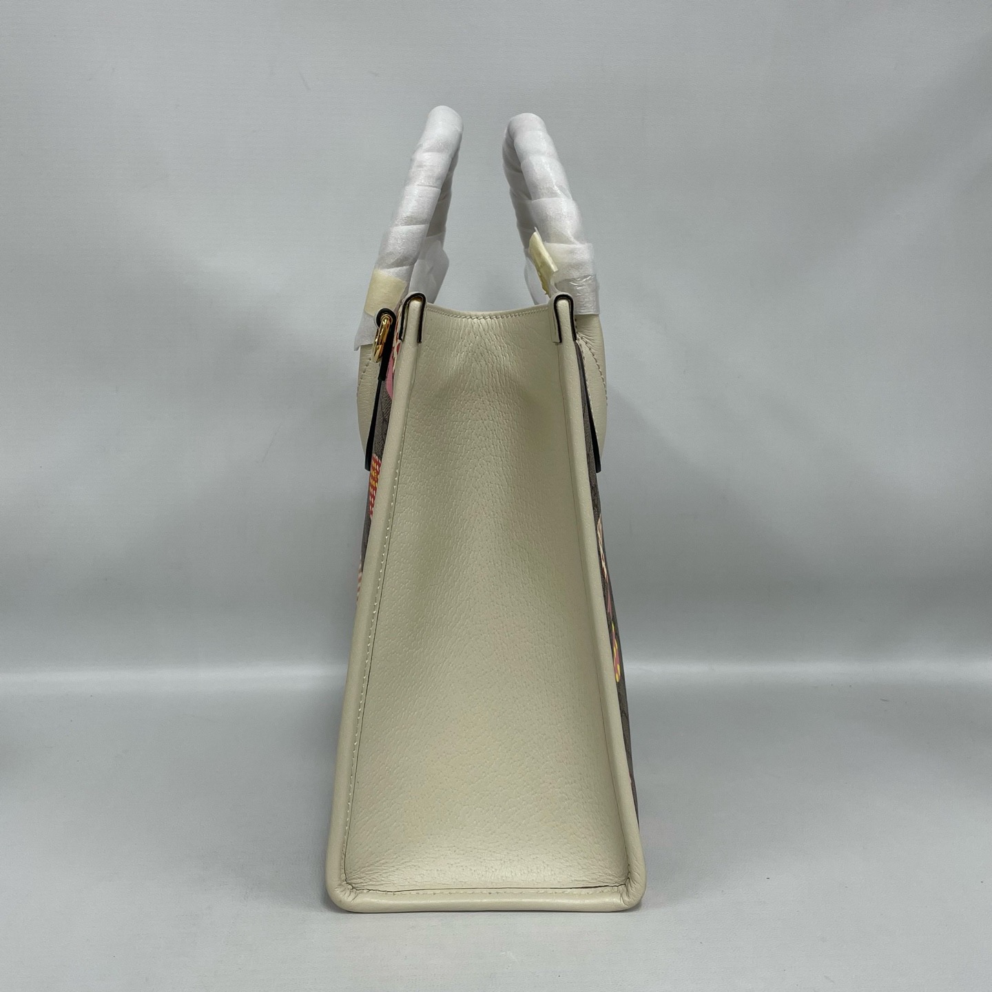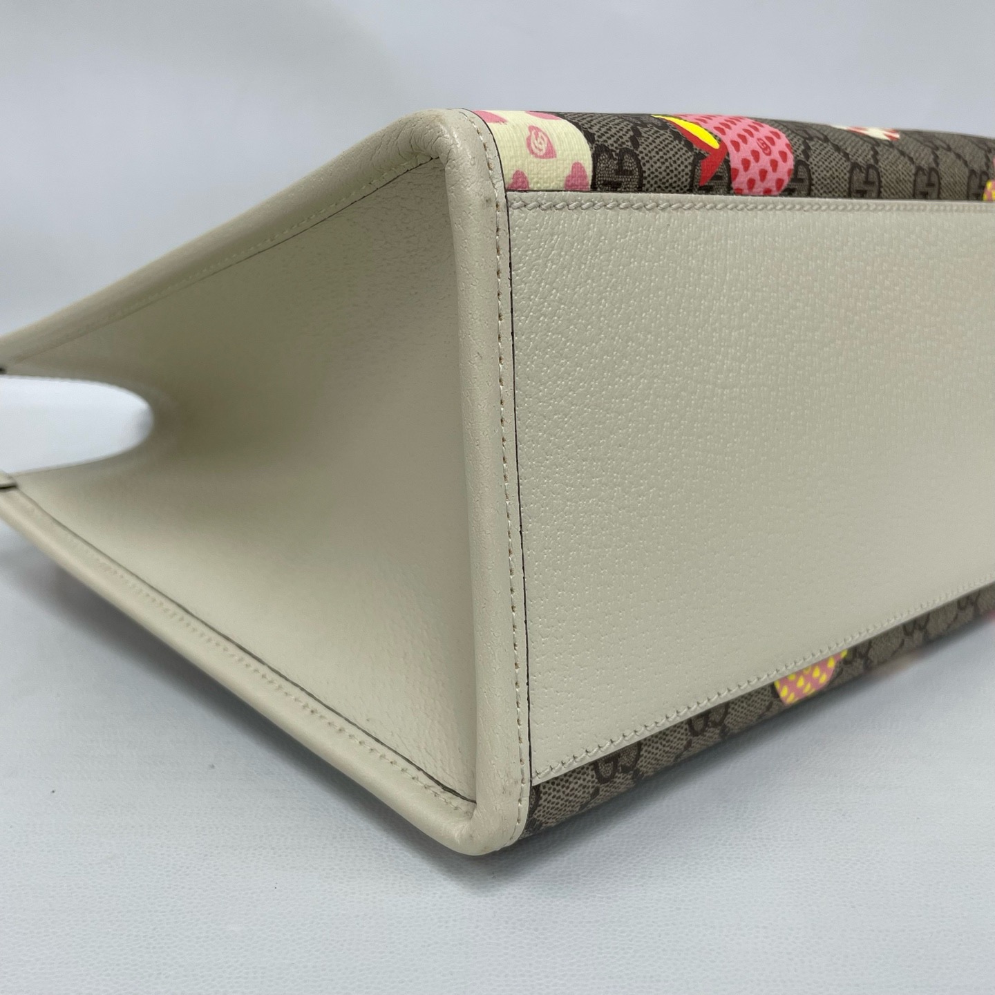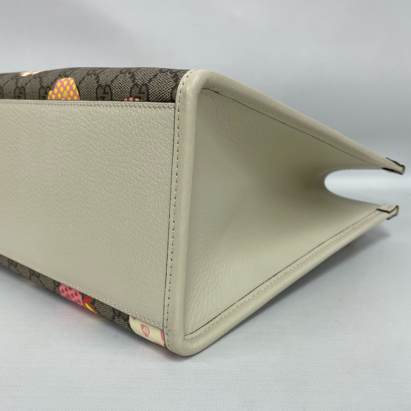 This charming Gucci Les Pommes small tote bag is a vibrant celebration of the House’s playful spirit, featuring a whimsical apple and heart motif atop the iconic GG Supreme canvas. Crafted with ivory white leather trim and gold-toned hardware, its structured silhouette offers a perfect blend of heritage luxury and contemporary pop art. The 31cm width provides a spacious interior, secured by a functional hook closure, making it an ideal companion for daily commutes or weekend outings. The adjustable shoulder strap and rounded top handles offer versatile carrying options, while the durable coated canvas ensures long-lasting wear. A standout piece from the special collection, it adds a refreshing and quirky twist to any ensemble, perfectly capturing the eclectic vision of modern Gucci.