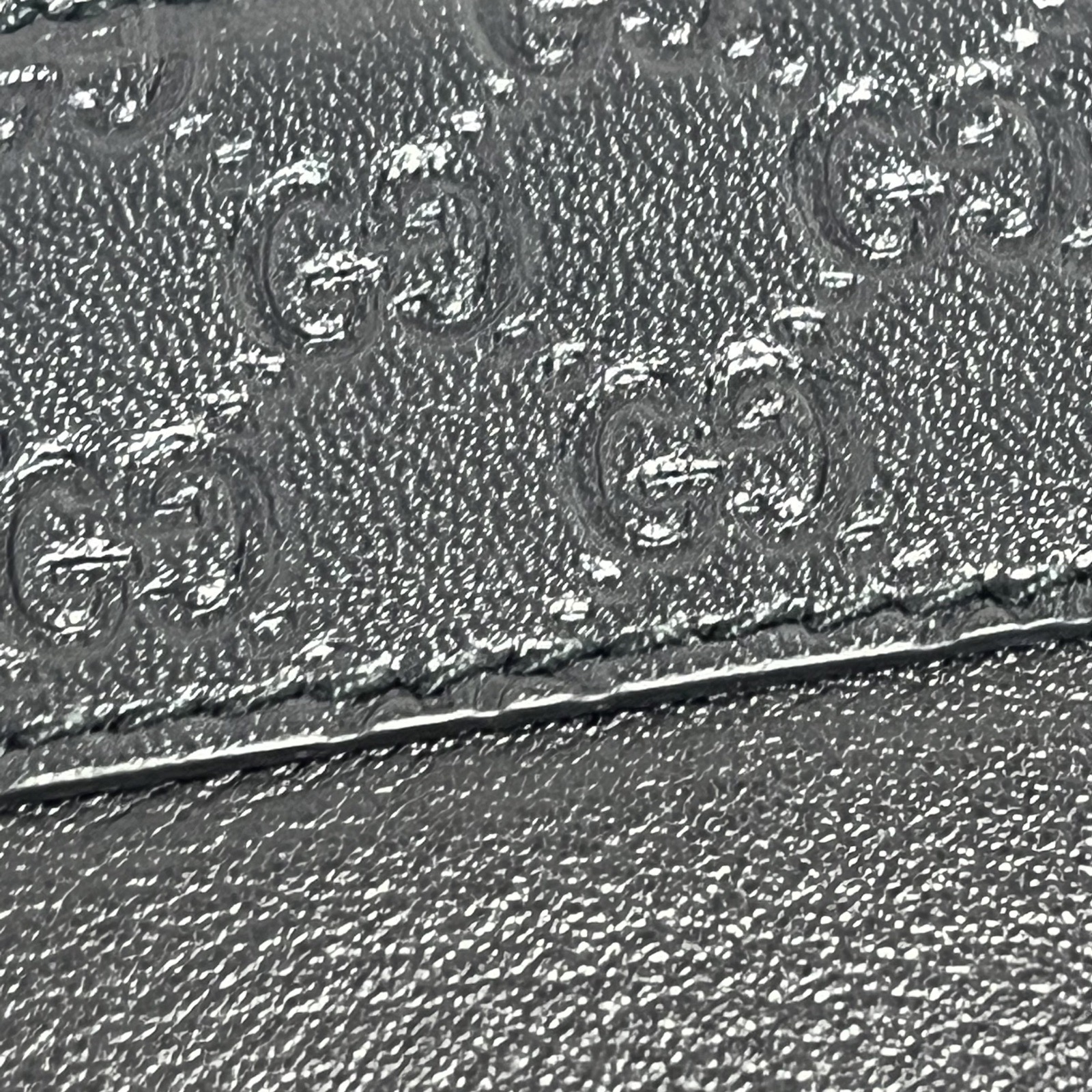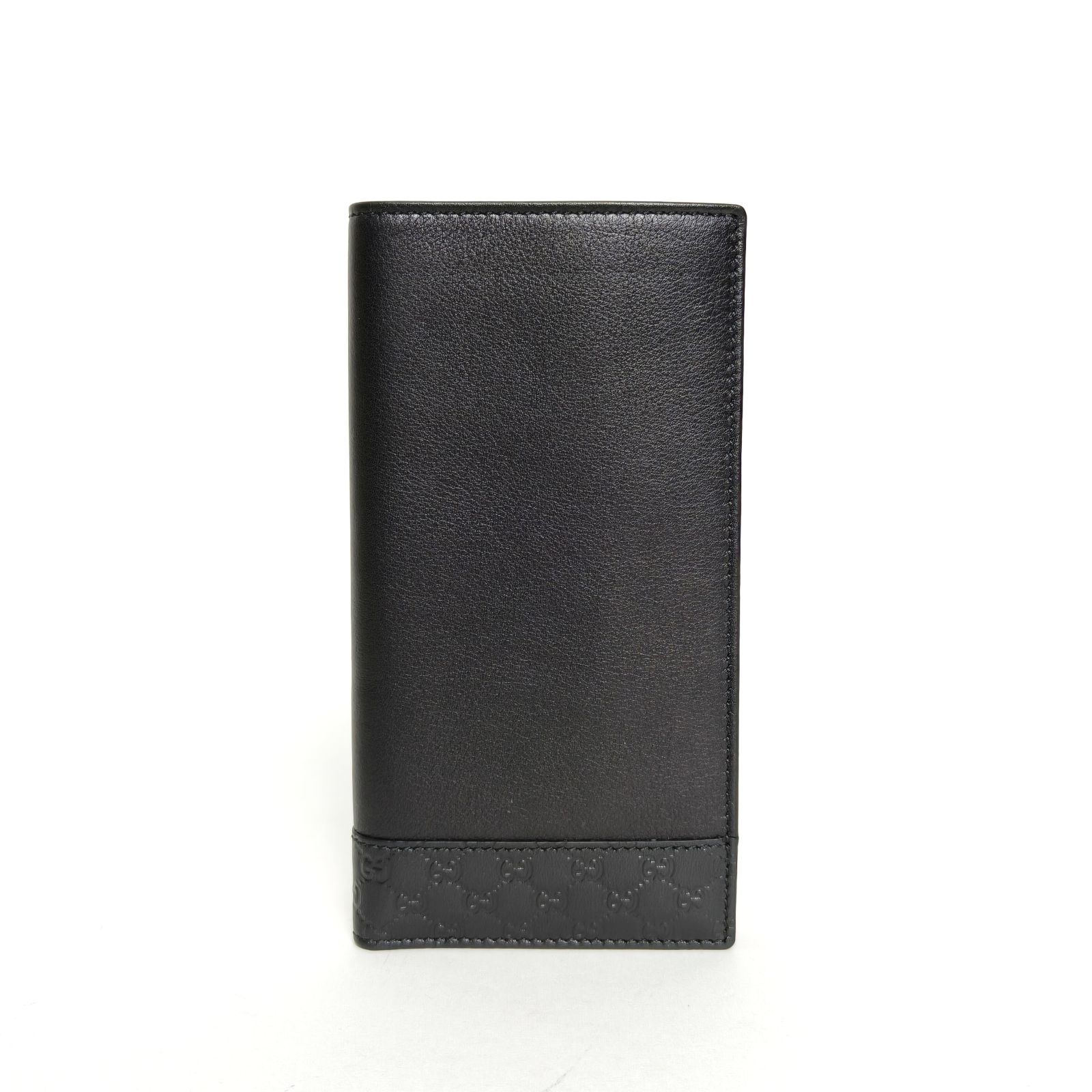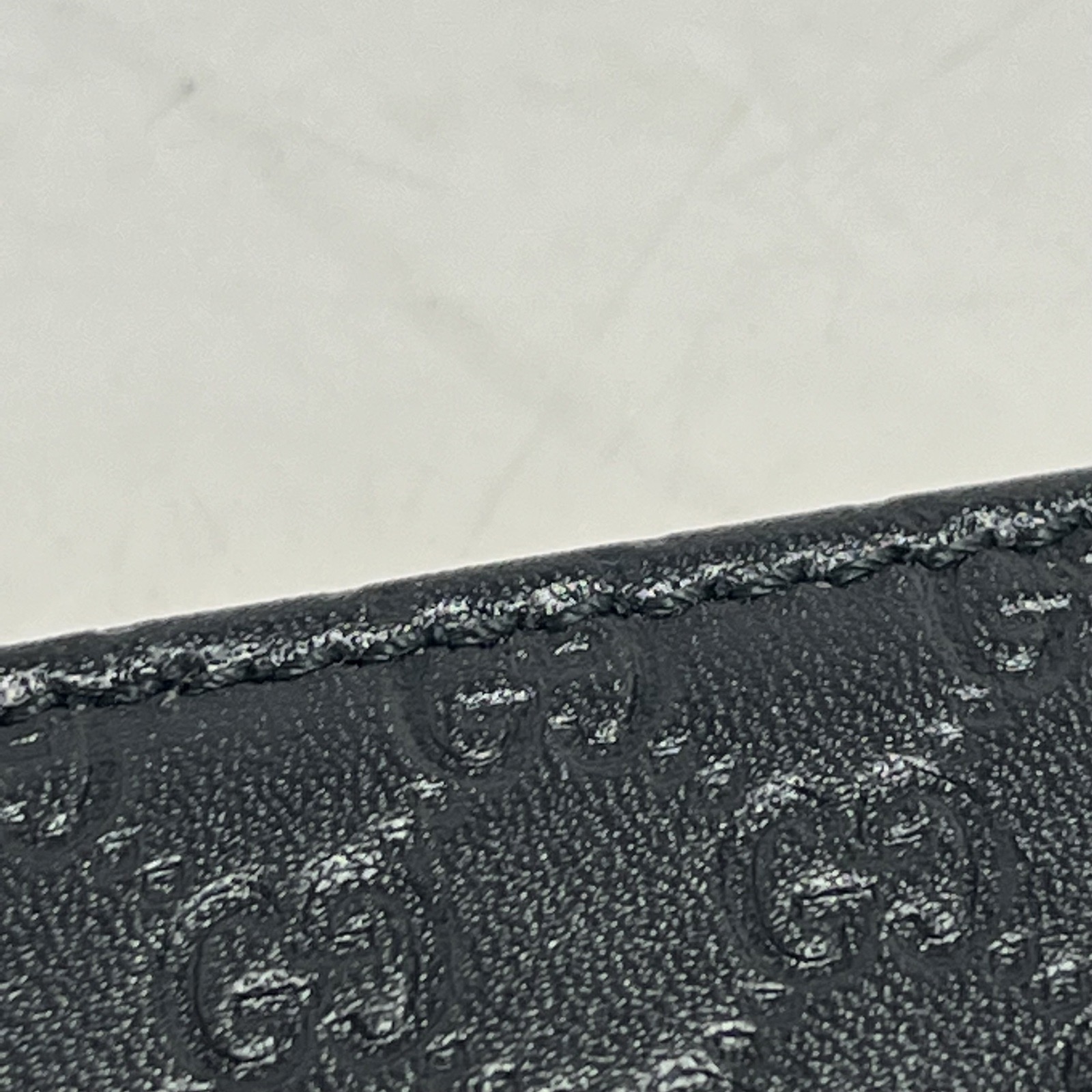 Crafted from black leather with embossed Gucci monogram, this long wallet features multiple card slots and a sleek silhouette, offering organized storage with understated luxury.