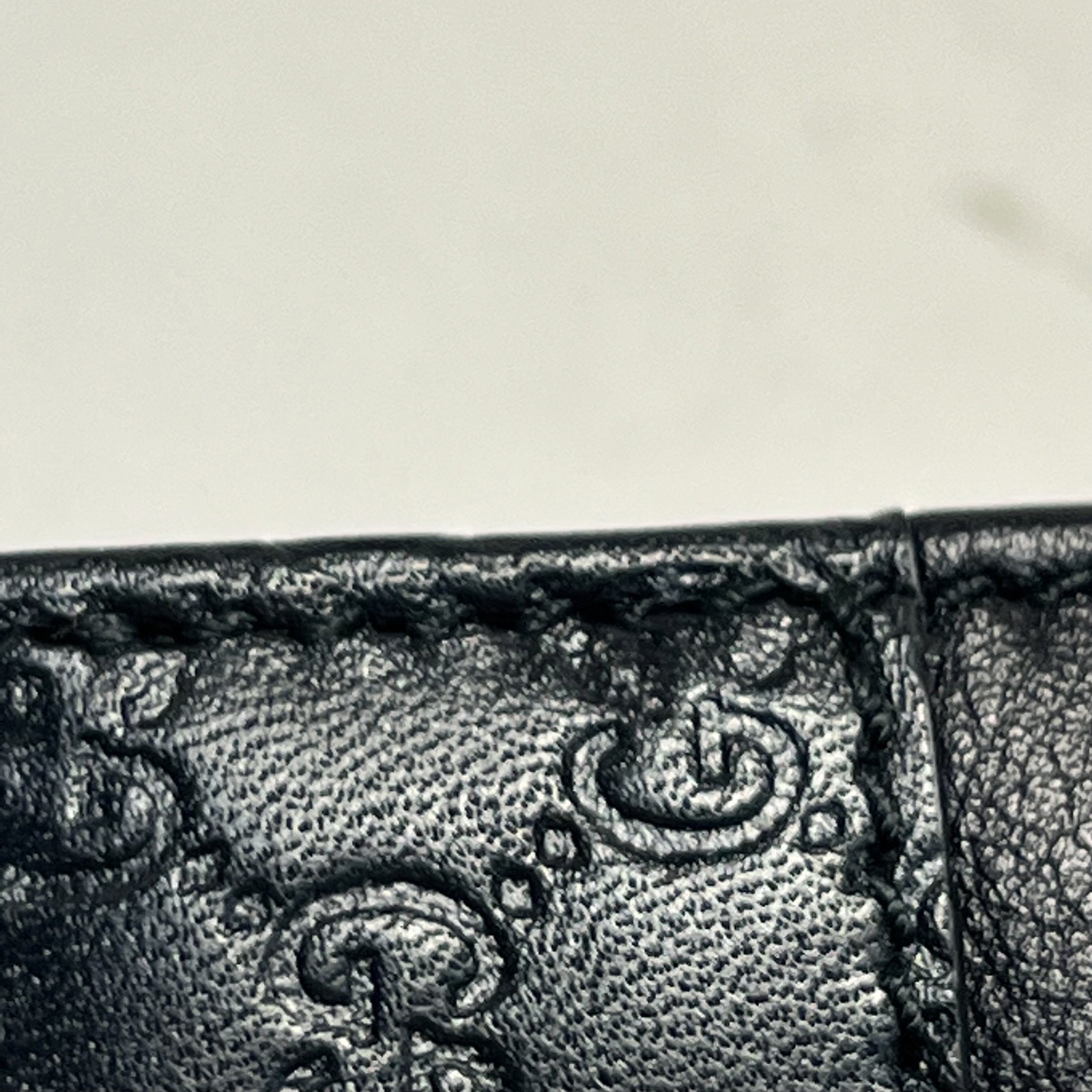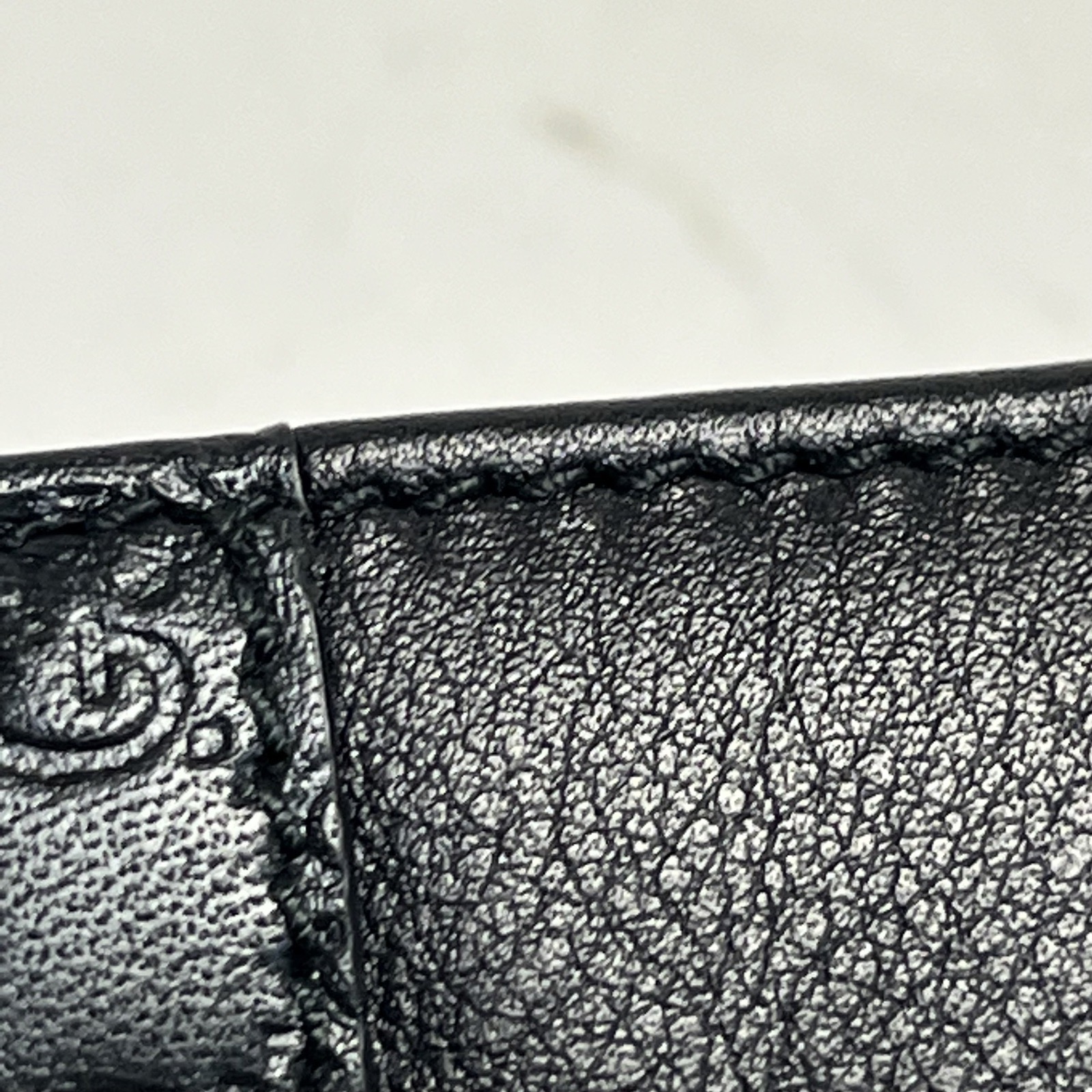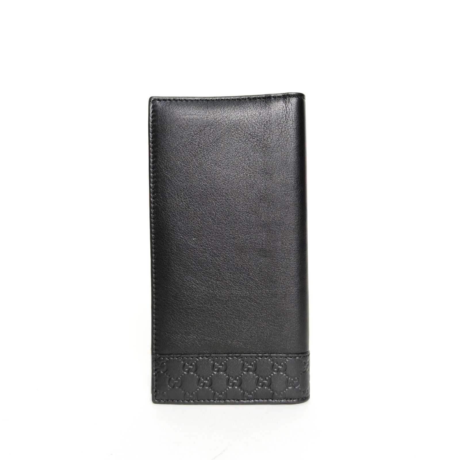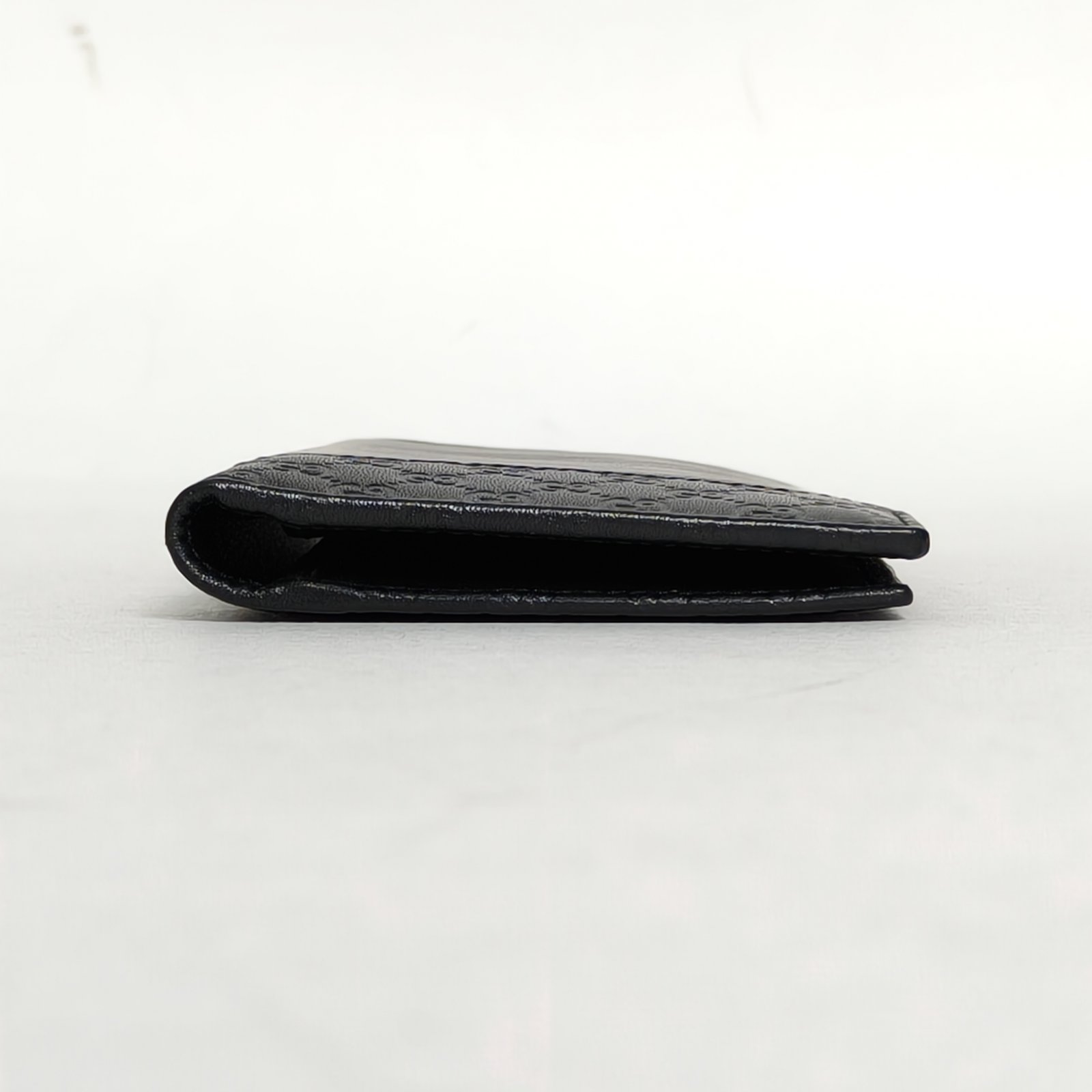 Crafted from black leather with embossed Gucci monogram, this long wallet features multiple card slots and a sleek silhouette, offering organized storage with understated luxury.