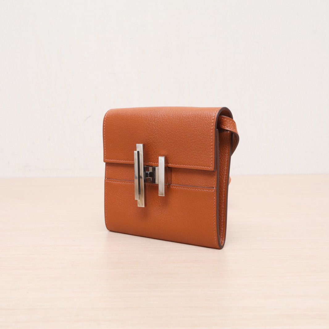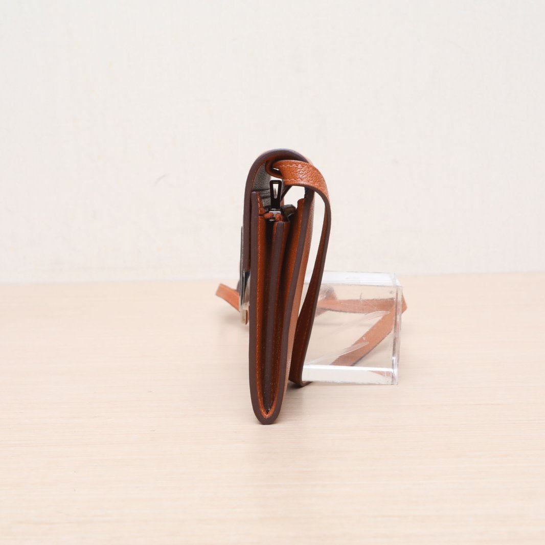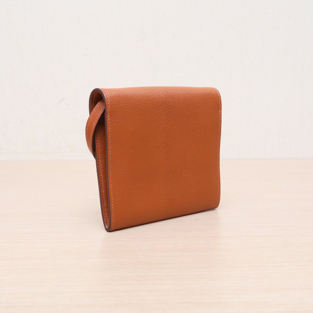 Crafted from premium Chevre leather with signature Hermès hardware, this compact wallet features a detachable strap.