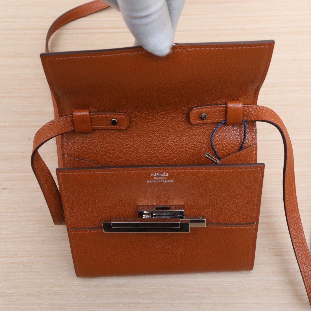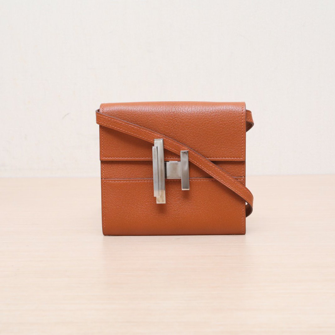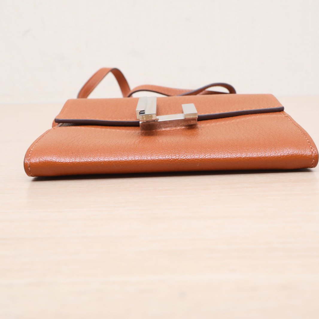 Crafted from premium Chevre leather with signature Hermès hardware, this compact wallet features a detachable strap.