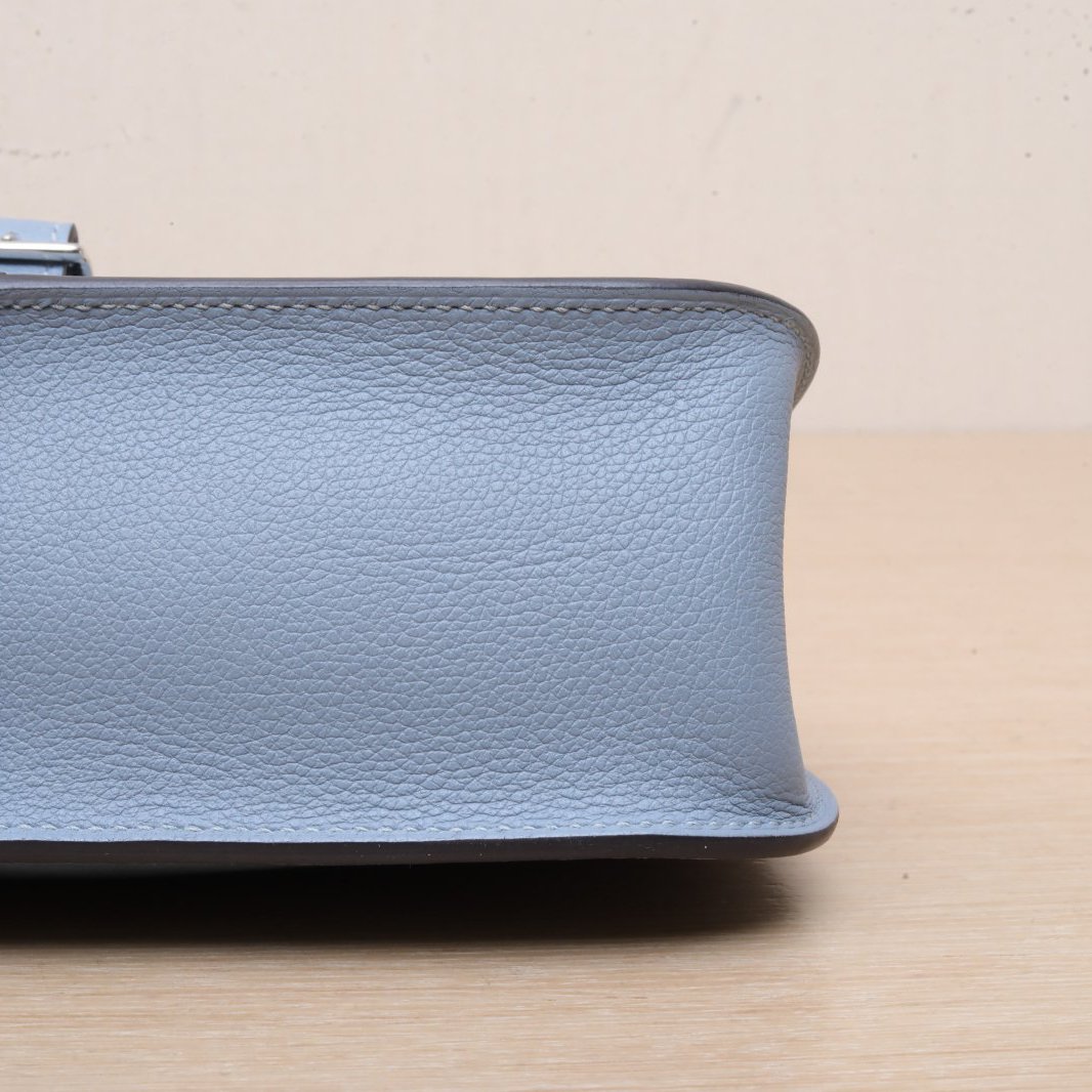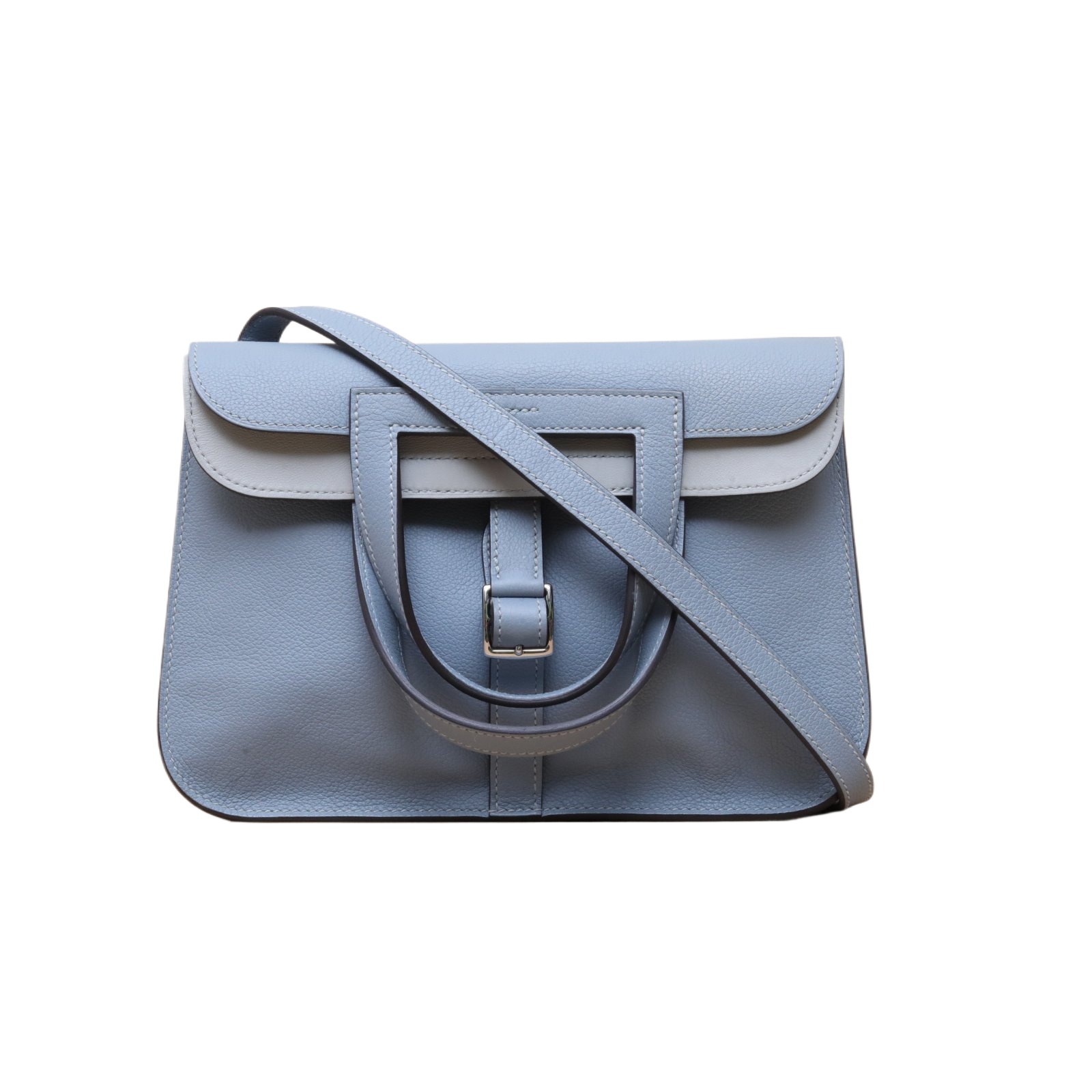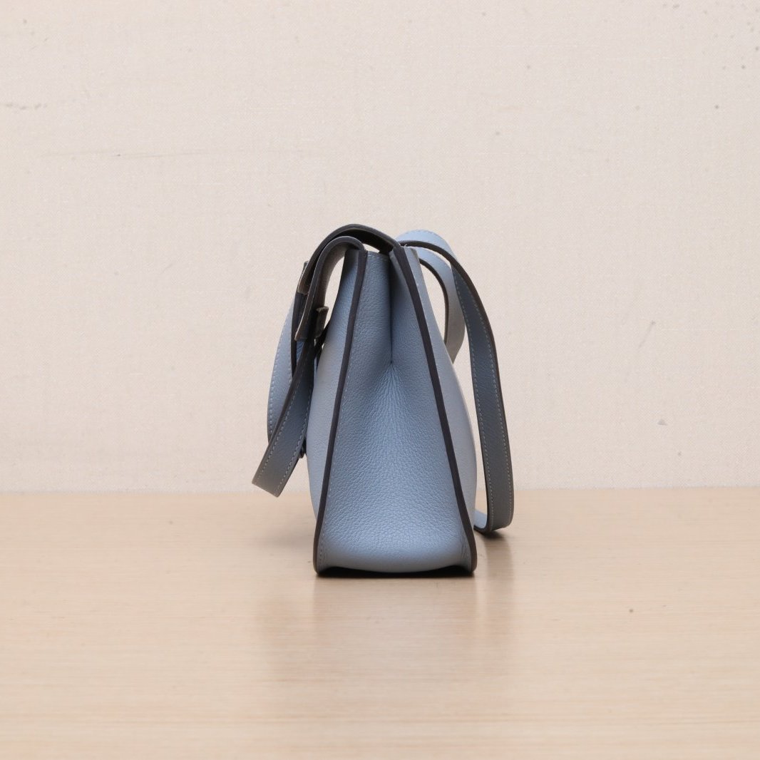 The Hermès Halzan leather handbag is a refined and understated top-handle satchel crafted from structured Taurillon calfskin featuring signature saddle stitching, clean lines and subtle flap closure, complete with sleek silver-tone hardware, exceptional French savoir-faire and sophisticated Hermès poise in serene Bleu Lin J7 blue. Feel free to click below for more consultation.