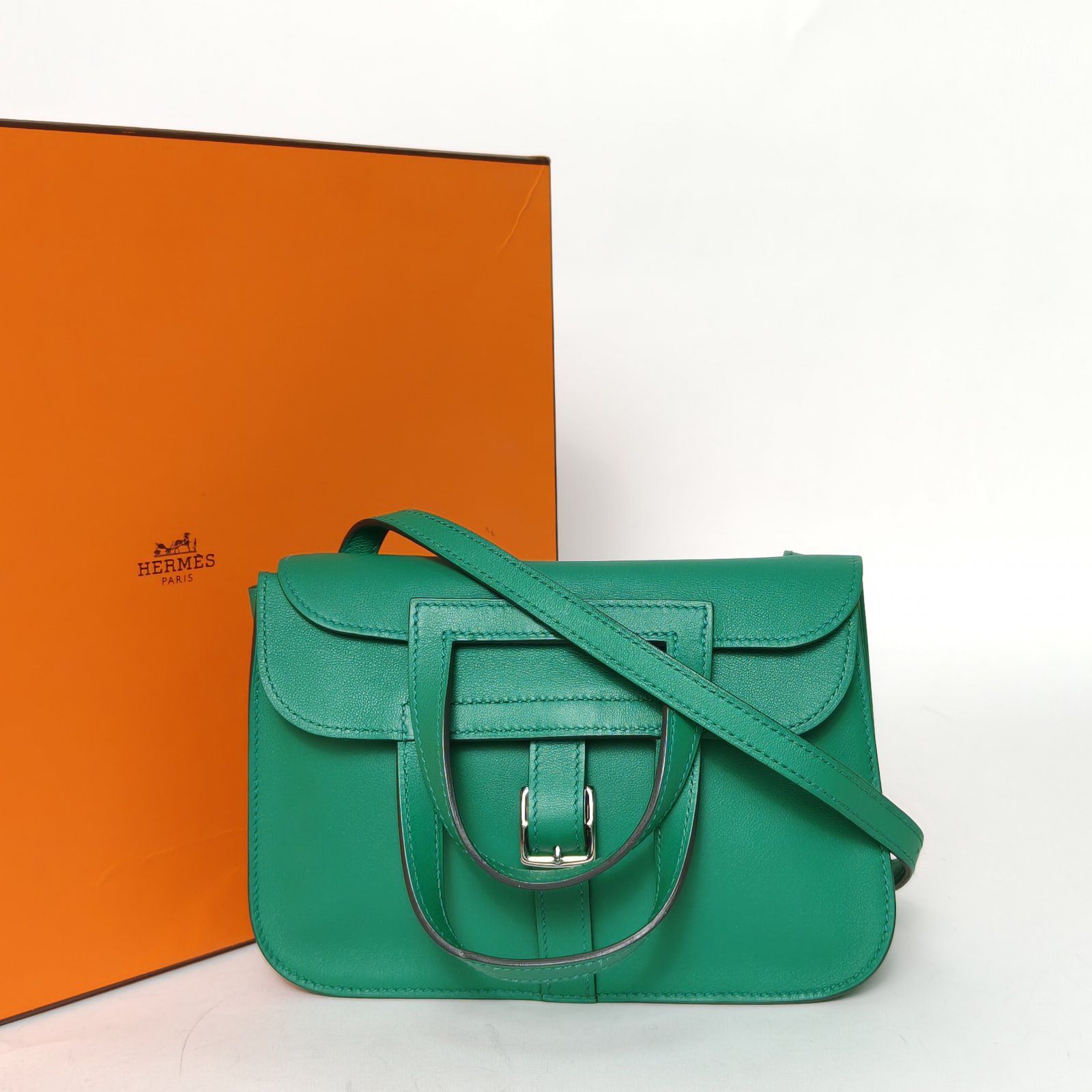 Crafted from premium Swift leather with signature Hermes hardware, this Halzan MINI 22 bag features a detachable strap, a timeless luxury piece.
