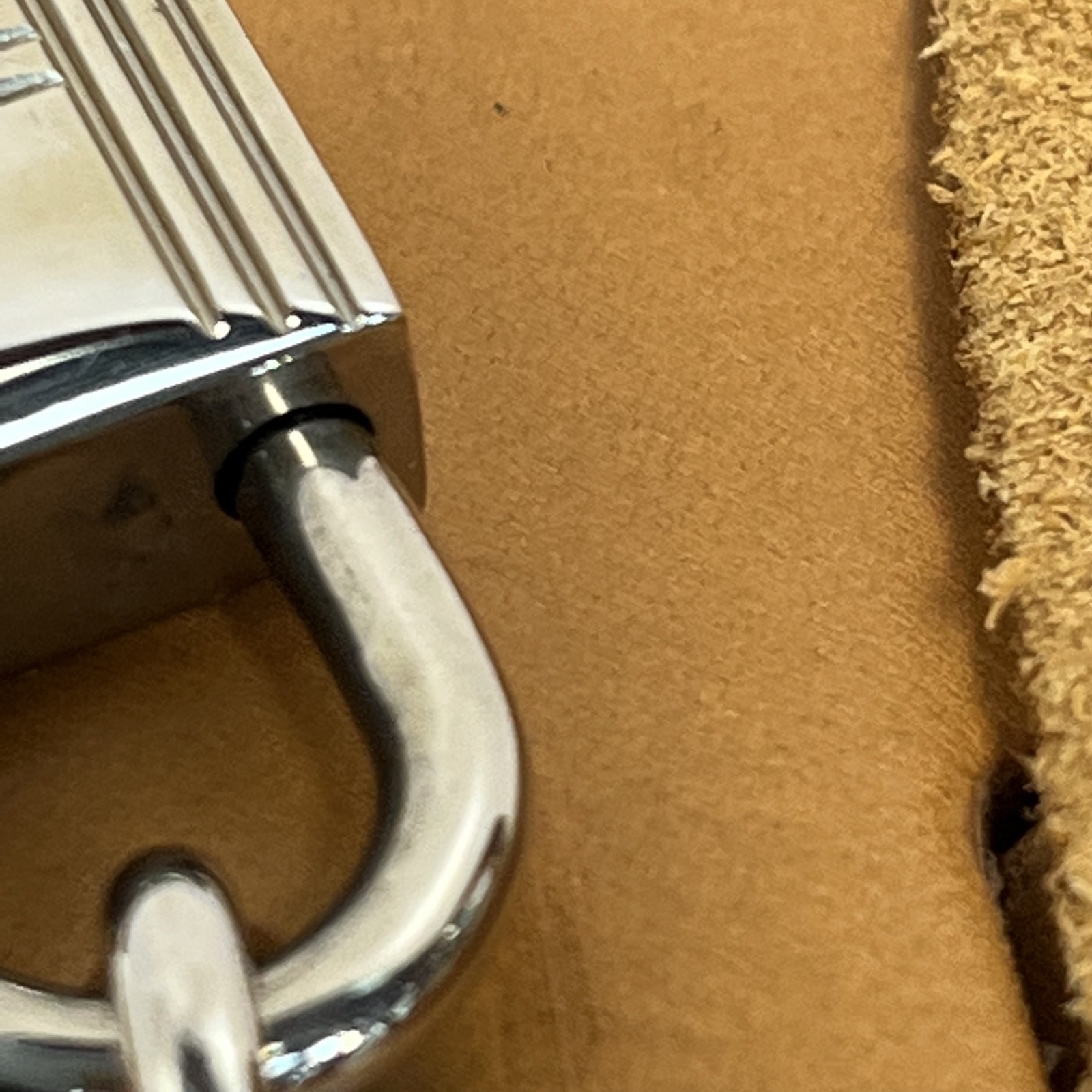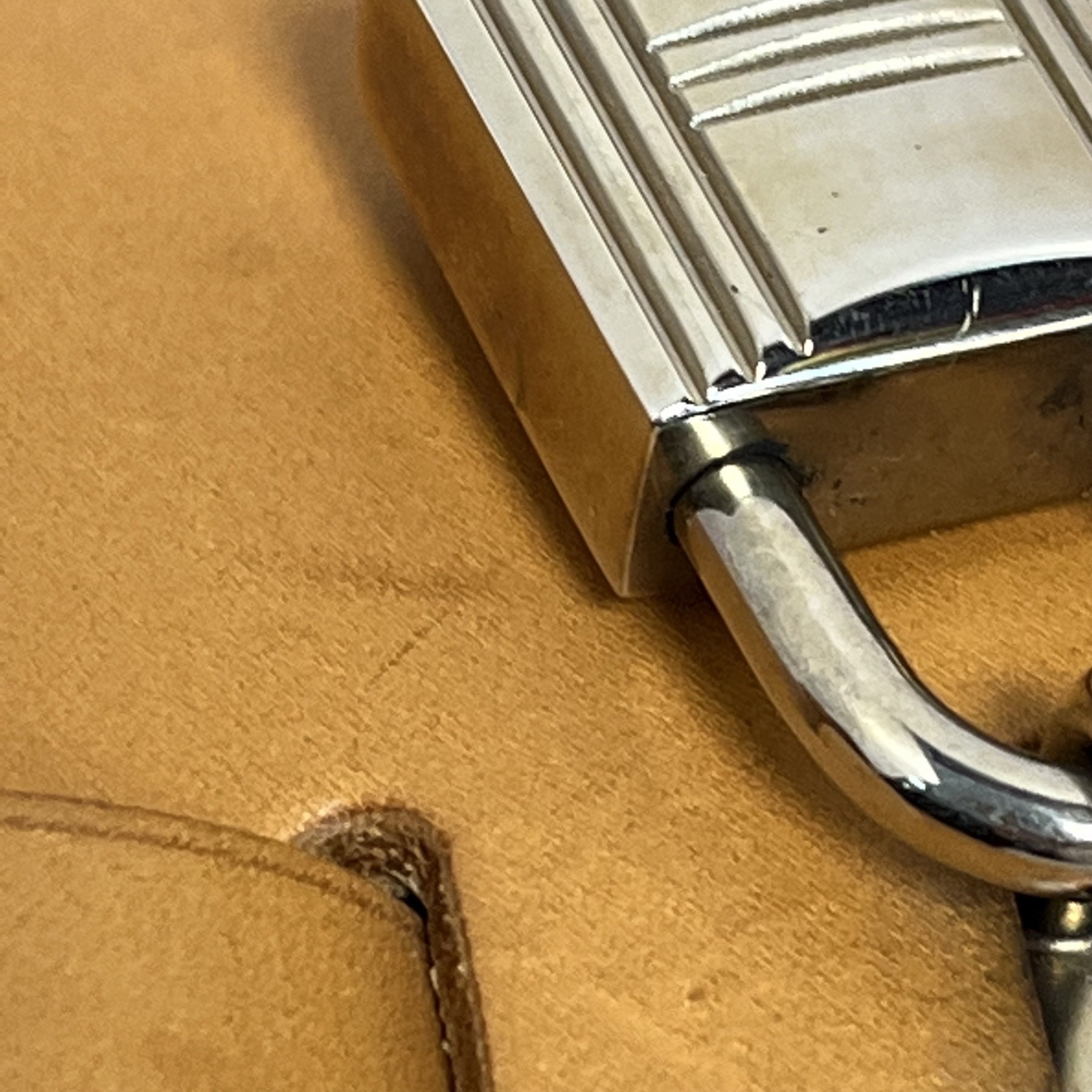 Dual shoulder straps, lock, key, leather tag |