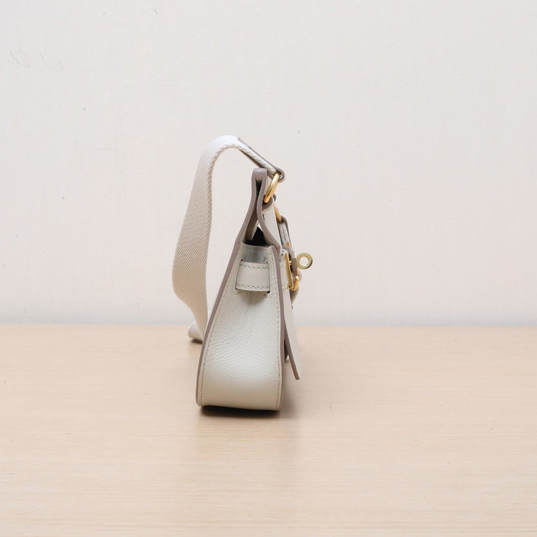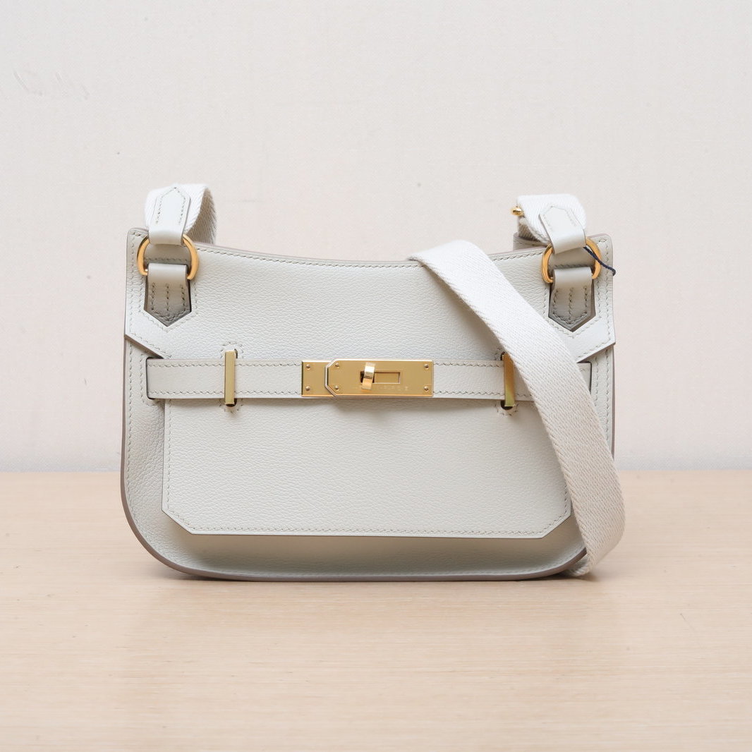 The Hermès Jypsière Mini leather handbag is a distinctive and adventurous flap-shoulder bag crafted from structured Evercolor cowhide featuring signature hunting-inspired turn clasp, straps, and polished wedge accents, complete with lustrous gold-tone hardware, exceptional French savoir-faire, and bold Hermès exploration in crisp Glaciere white / Beton 8L shade. Feel free to click below for more consultation.