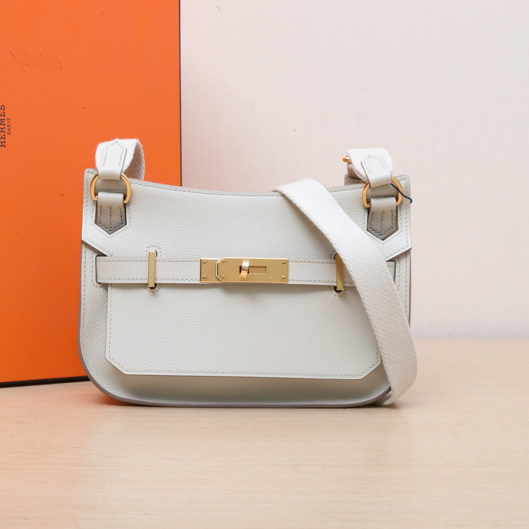 HERMES Jypsiere Mini 23cm in 8L Glacier White Evercolor Leather