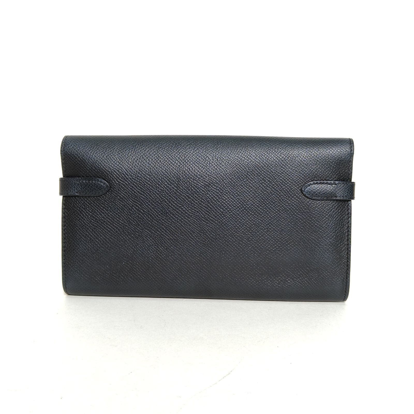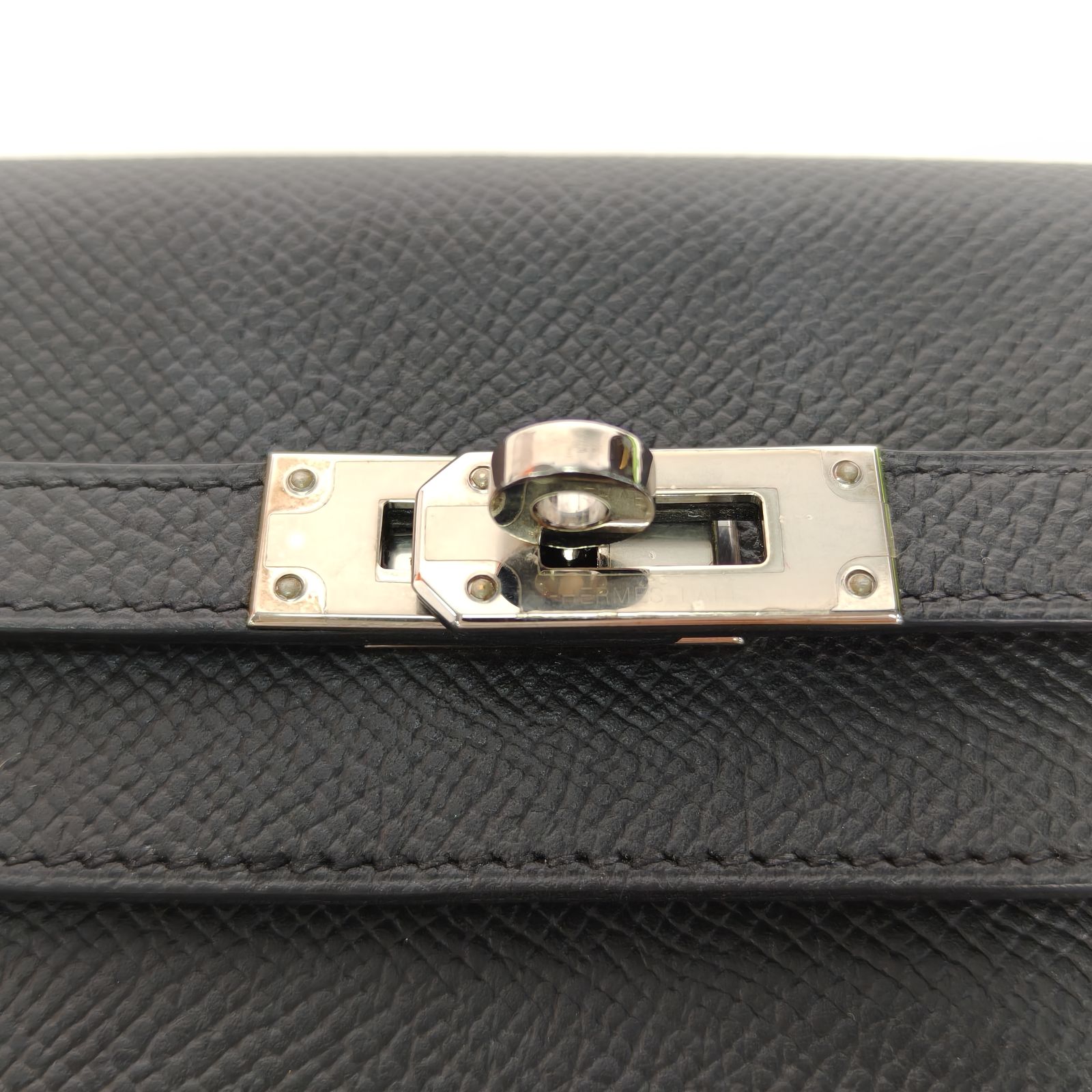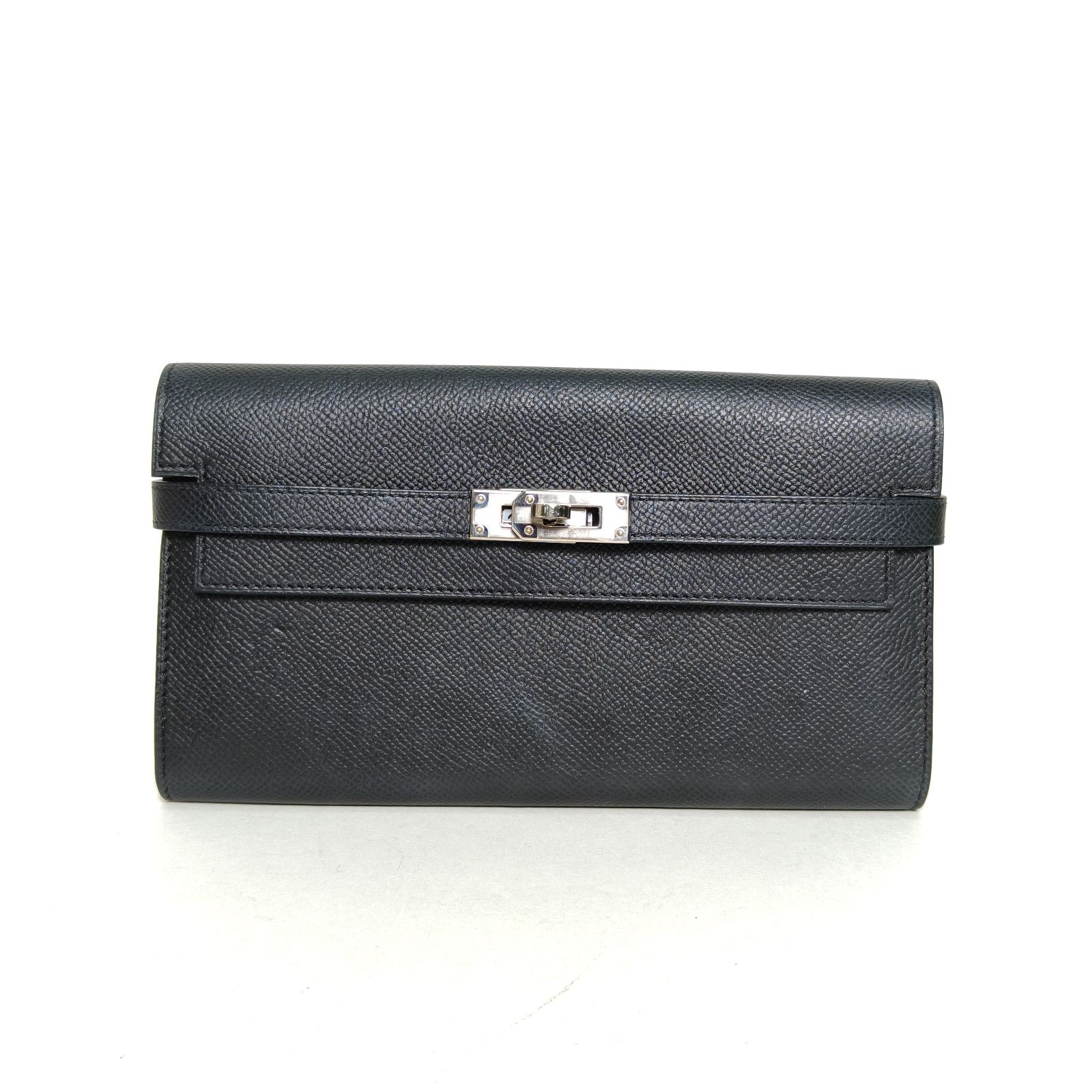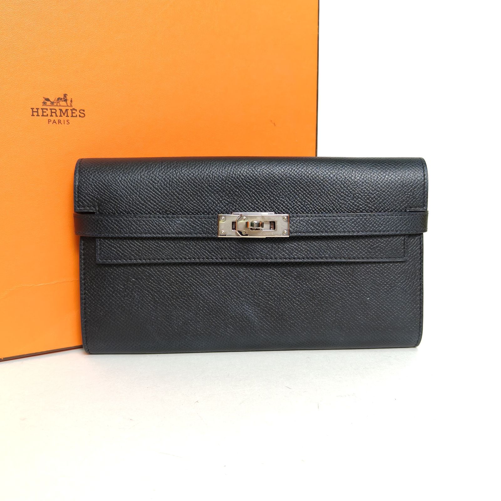 Made from black Epsom leather with iconic Kelly turn-lock, this long wallet features a sleek silhouette and multiple compartments, embodying understated Hermes luxury.