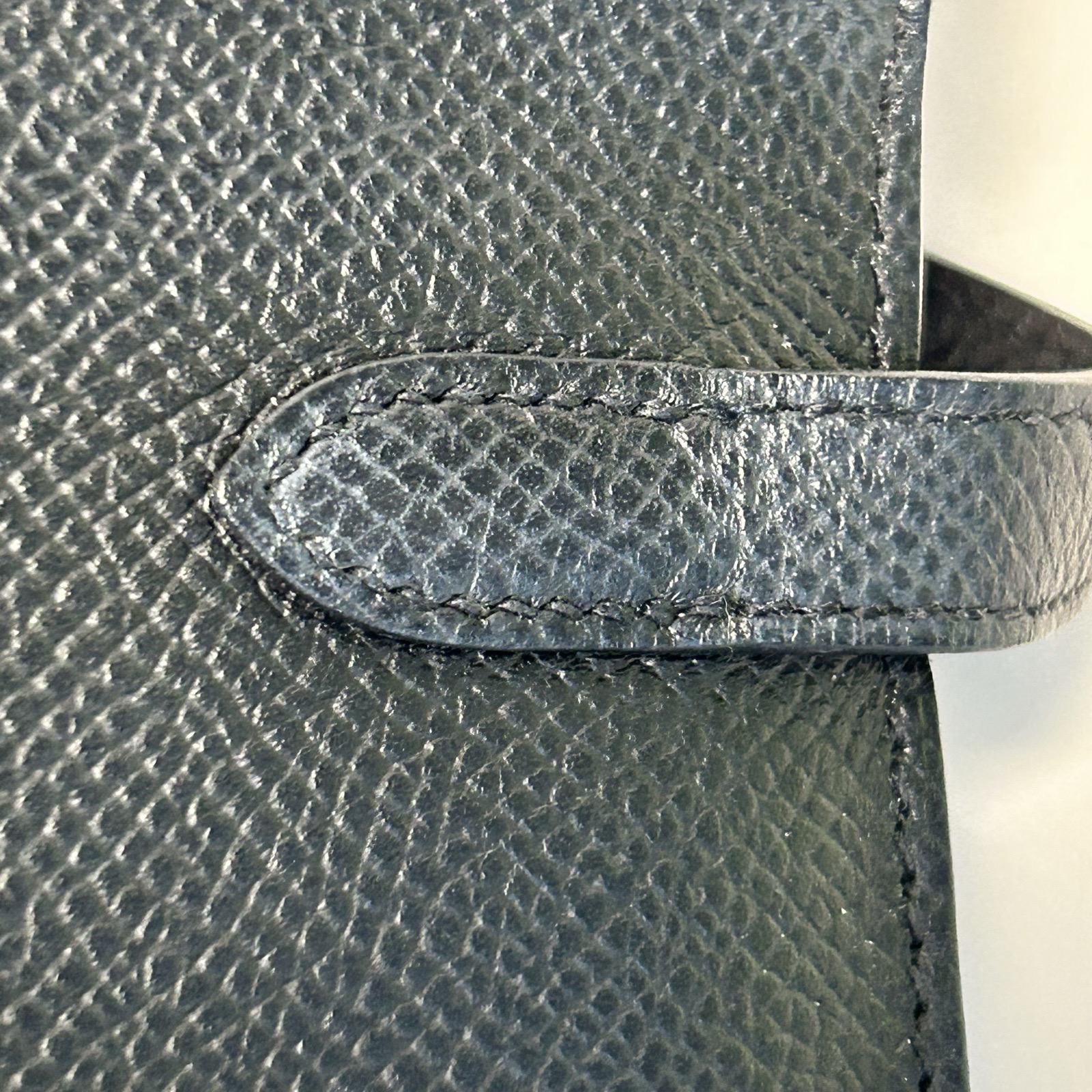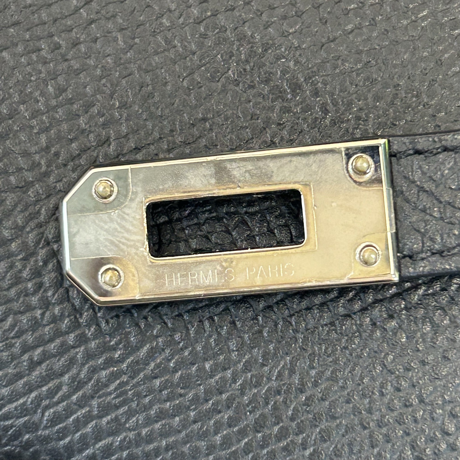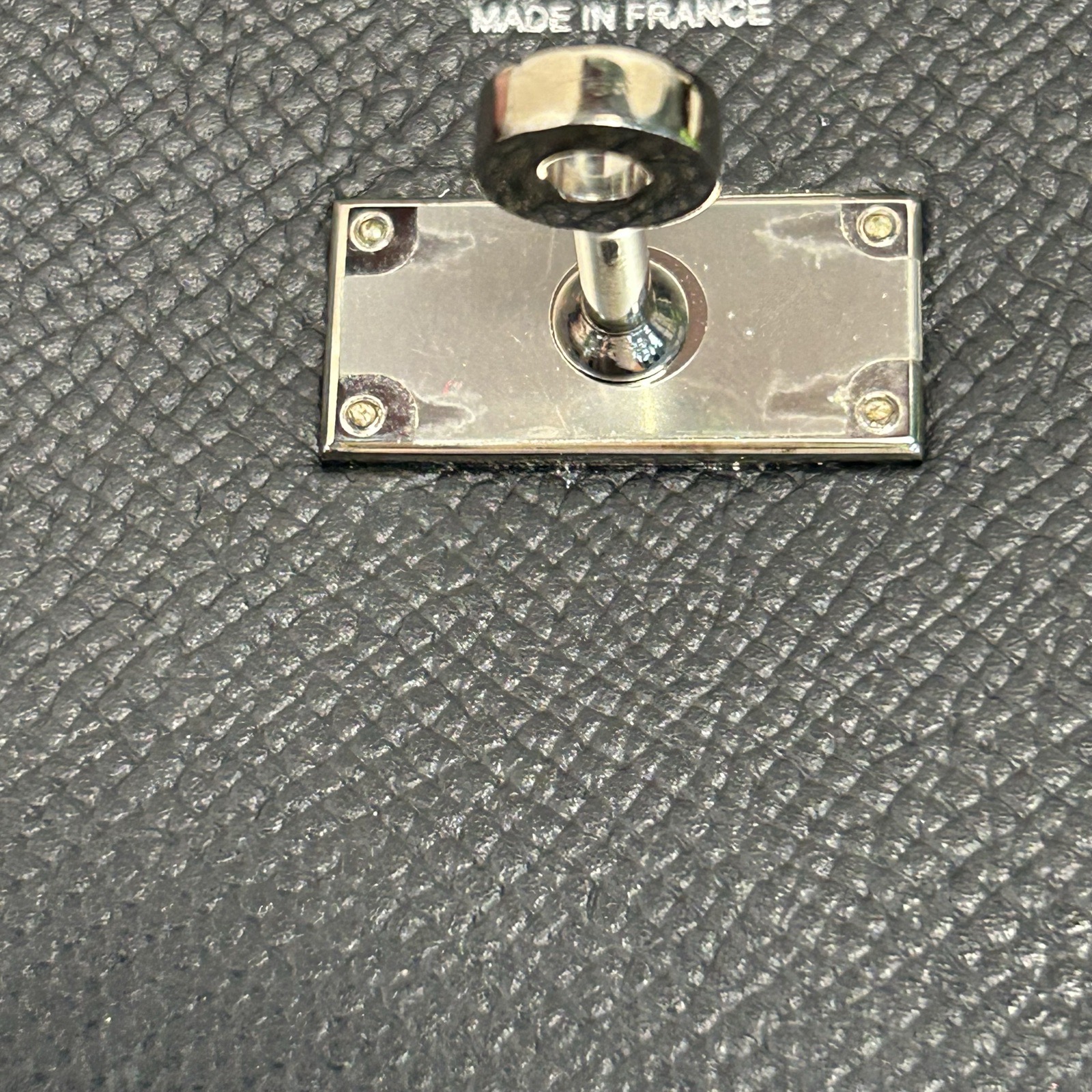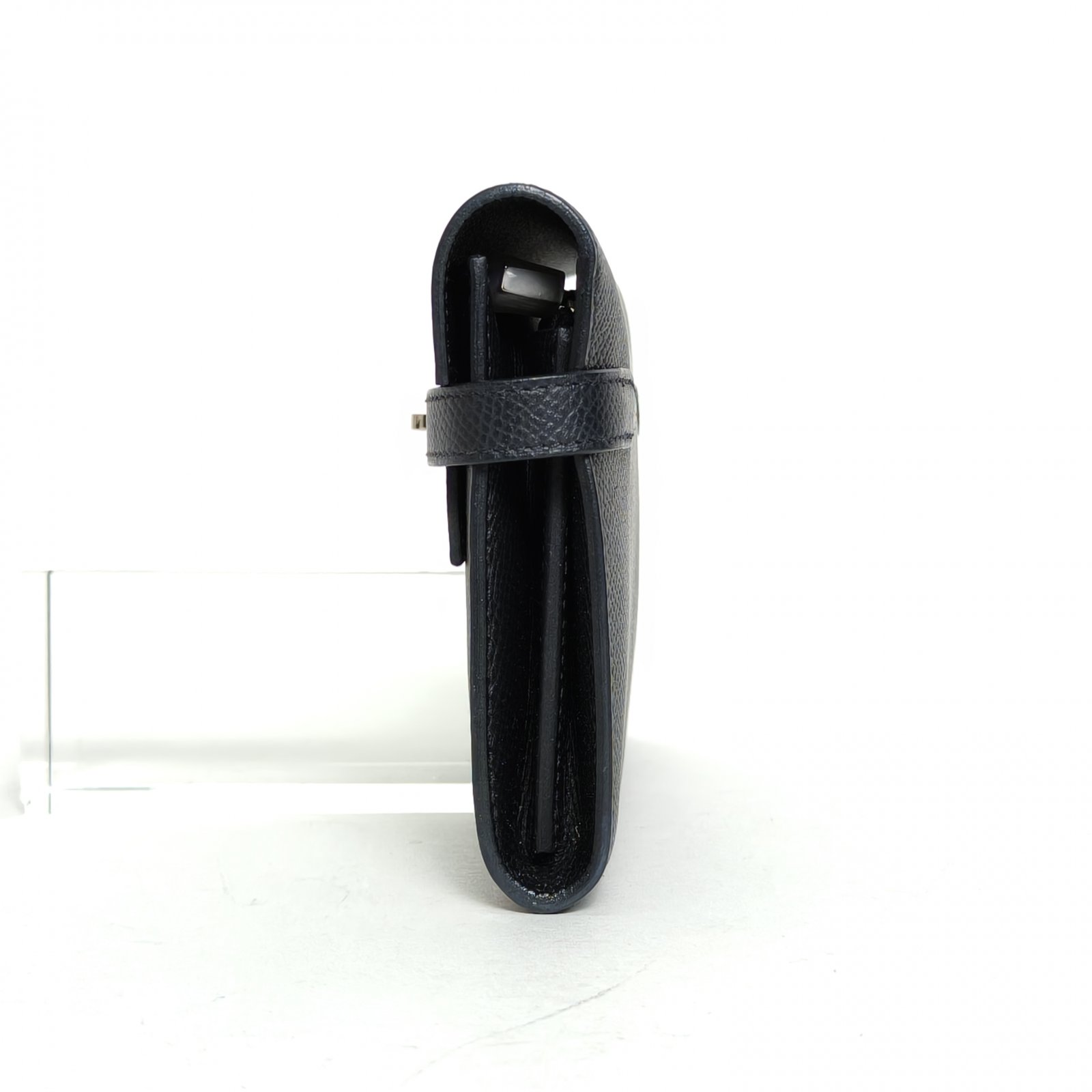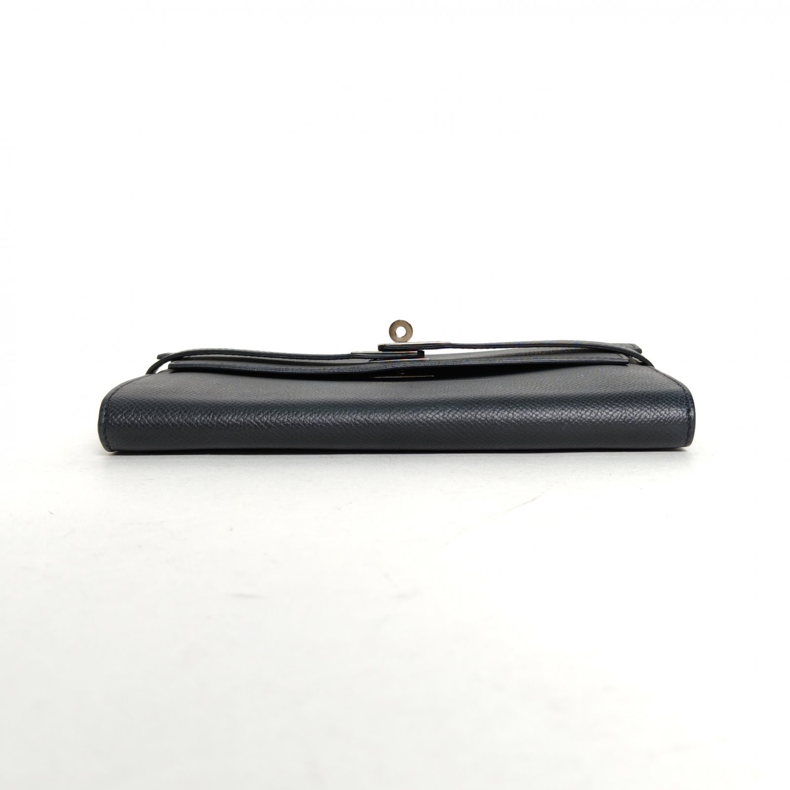 Made from black Epsom leather with iconic Kelly turn-lock, this long wallet features a sleek silhouette and multiple compartments, embodying understated Hermes luxury.