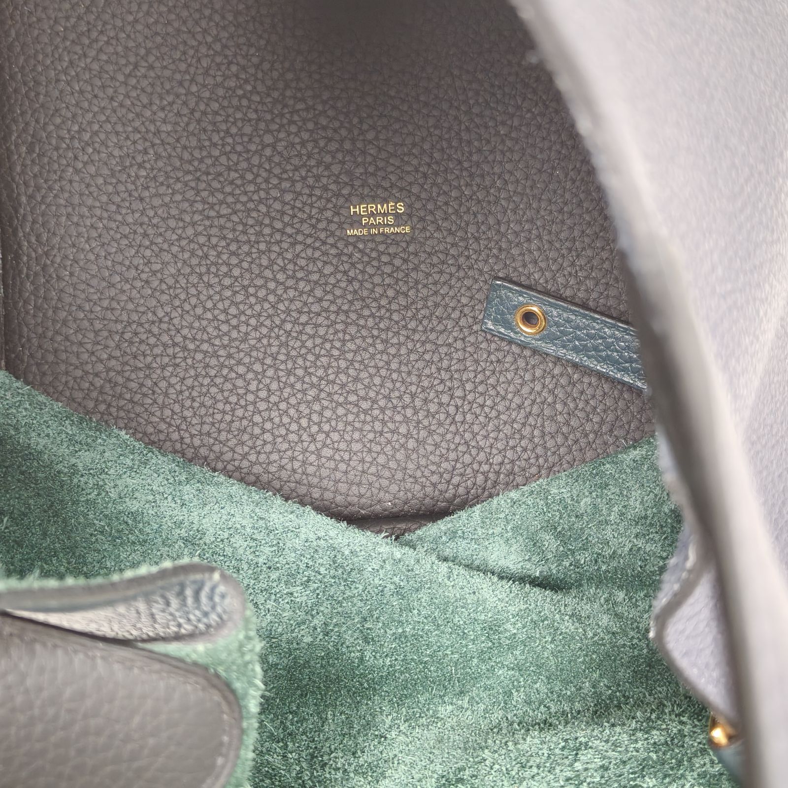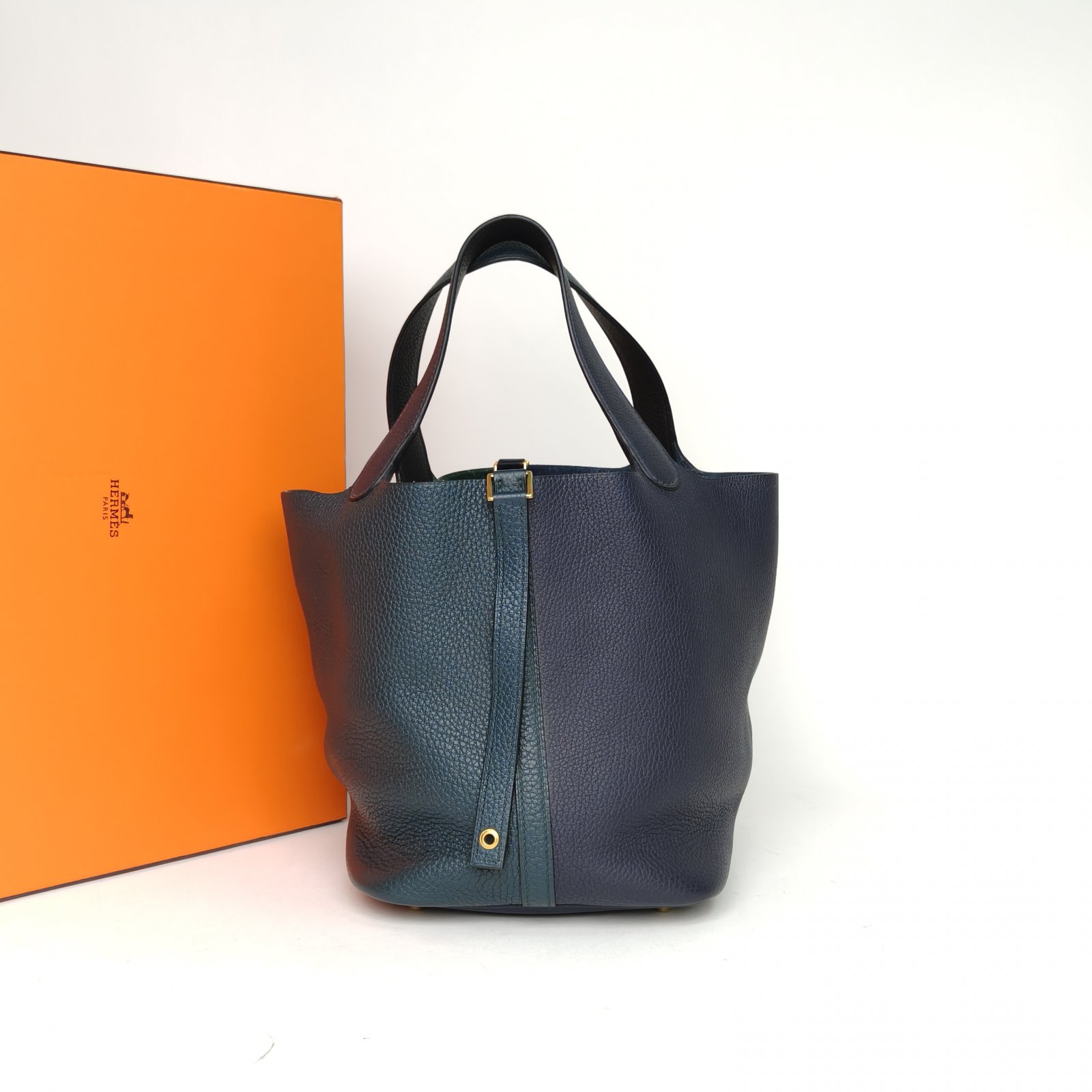 HERMES Picotin 22cm in Black & Midnight Blue Tourillon Clemence Leather
