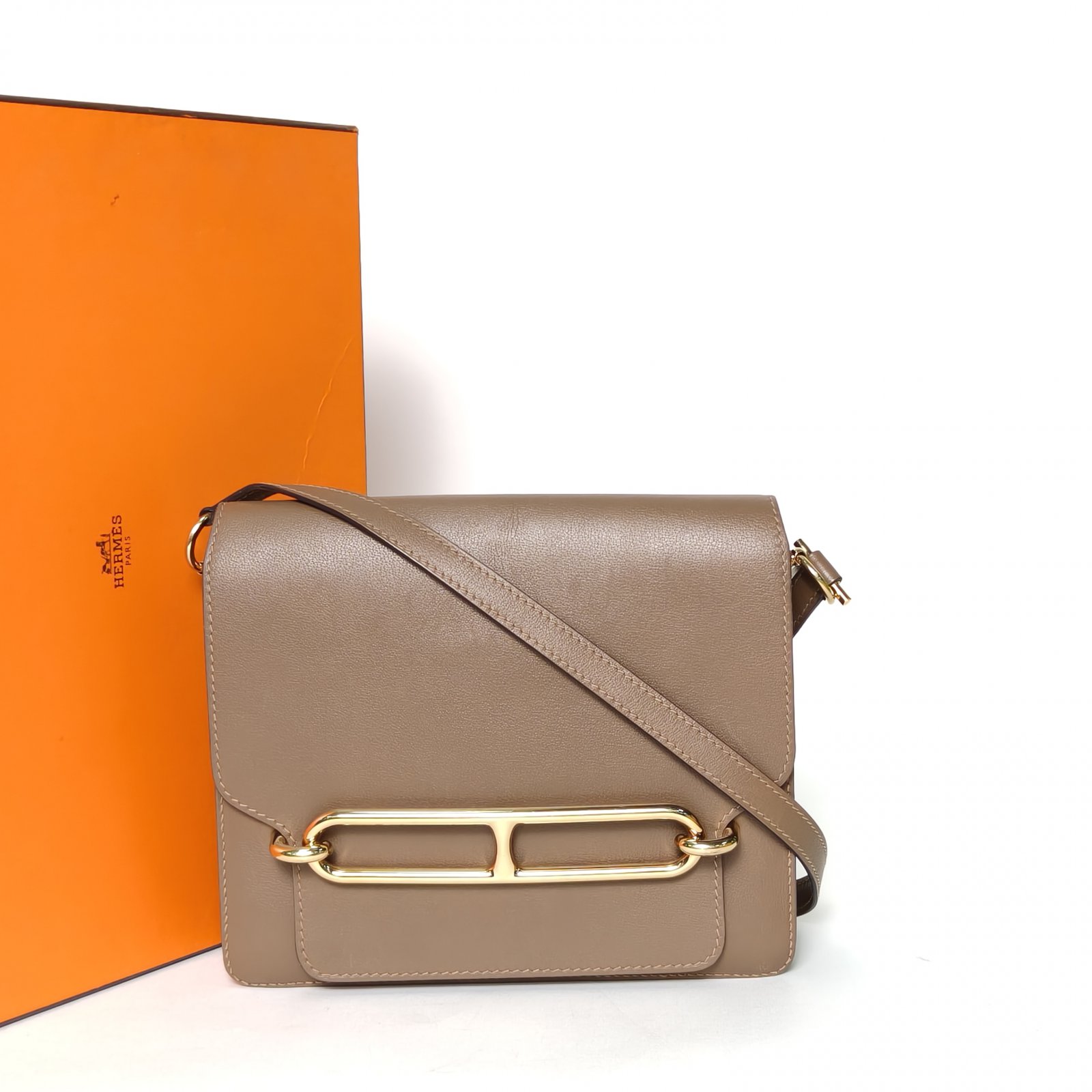Crafted from premium Evercolor leather with signature H clasp, this Roulis 23 bag is a timeless daily luxury piece.