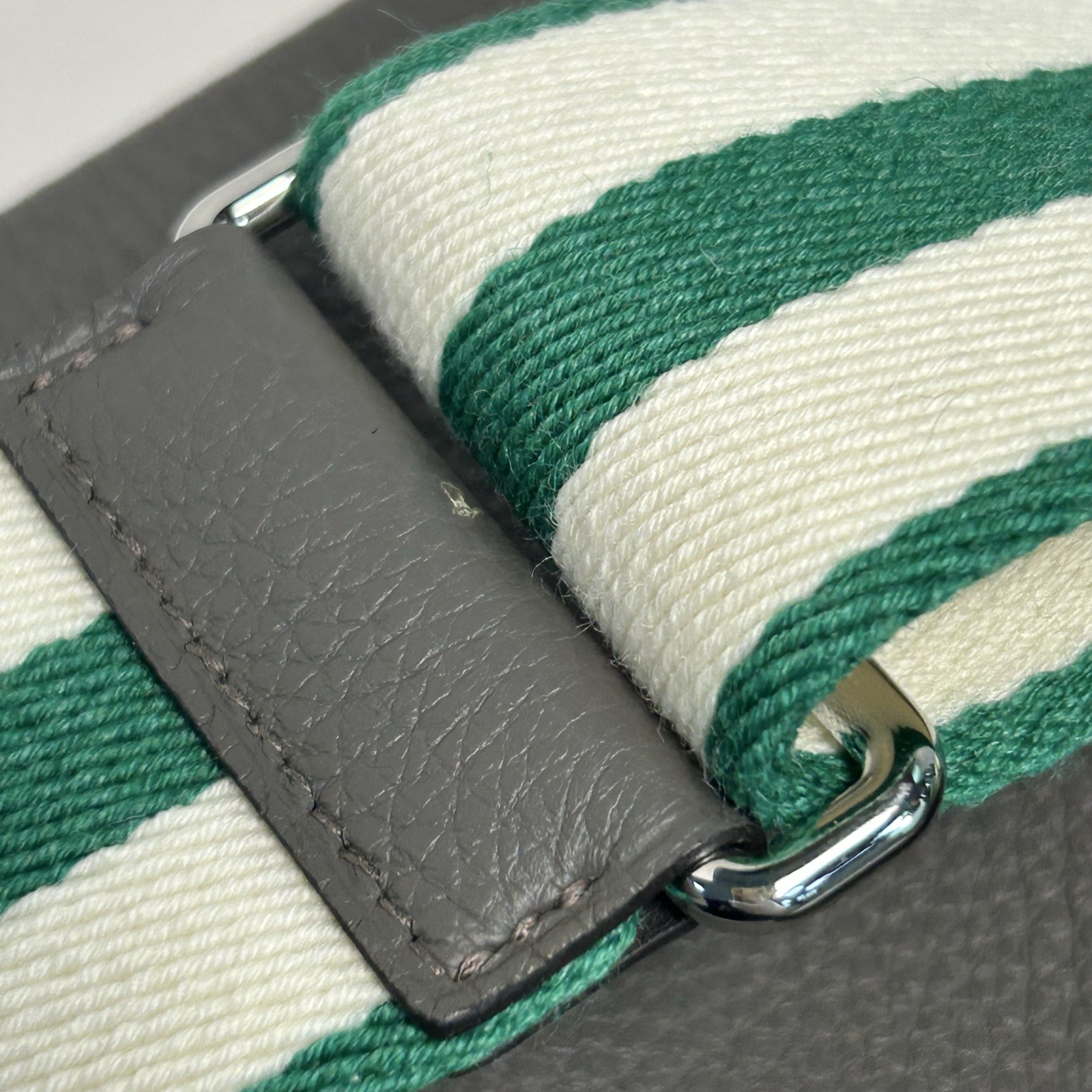 The Hermès Videpoches 27 is a relaxed, spacious accessory crafted from textured Gris Etain Togo leather with a striped canvas strap. Its slouchy silhouette embodies the brand’s effortless luxury and casual elegance, offering versatile functionality for everyday use. A perfect blend of practicality and style, it exudes understated opulence that defines Hermès’ legendary heritage.