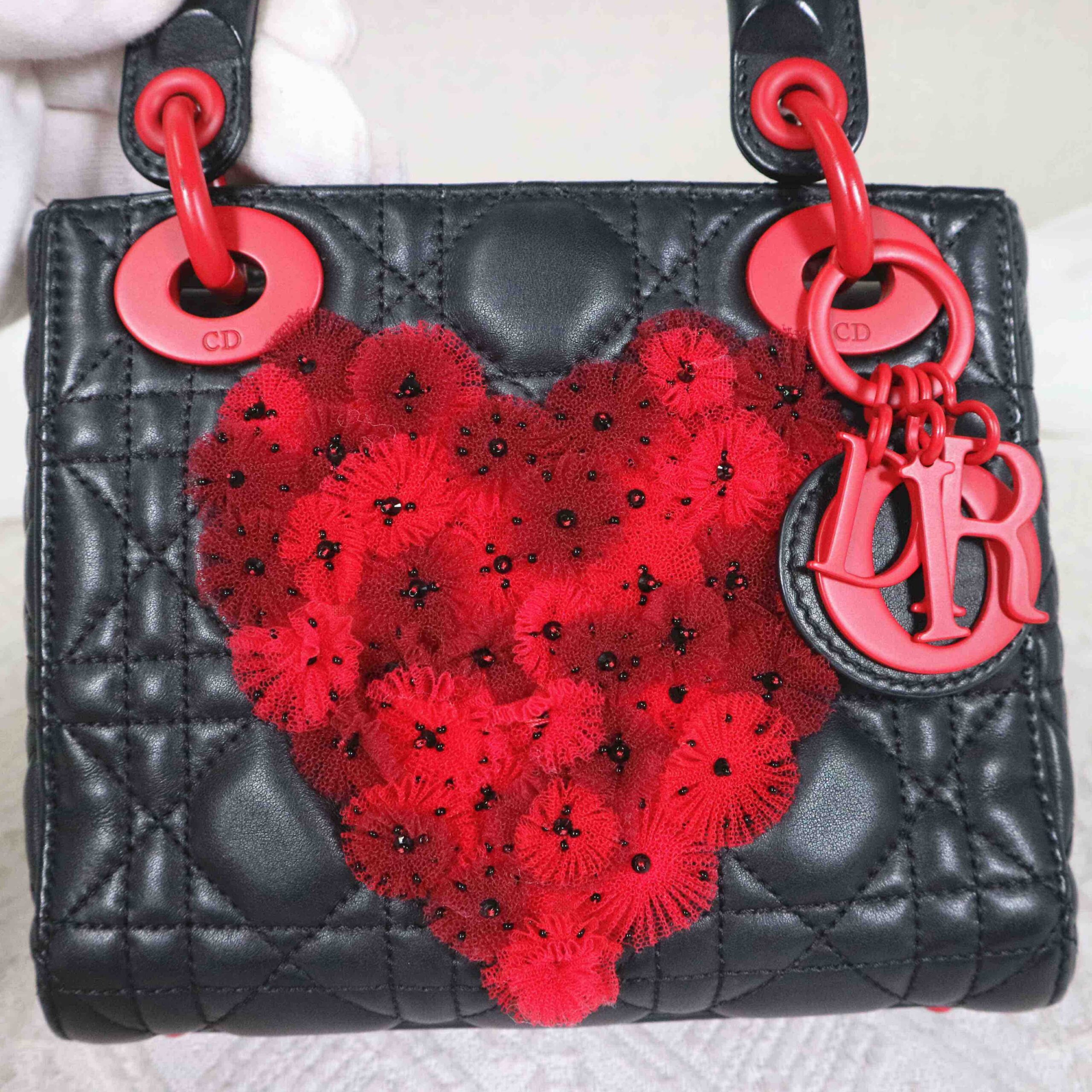 Lady Dior Mini Tulle Ruffle Heart leather handbag