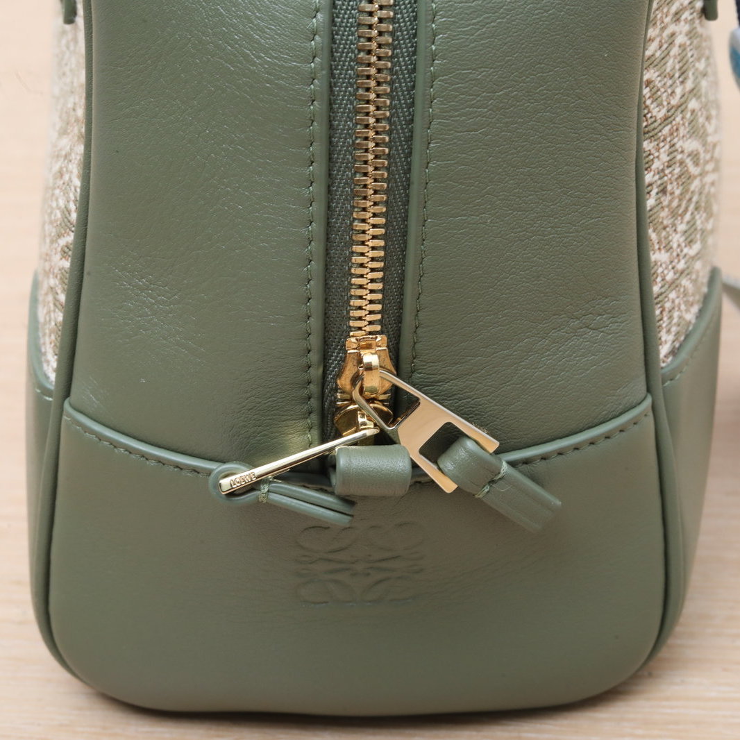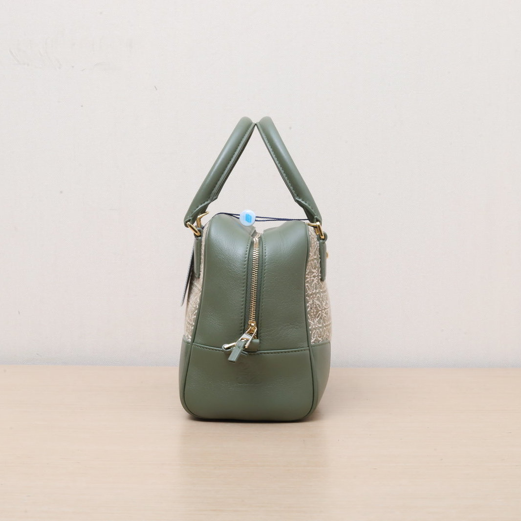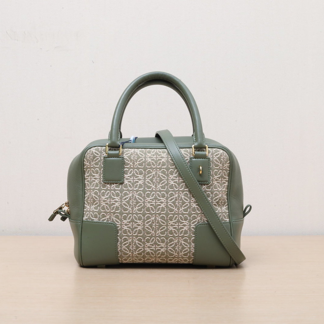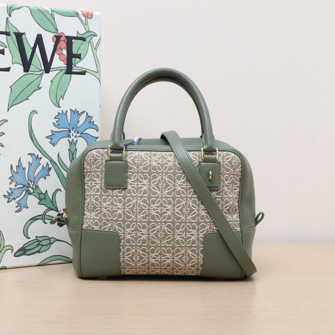 LOEWE Amazona 23 Bag in Green Leather and Canvas