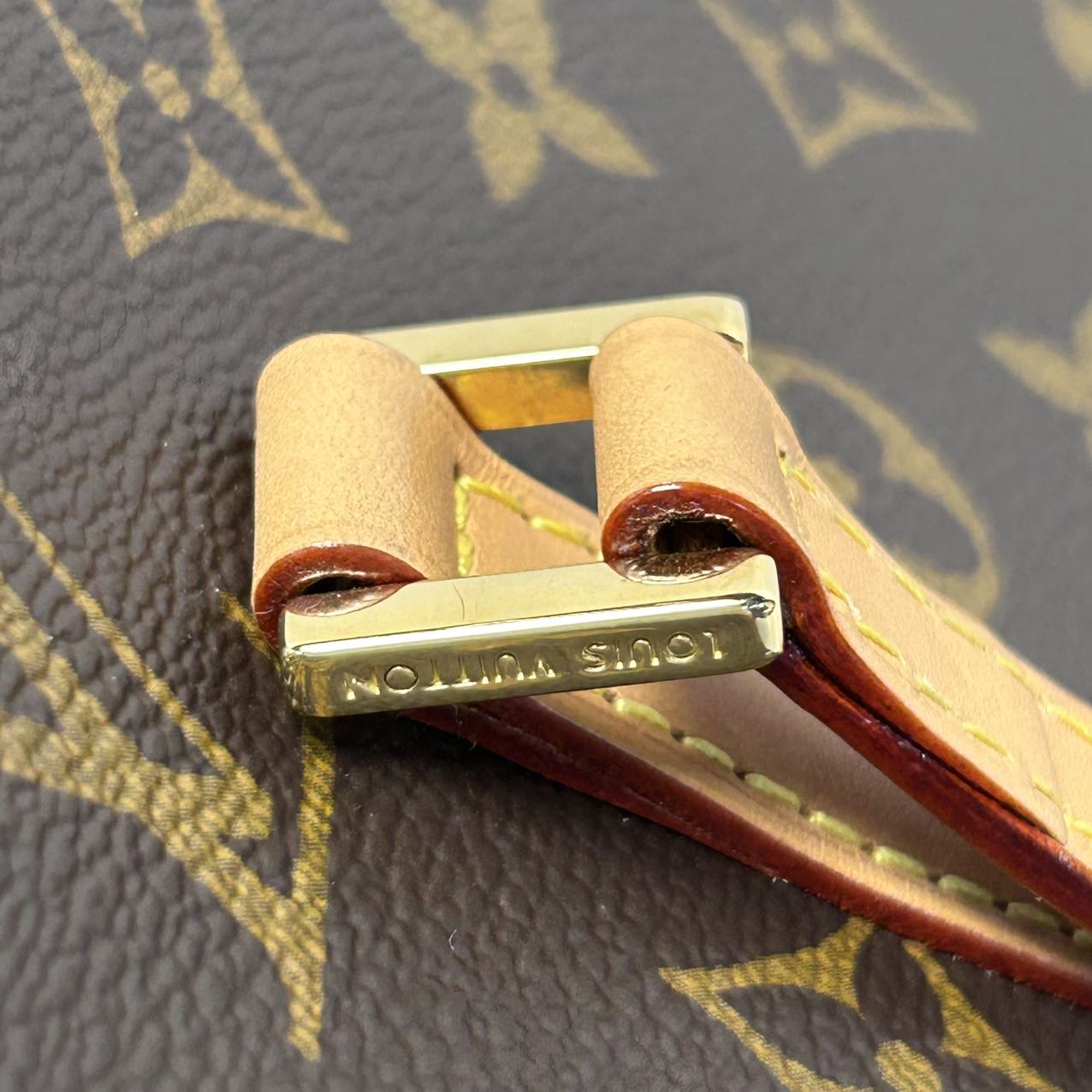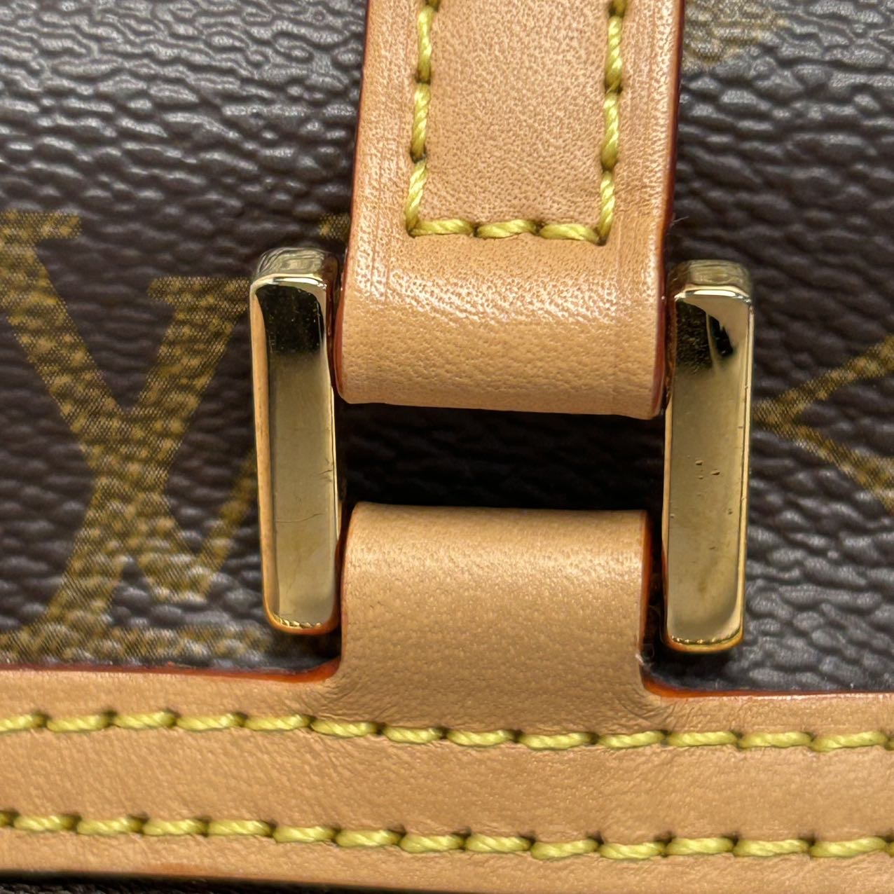 Crafted from monogram PVC with leather trim, this CITÉ rectangular handbag features gold buckle and chip, a vintage LV classic for everyday carry.