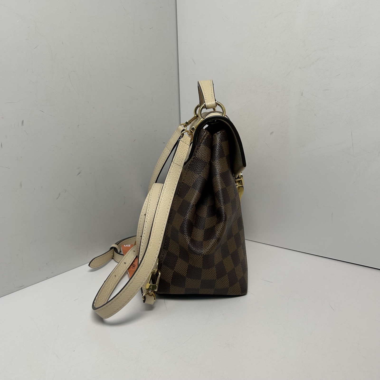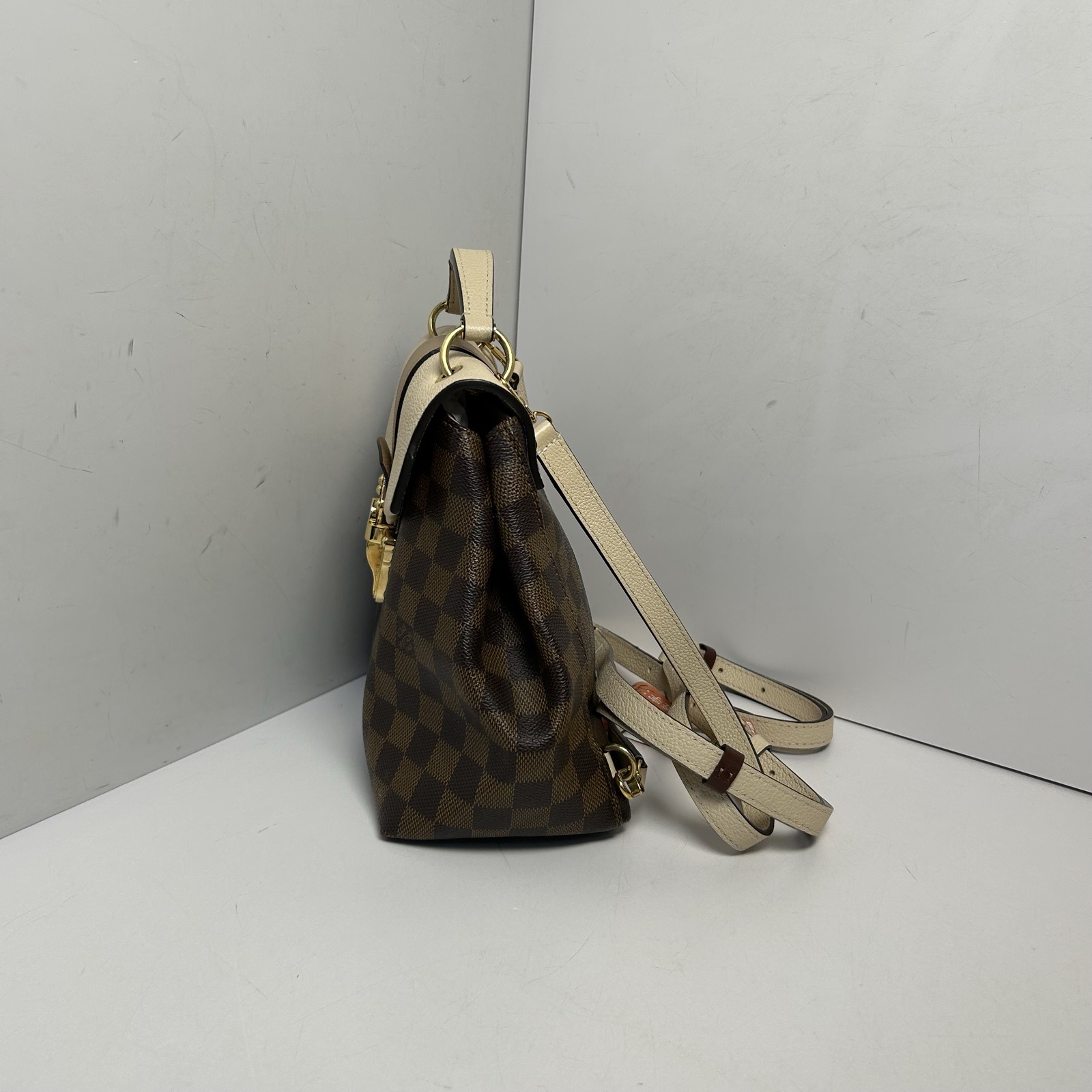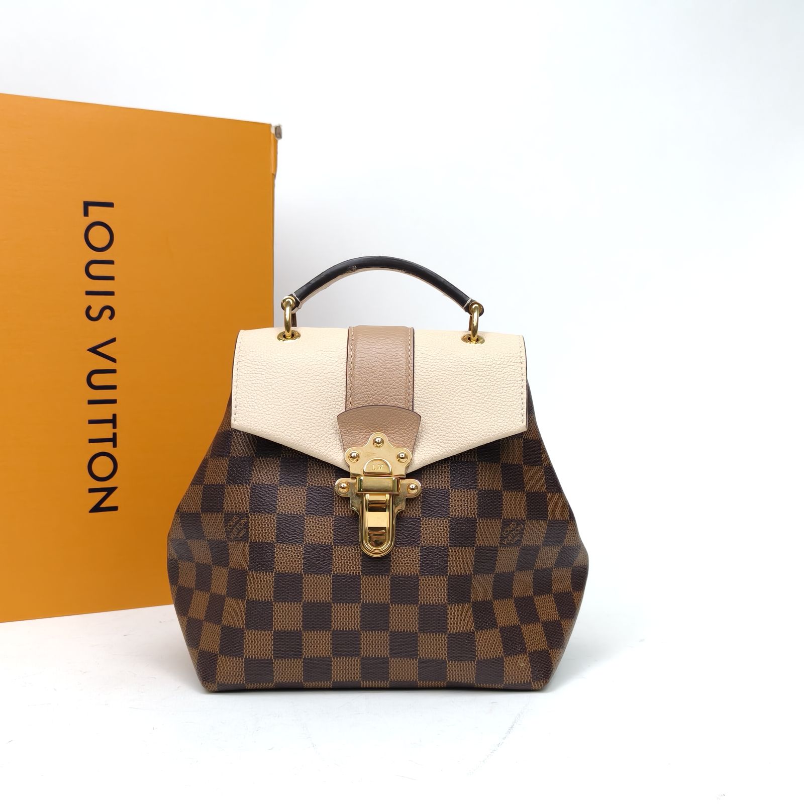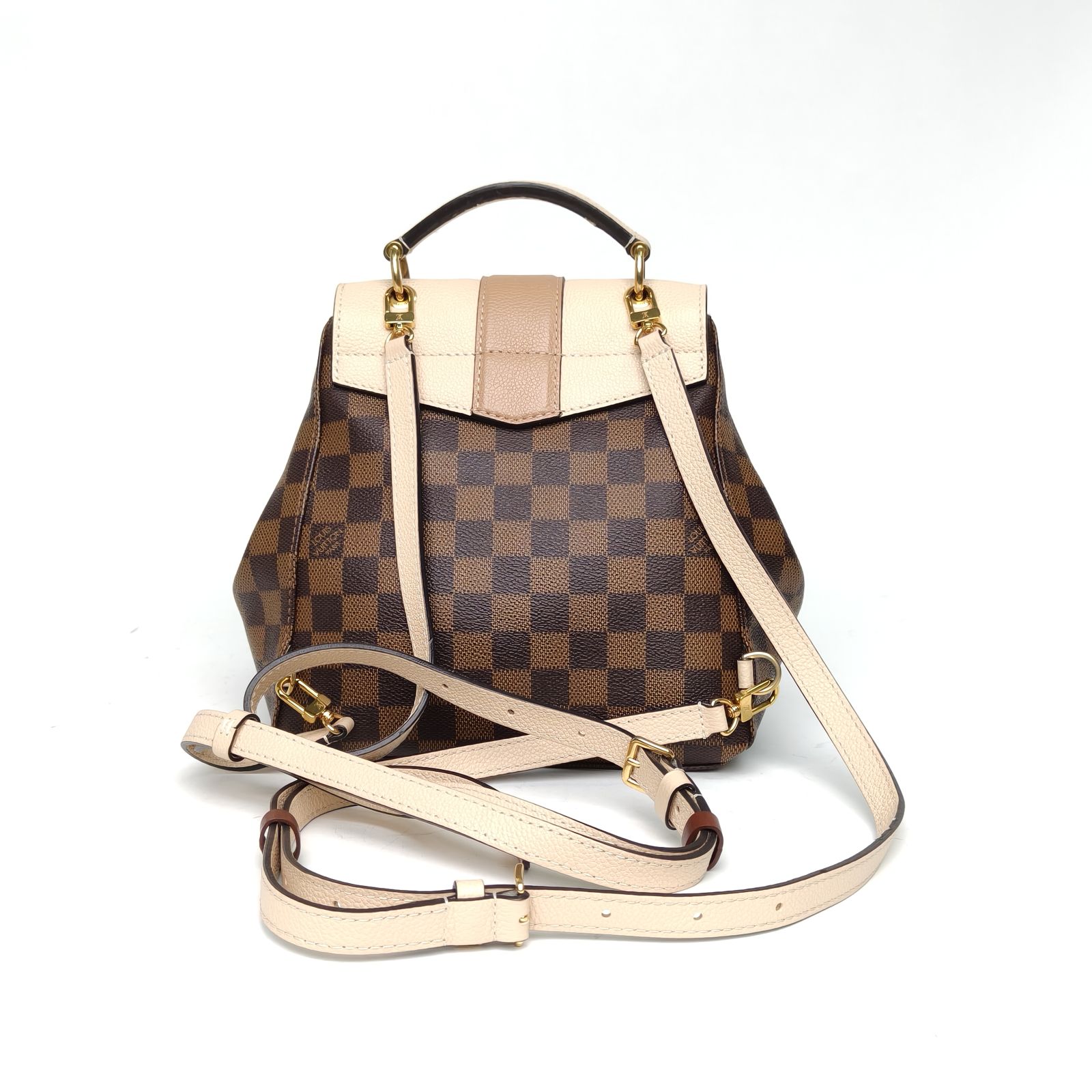 Embodying A structured and sophisticated luxury backpack, the LV Clapton is crafted from iconic Damier Ebene coated canvas with cream leather trim and polished gold hardware. The drawstring closure and adjustable straps make it a perfect accessory for casual and everyday use.