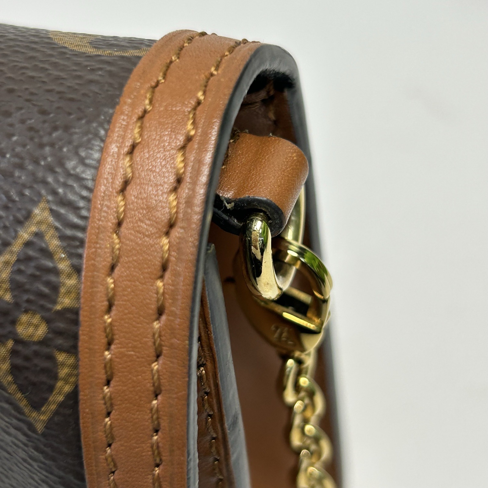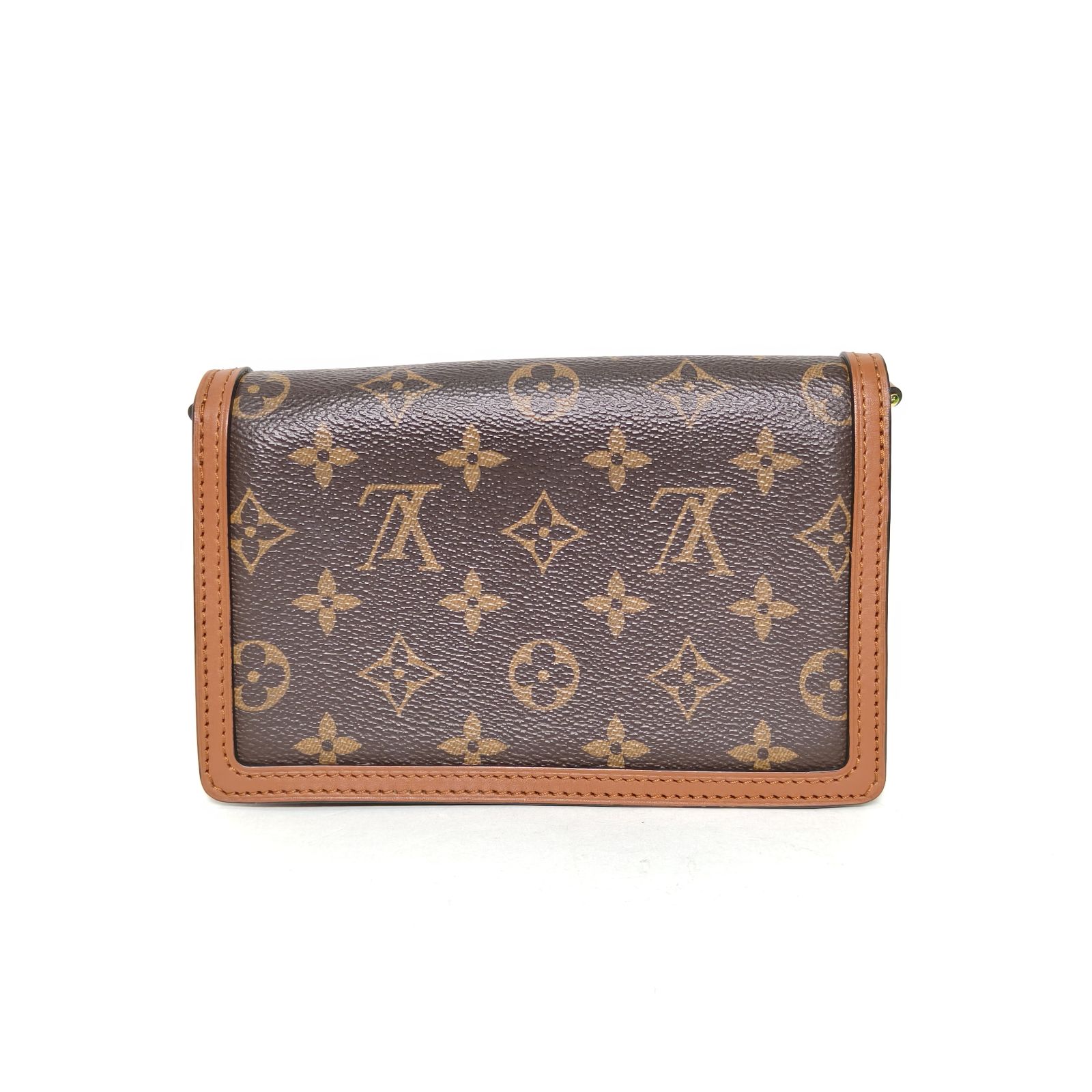 Embodying an elegant and structured luxury wallet on chain, the Louis Vuitton Dauphine WOC is crafted from two-tone leather and PVC with polished hardware. The compact silhouette and detachable shoulder strap make it a versatile accessory for everyday use.