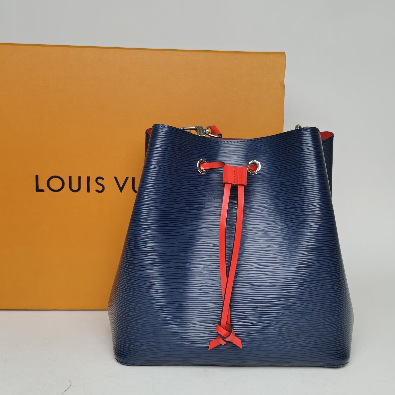 Crafted from multicolor EPI water ripple leather, this NÉONOÉ medium bucket bag features a drawstring closure and detachable strap, perfect for daily use.