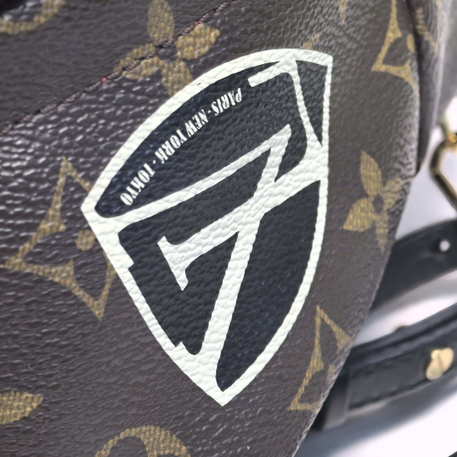 Crafted from monogram PVC with World Tour print, this Palm Springs mini backpack features adjustable straps and a compact shape, blending playful design with everyday functionality.