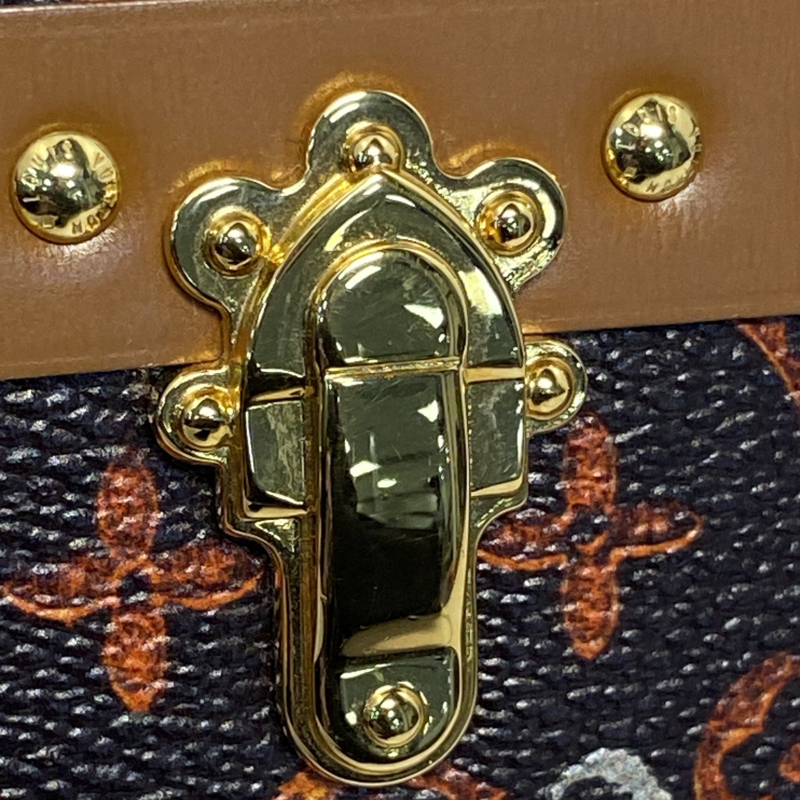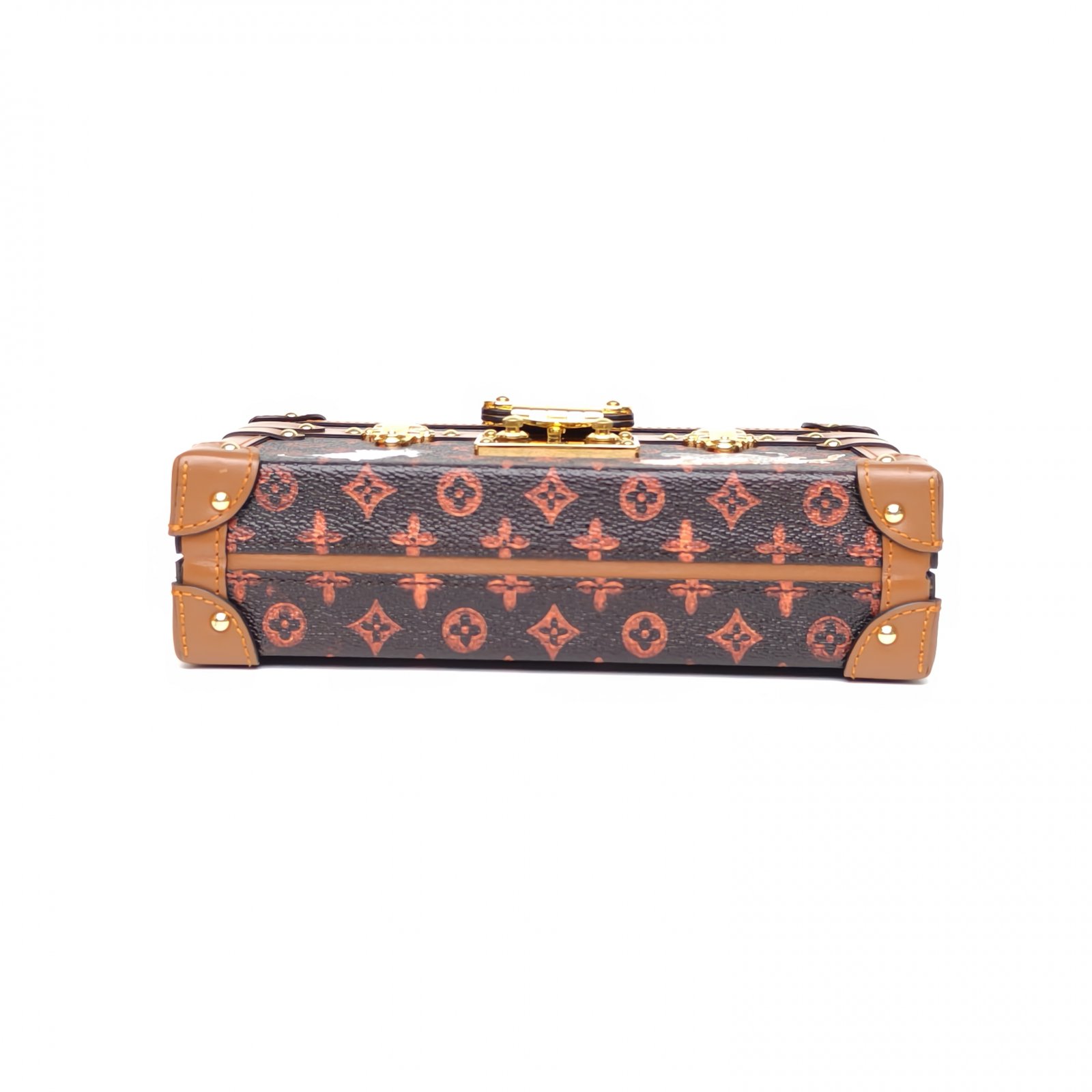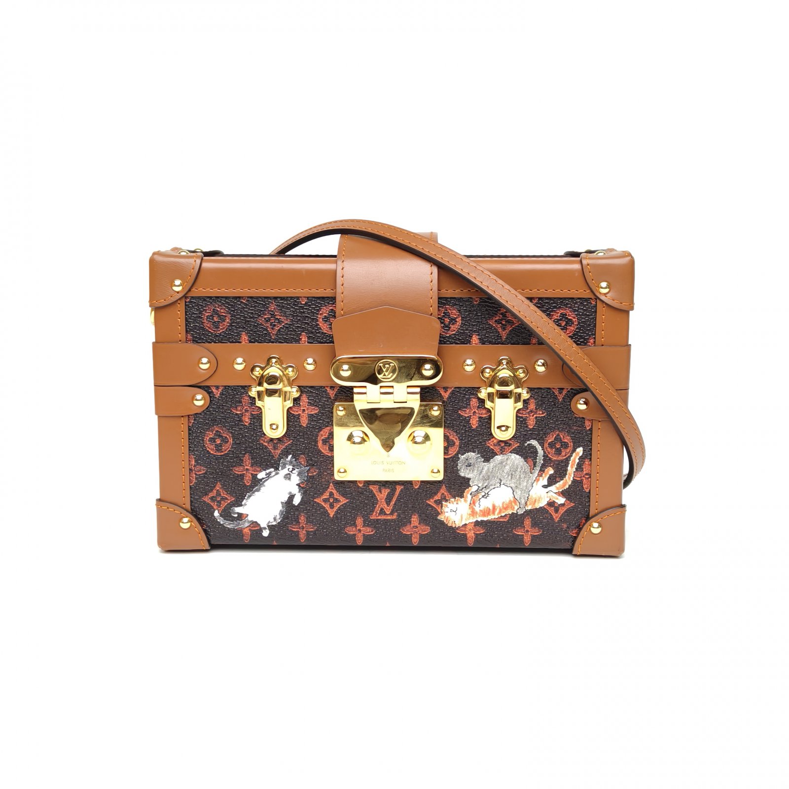 Embodying A rare and collectible luxury accessory, the LV Petite Malle 20 is crafted from iconic monogram canvas with tan leather trim and polished gold hardware. The compact trunk silhouette and detachable shoulder strap make it a coveted piece of fashion history.
