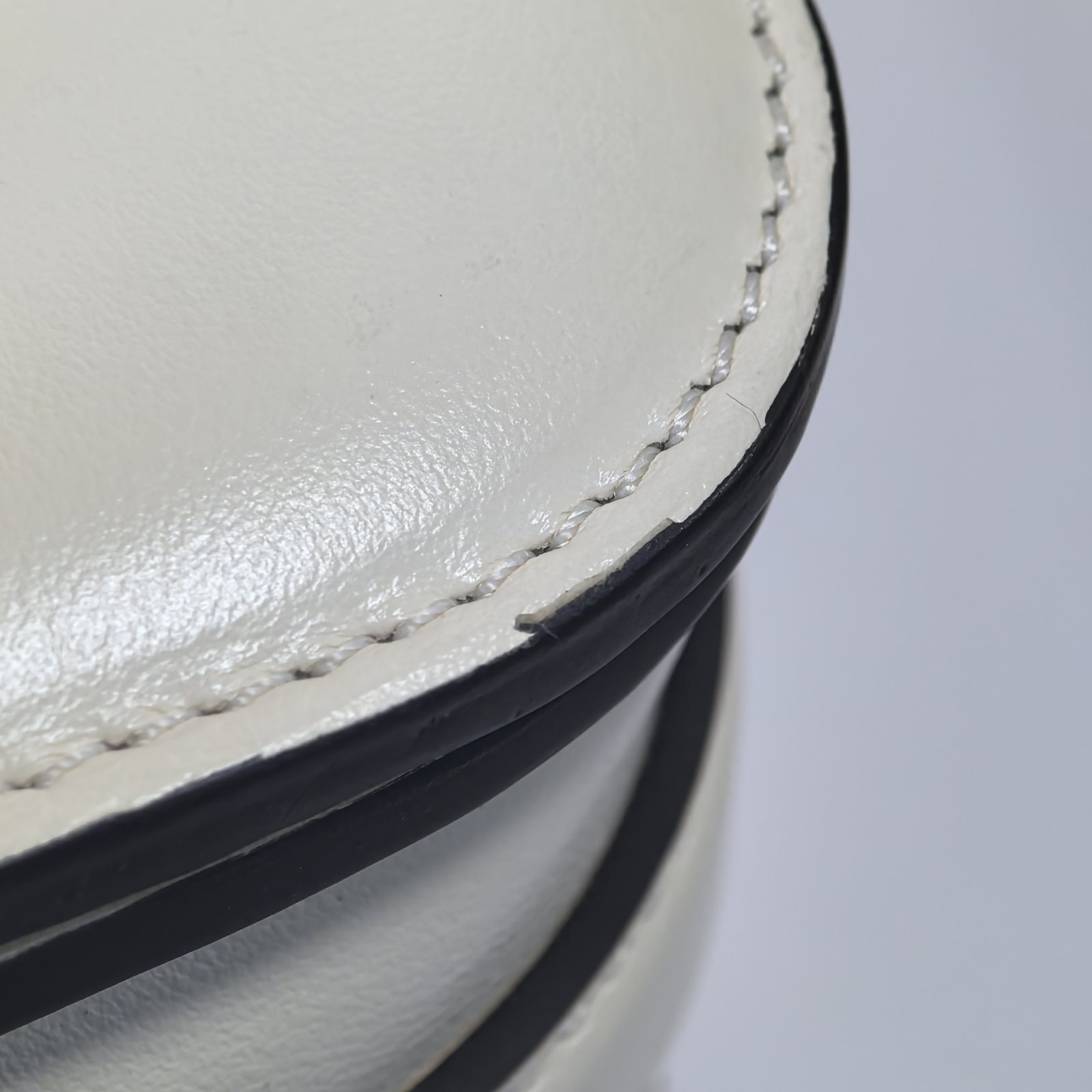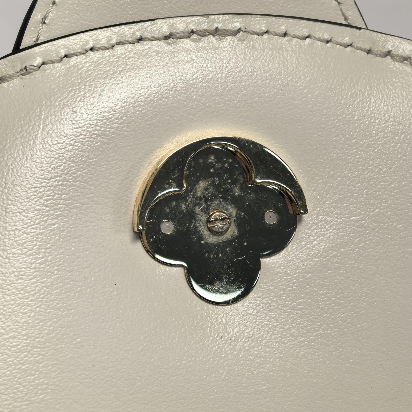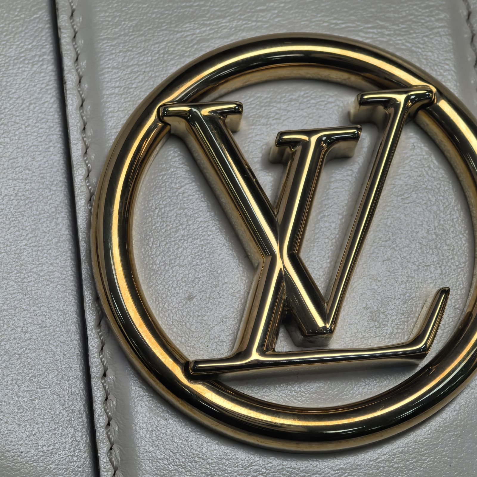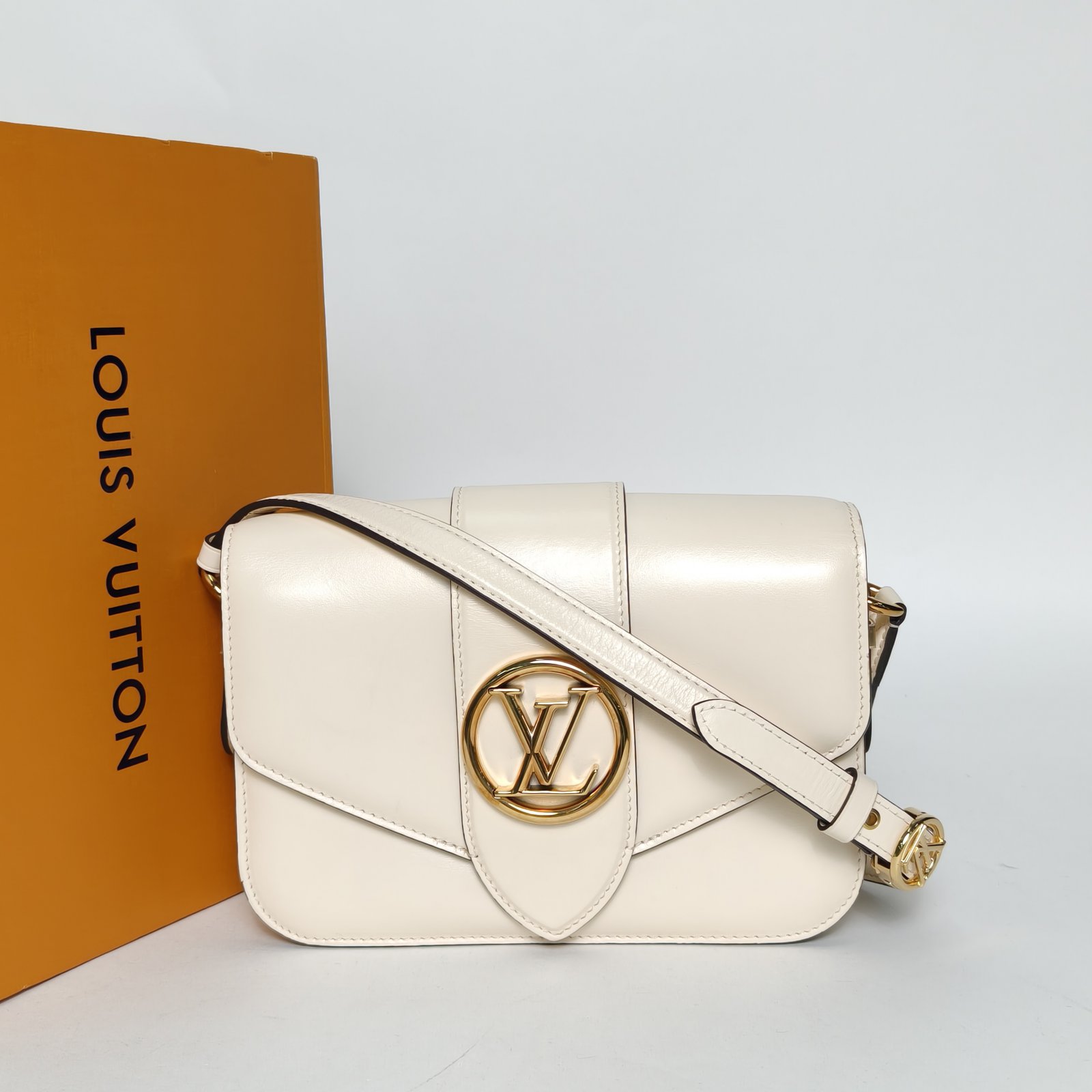 Embodying a minimalist and elegant luxury shoulder bag, the LV Pont 9 is crafted from off-white leather with circular LV logo and adjustable shoulder strap.
