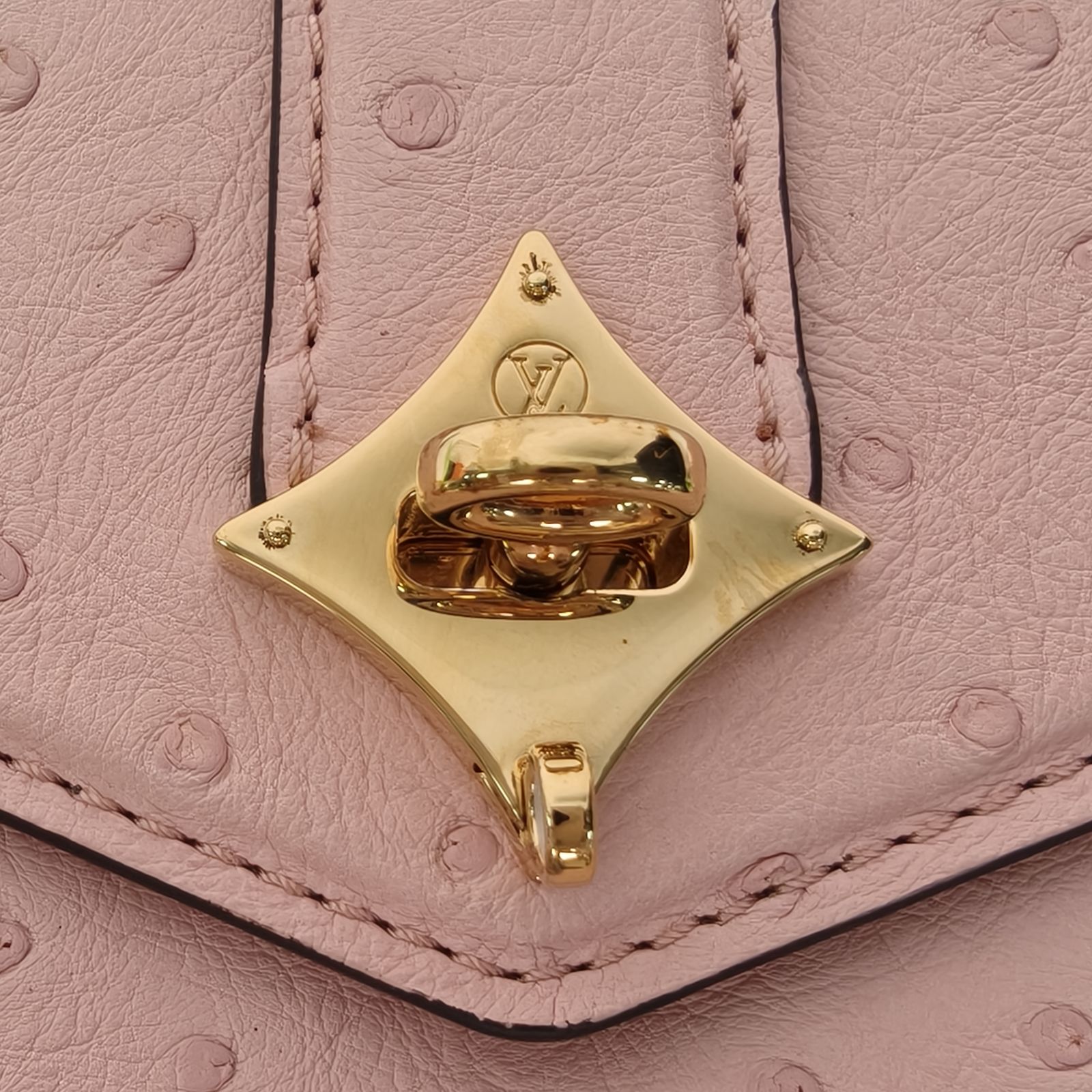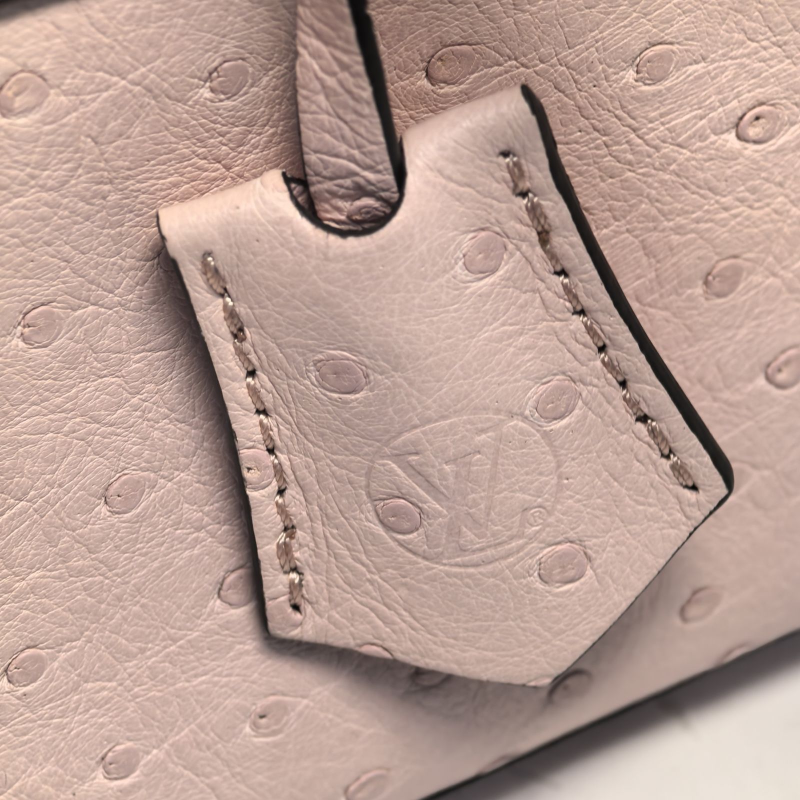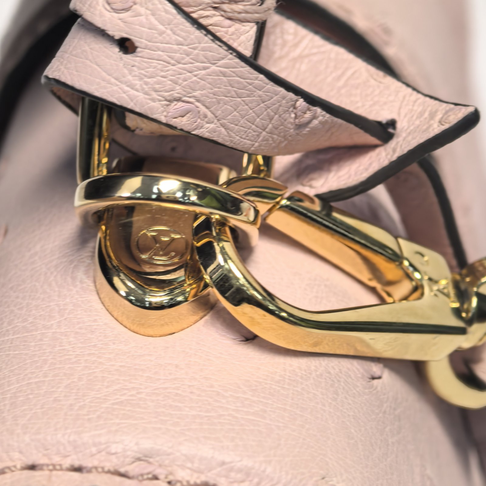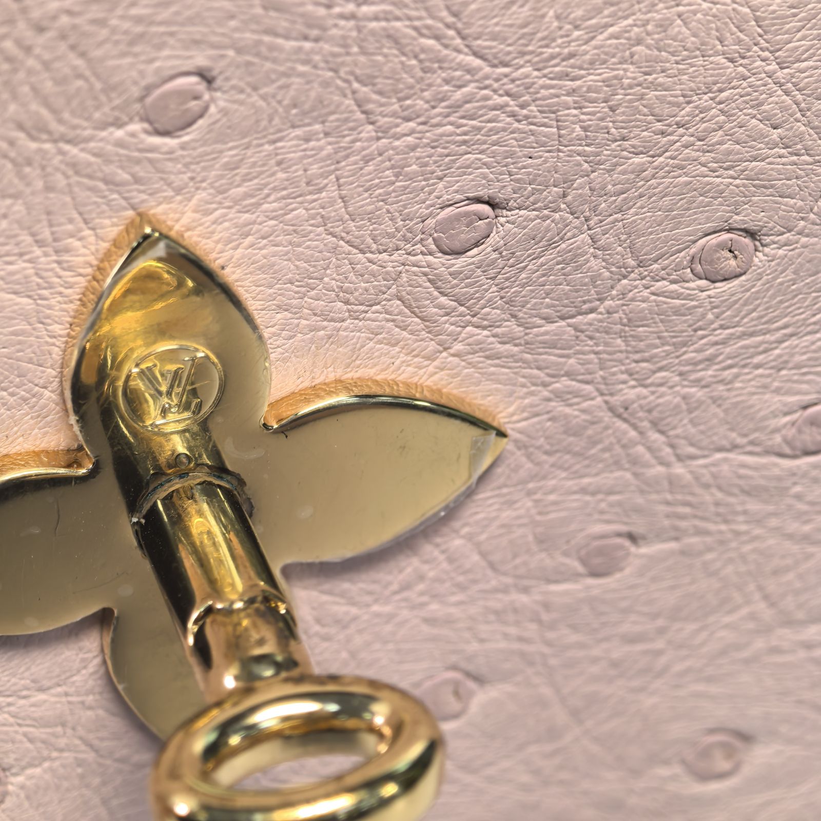 Embodying a luxurious and delicate luxury handbag, the LV Rose Des Vents Mini is crafted from pink ostrich leather with gold-tone lock and top handle.