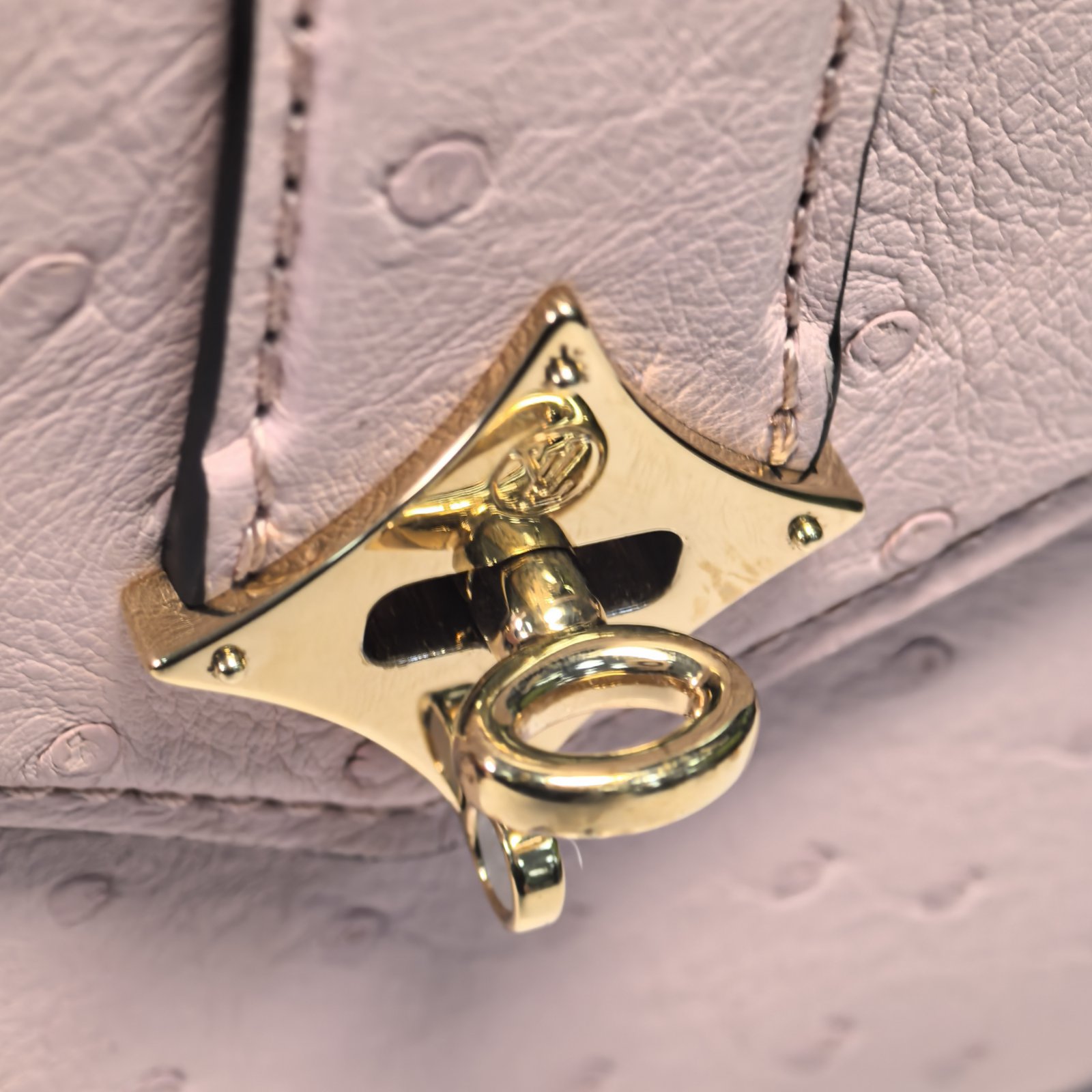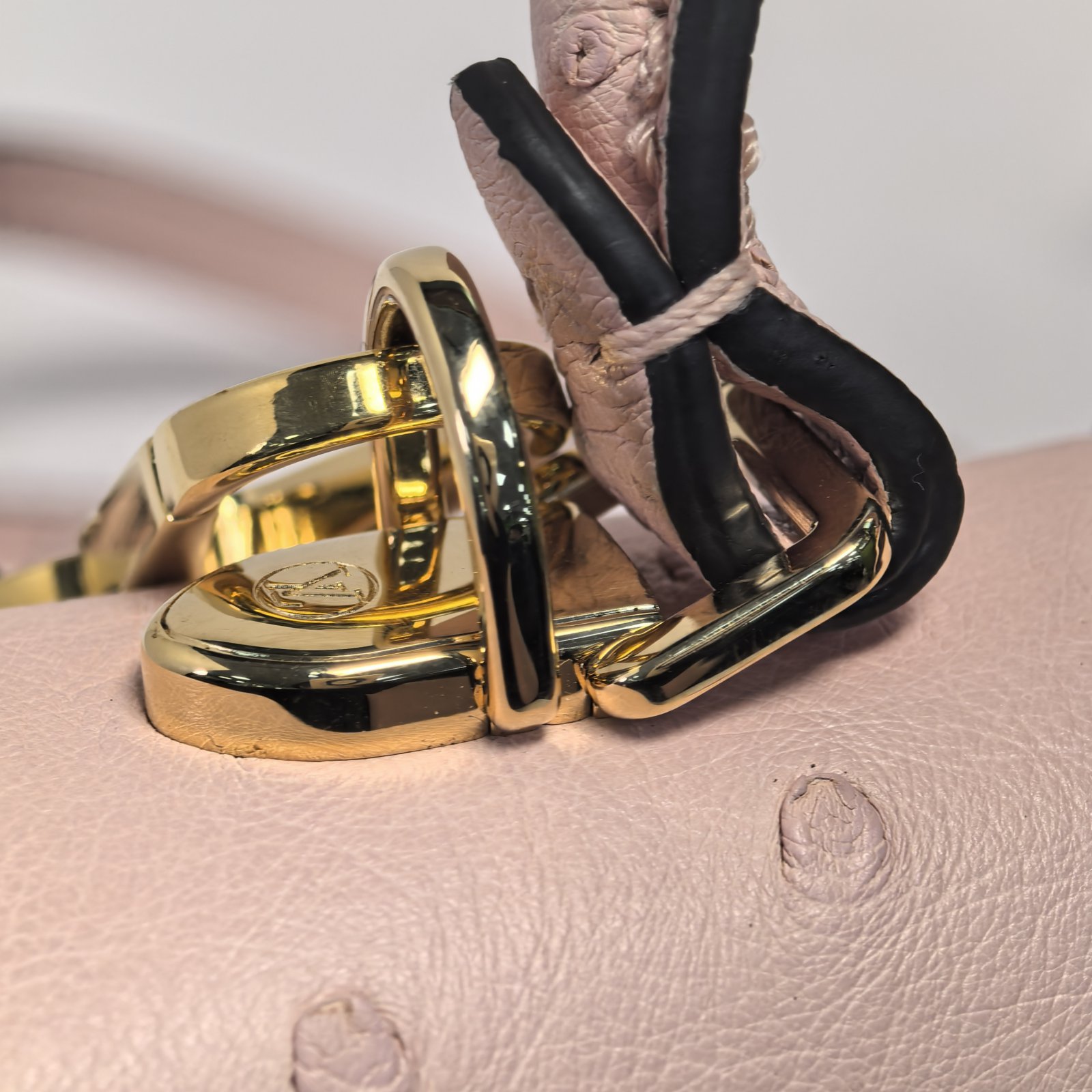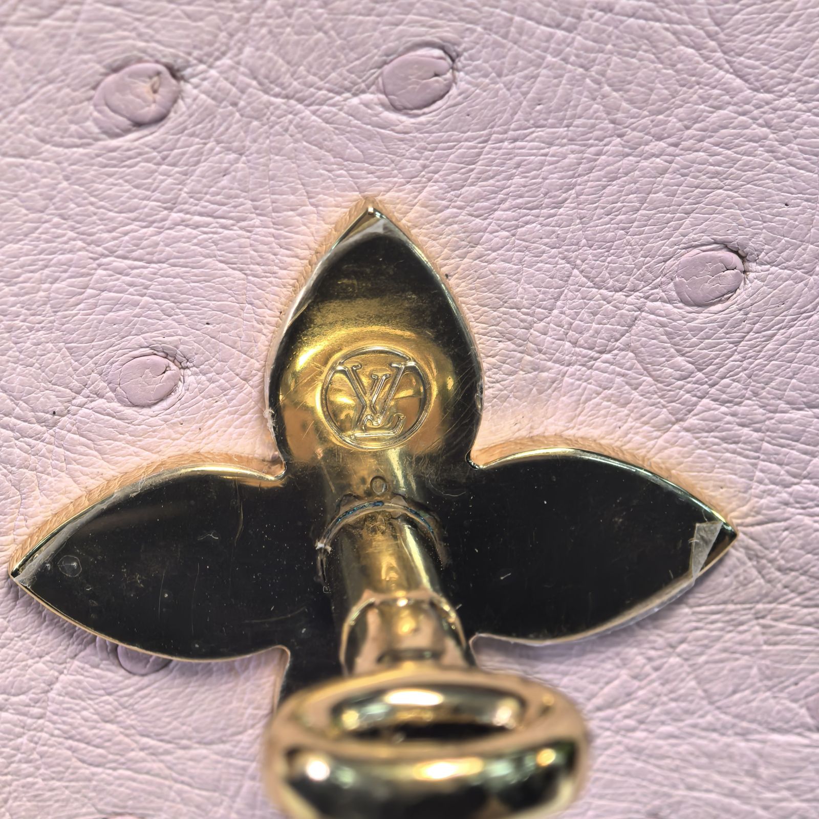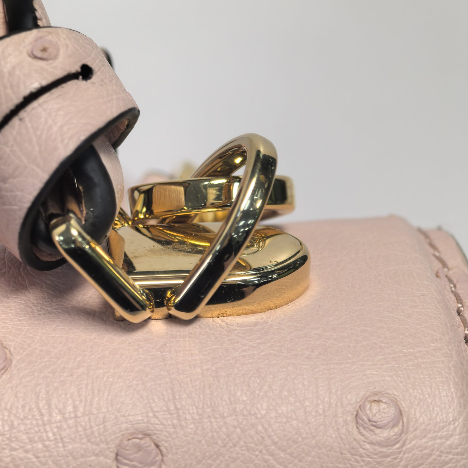 Embodying a luxurious and delicate luxury handbag, the LV Rose Des Vents Mini is crafted from pink ostrich leather with gold-tone lock and top handle.