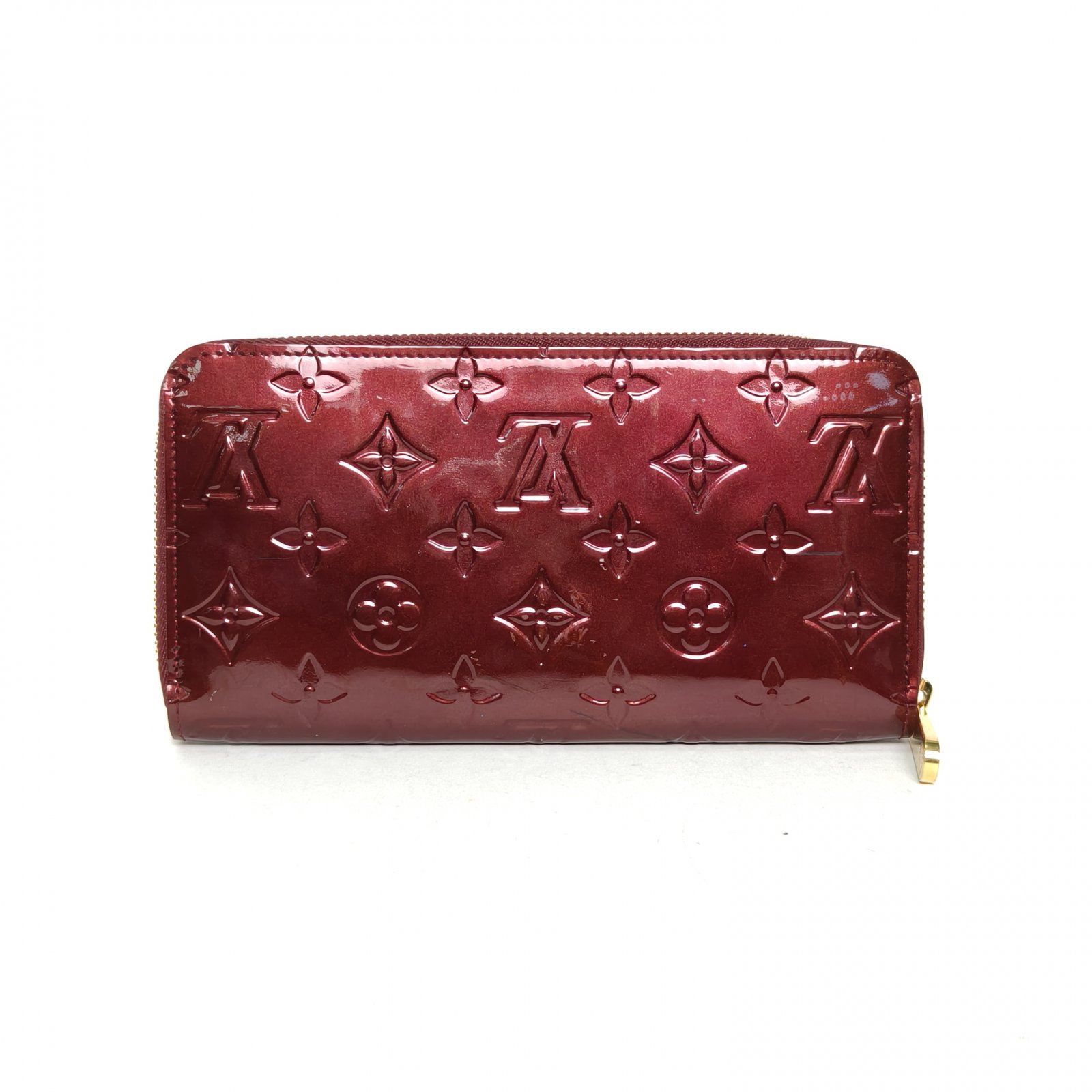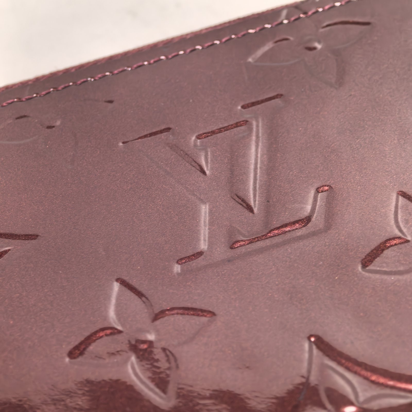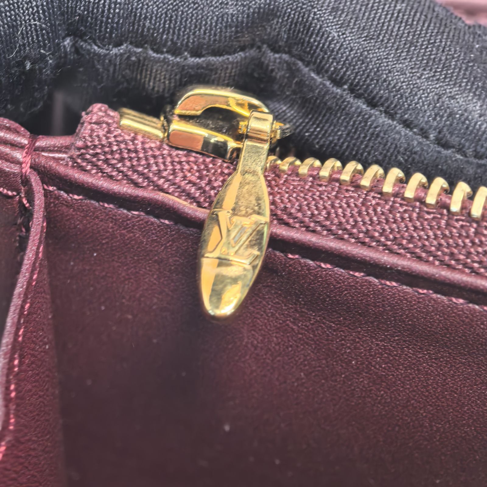 This vintage cosmetic pouch is crafted from red patent leather with iconic LV monogram, perfect for daily makeup storage.