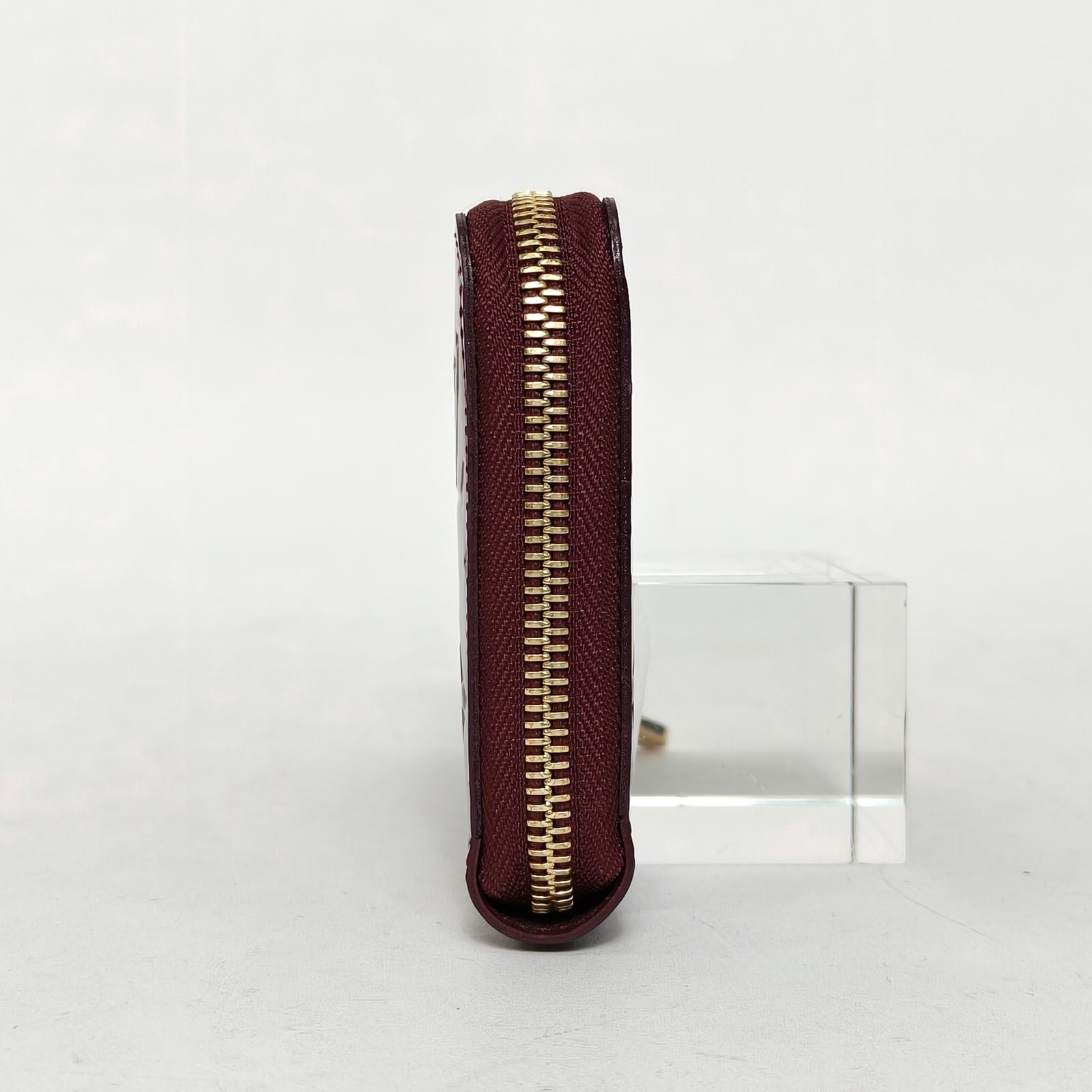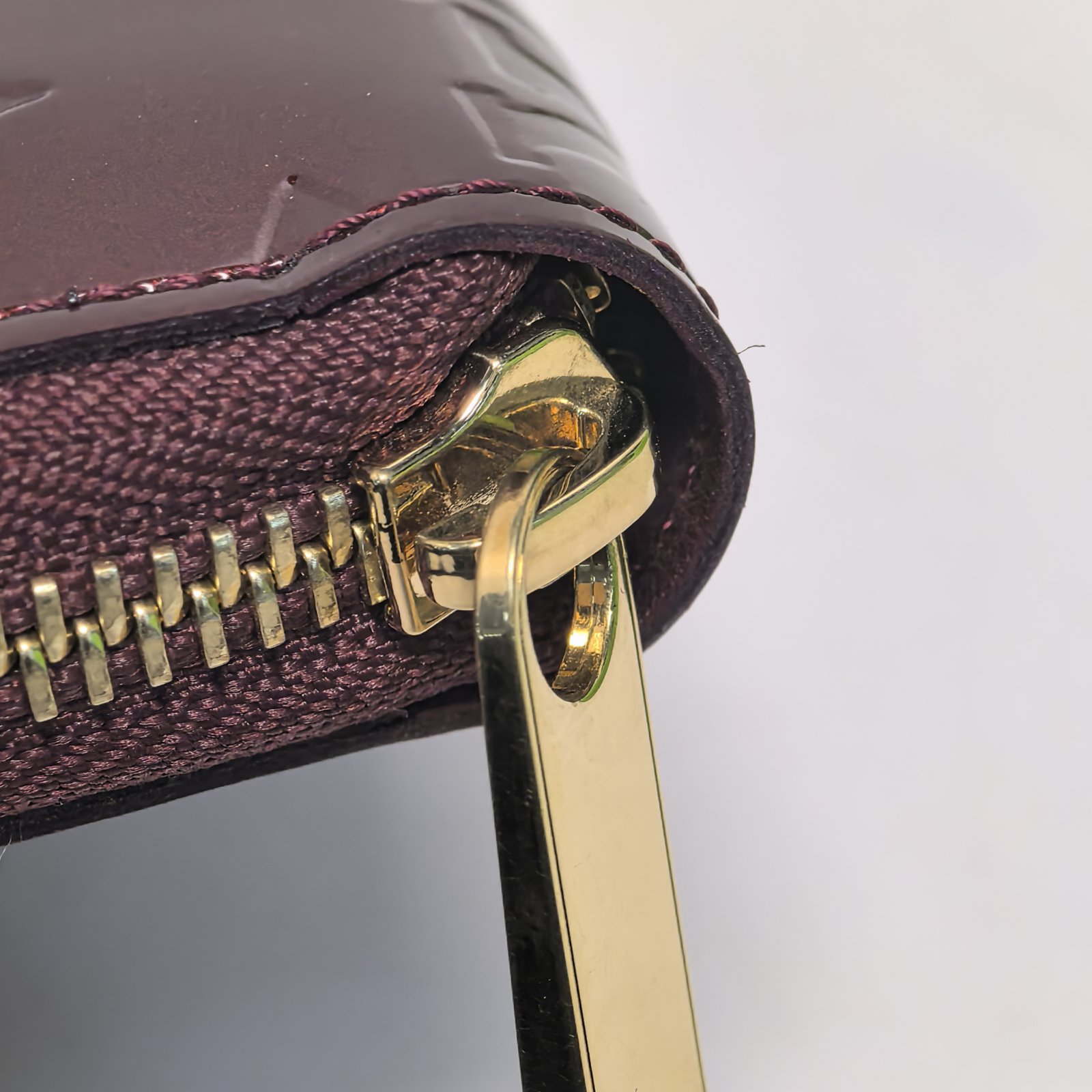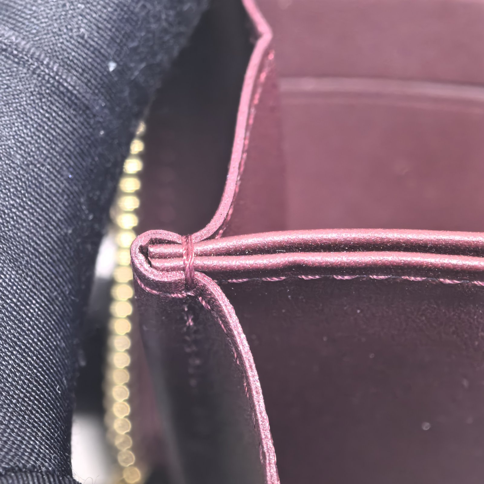 This vintage cosmetic pouch is crafted from red patent leather with iconic LV monogram, perfect for daily makeup storage.
