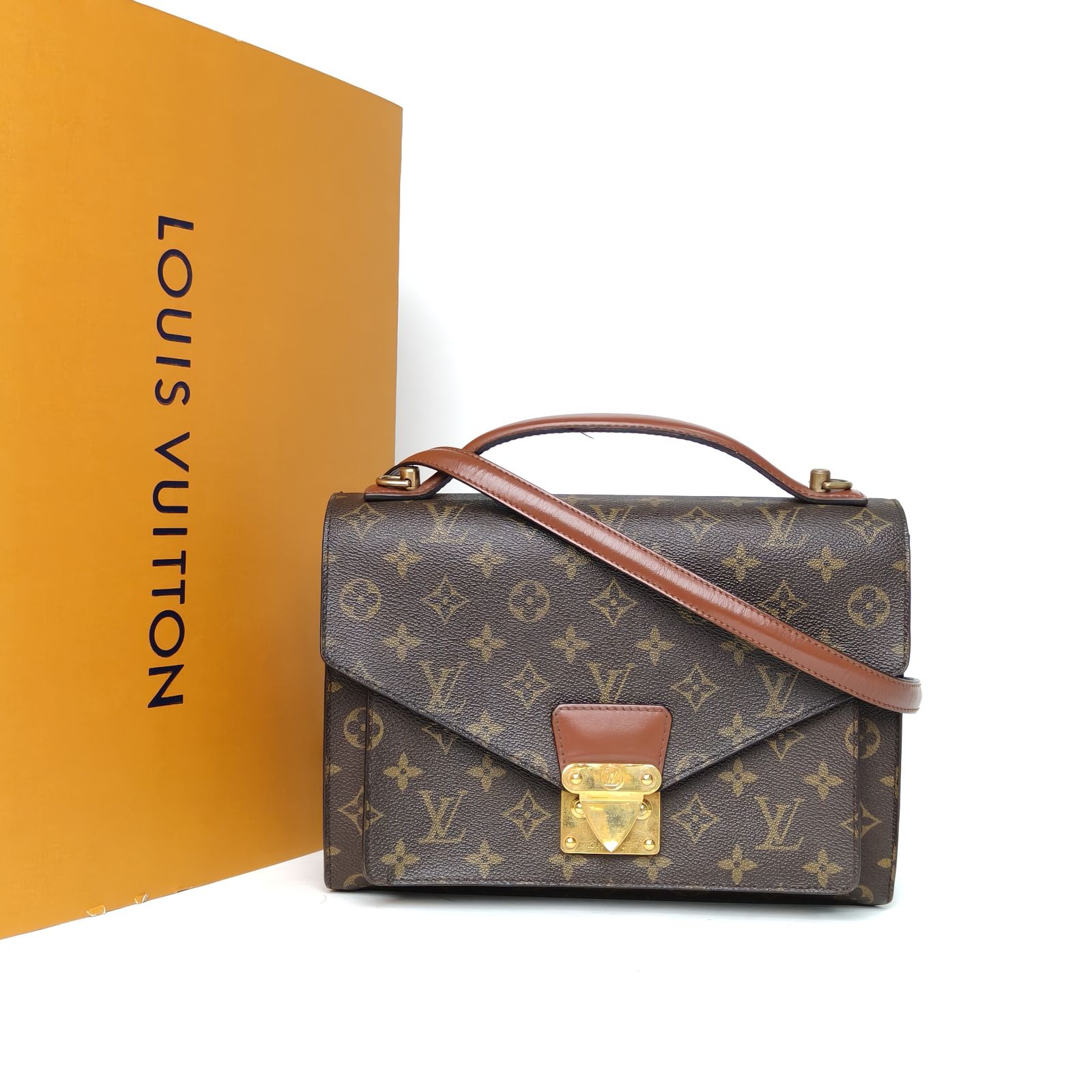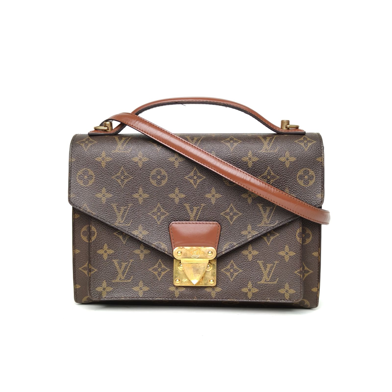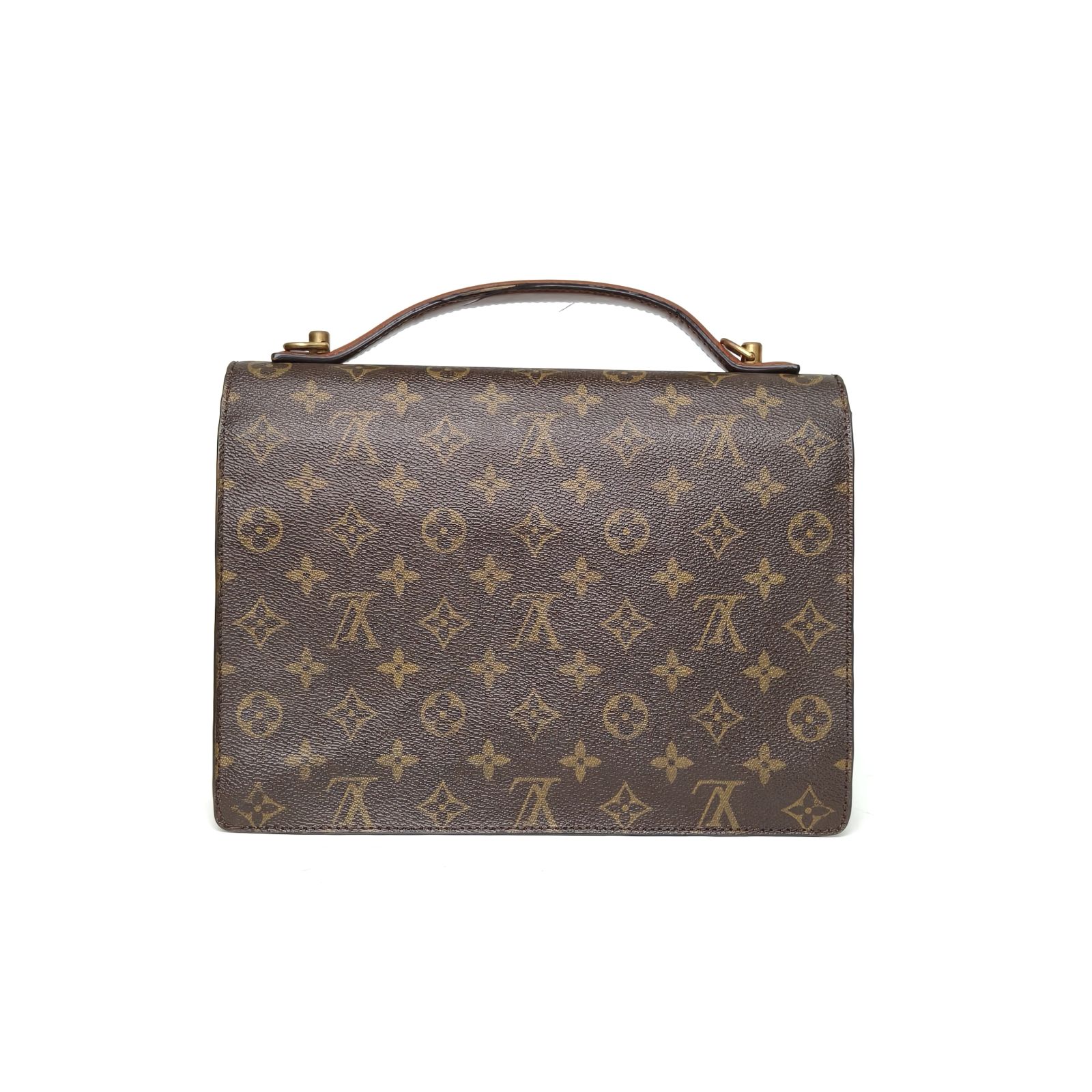 This vintage Louis Vuitton Monceau briefcase is crafted from monogram PVC with leather trim, featuring a structured silhouette and detachable shoulder strap.